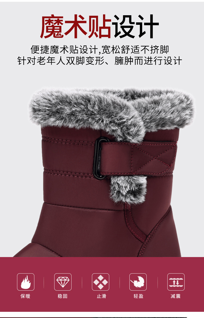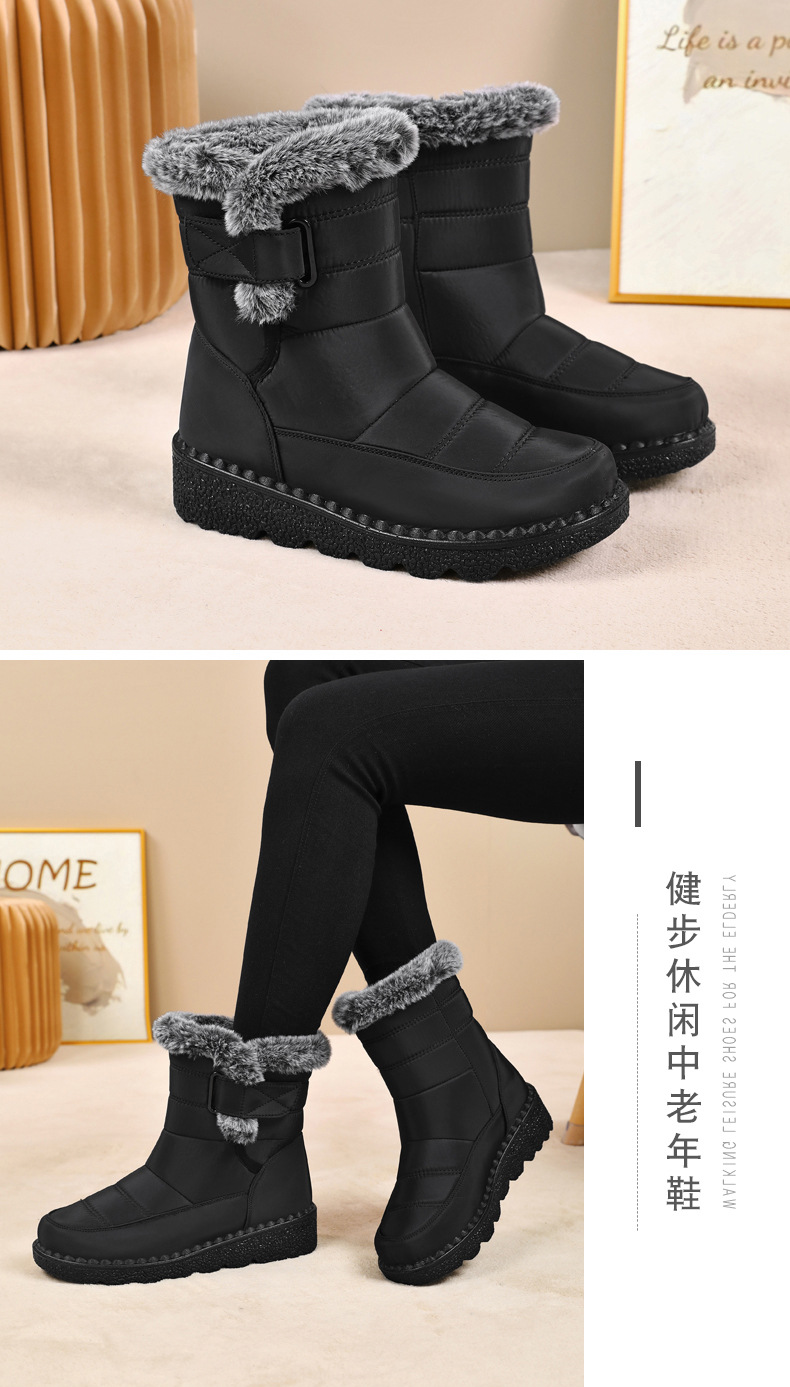 Botas de nieve de invierno para mujeres nuevas zapatos de algodón de alta resistencia al frío de gran tamaño de comercio exterior y terciopelo grueso calentamiento al por mayor zapatos de algodón de ancianos