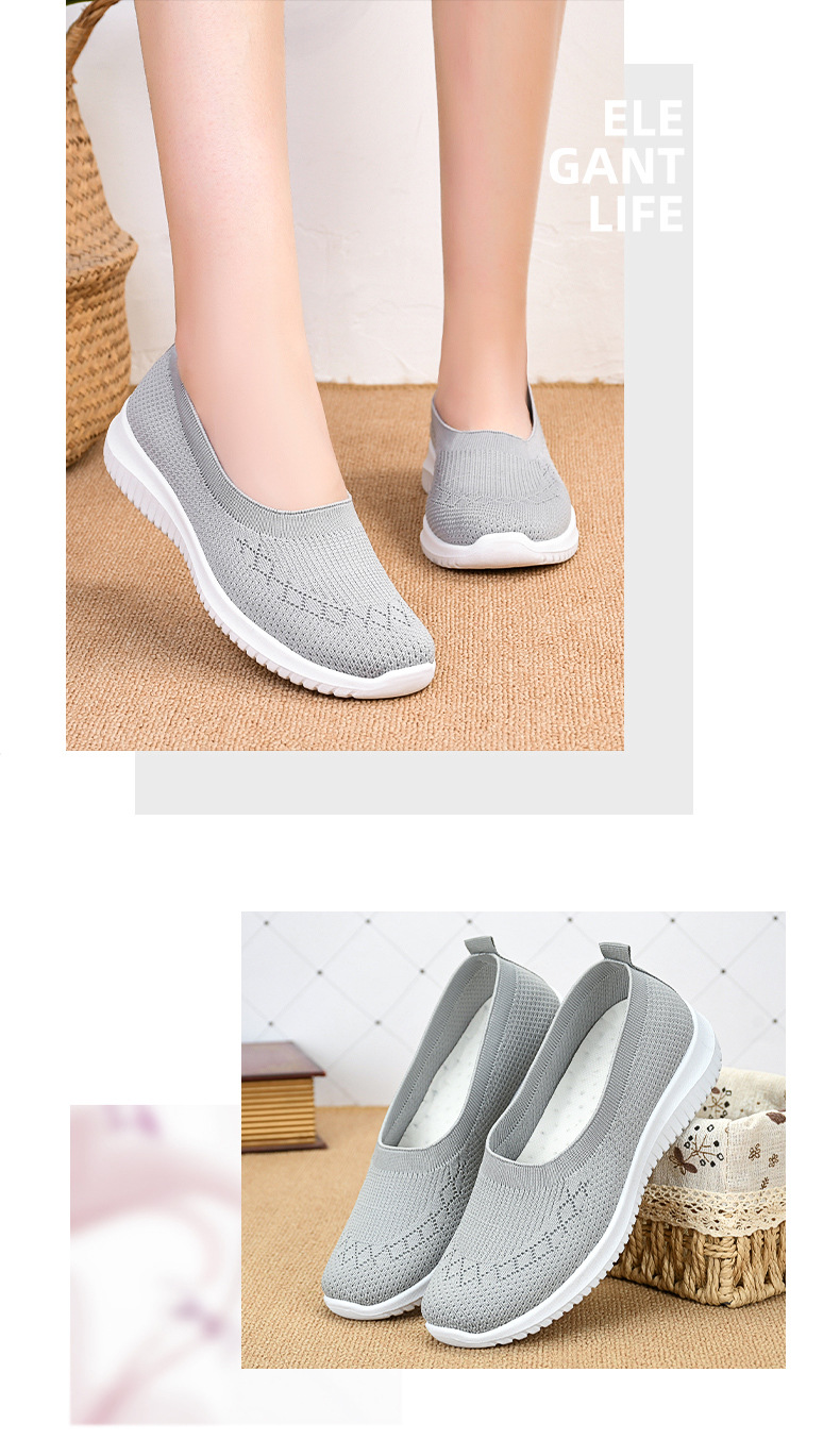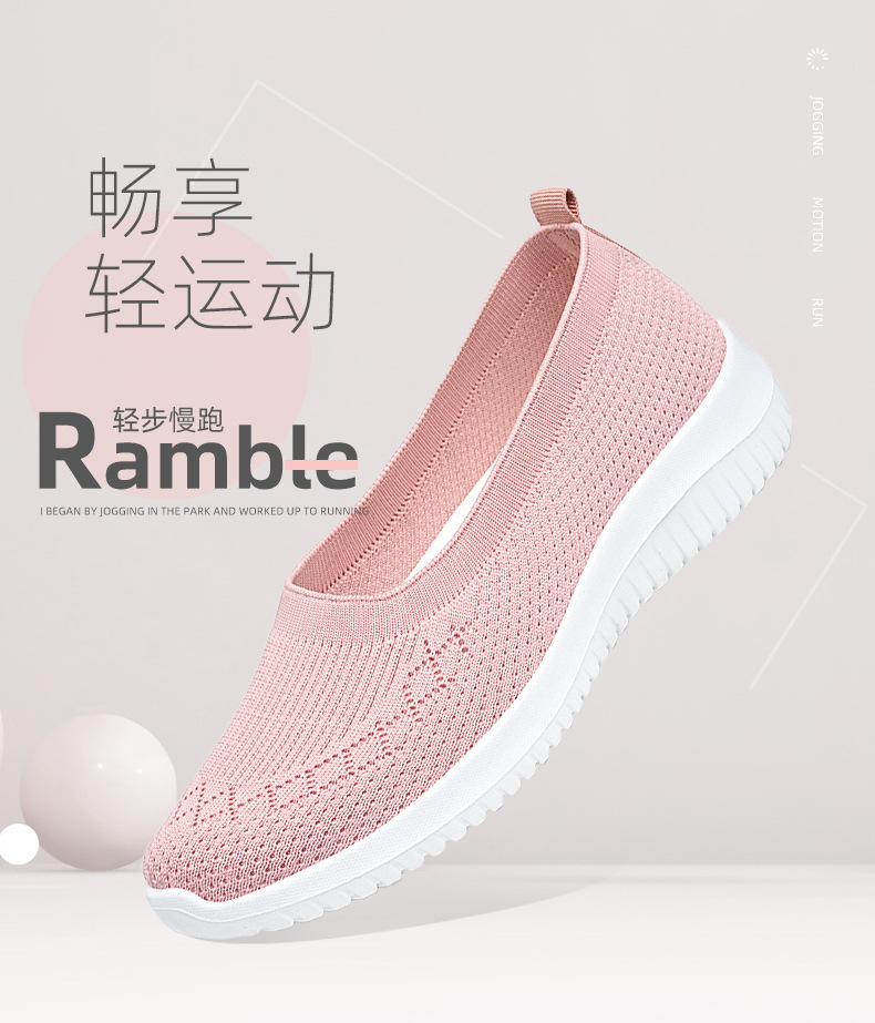 Zapatos de mujer 2023 nuevos zapatos de mujer de comercio exterior zapatos tejidos voladores transpirables Fondo suave transfronterizo más tamaño zapatos de tela zapatos de mamá Casuales