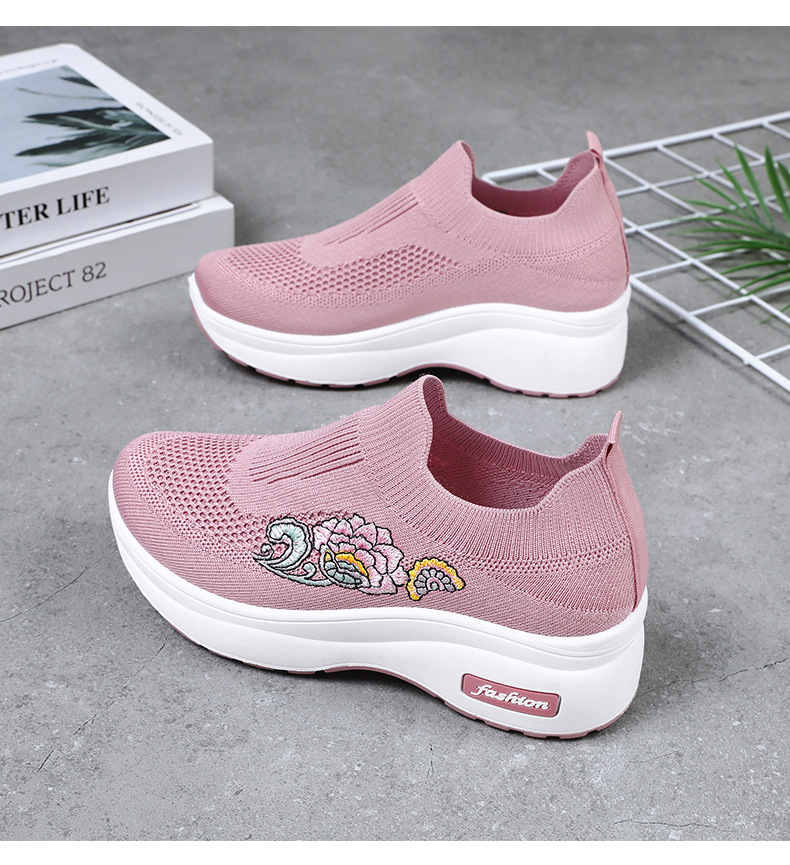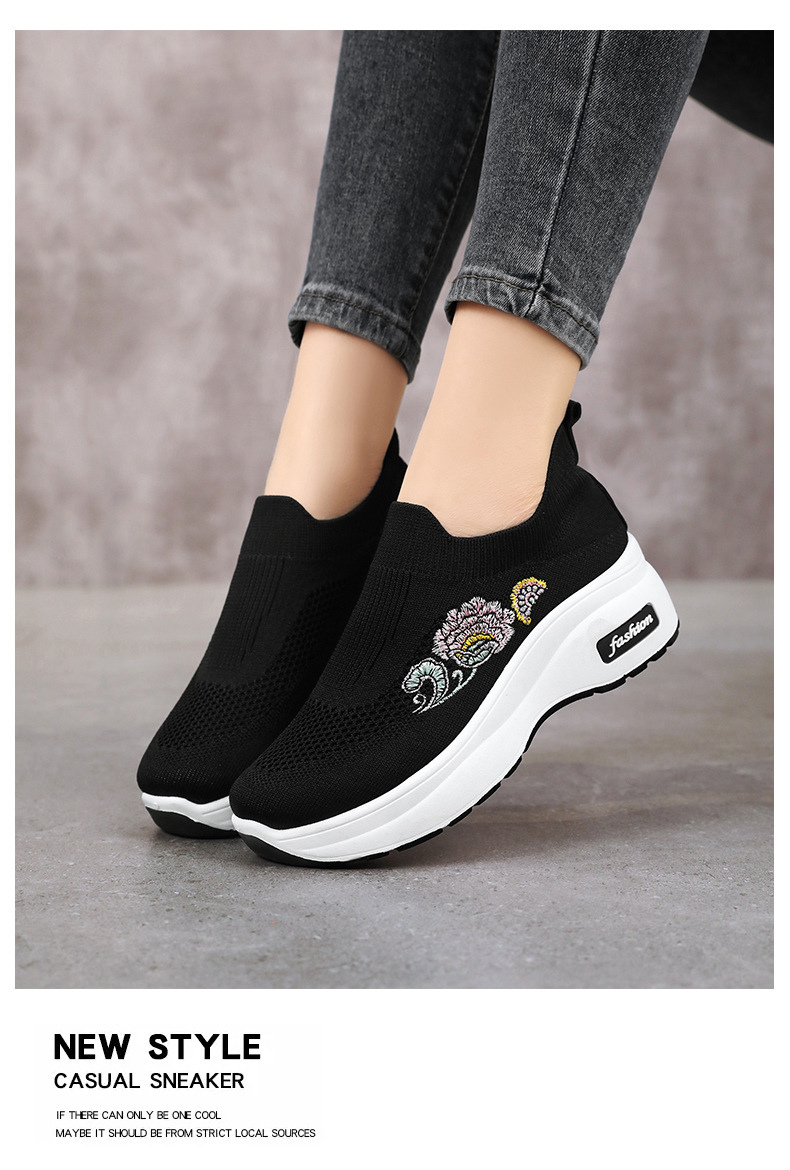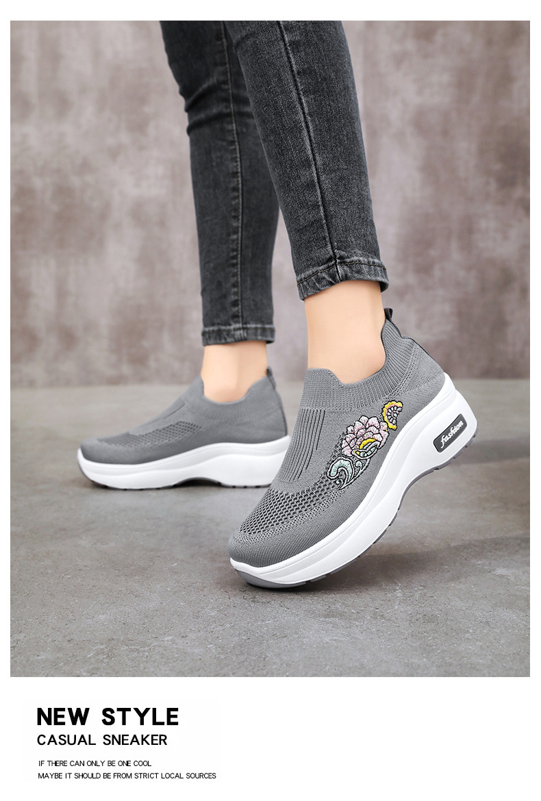 Zapatos de mujer primavera nuevos zapatos casuales ligeros con base de pastel zapatos de mujer de altura de zapatos de calcetines de comercio exterior zapatos de mujer