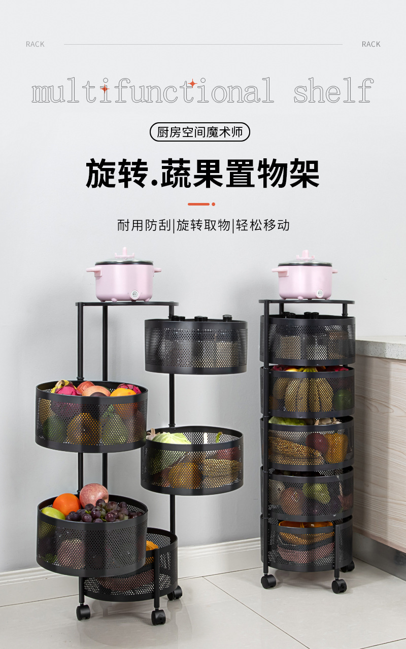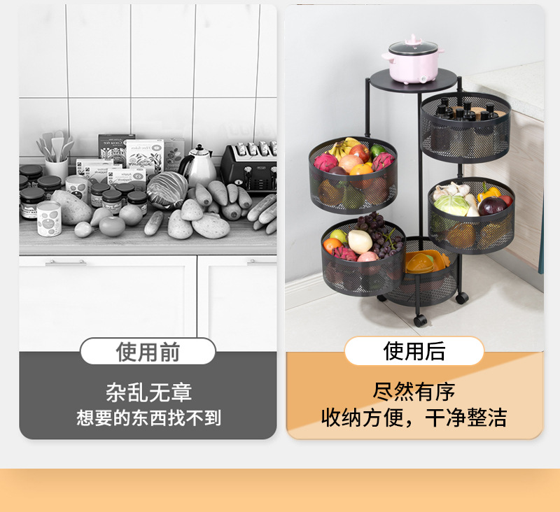 Estante de almacenamiento de marcos redondos rotativos Cesta de cocina - Estante de almacenamiento de marcos redondos rotativos antiguos diseño de ahorro de espacio