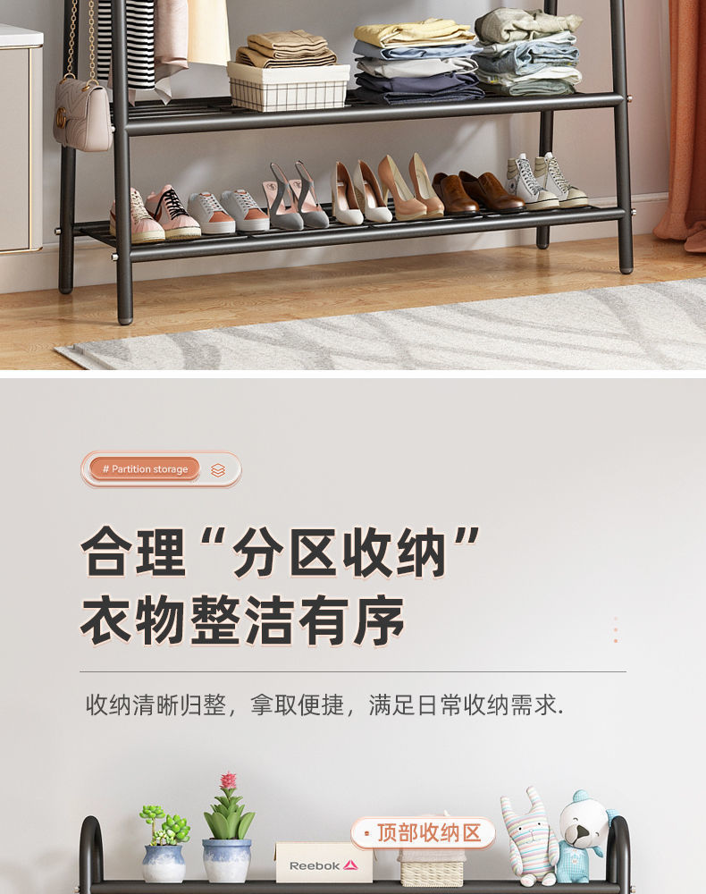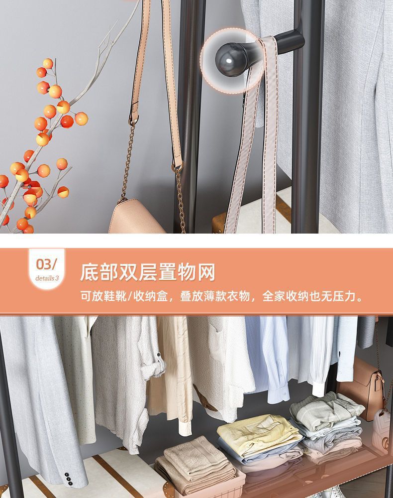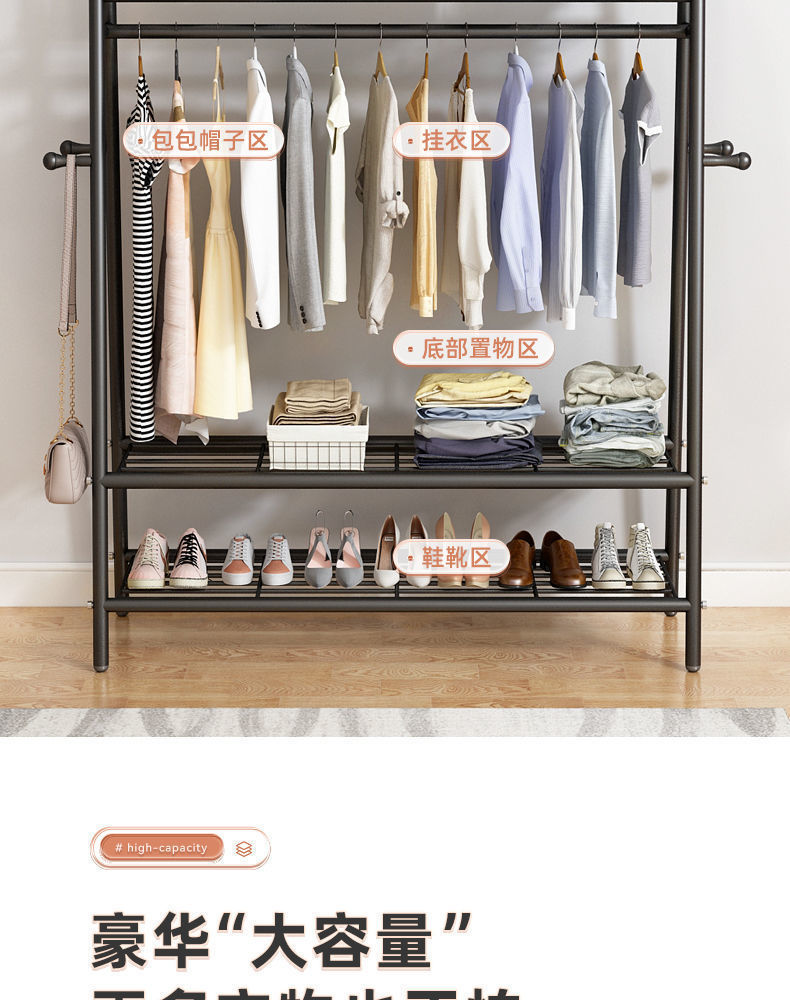 Perchero de dormitorio de piso a techo en negrita Perchero Perchero de dormitorio con barra de ropa simple para el hogar