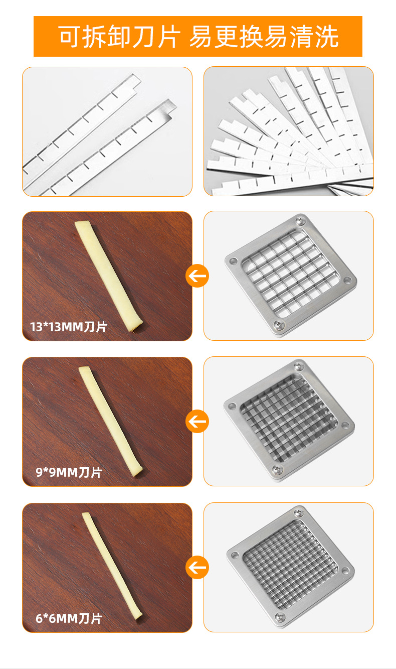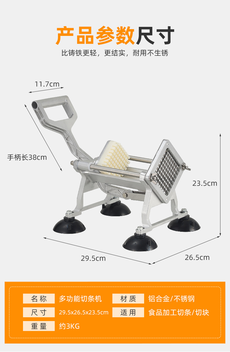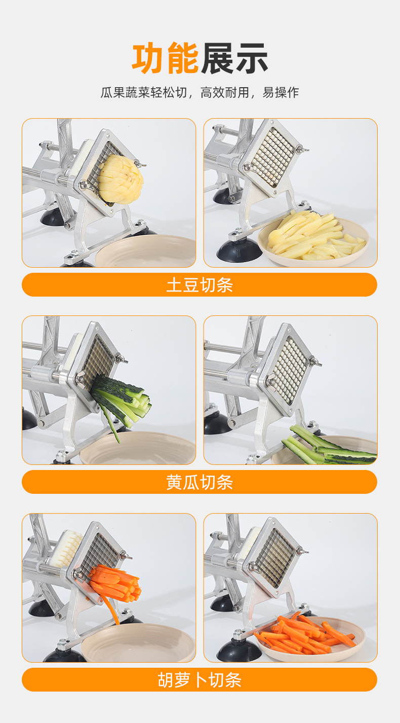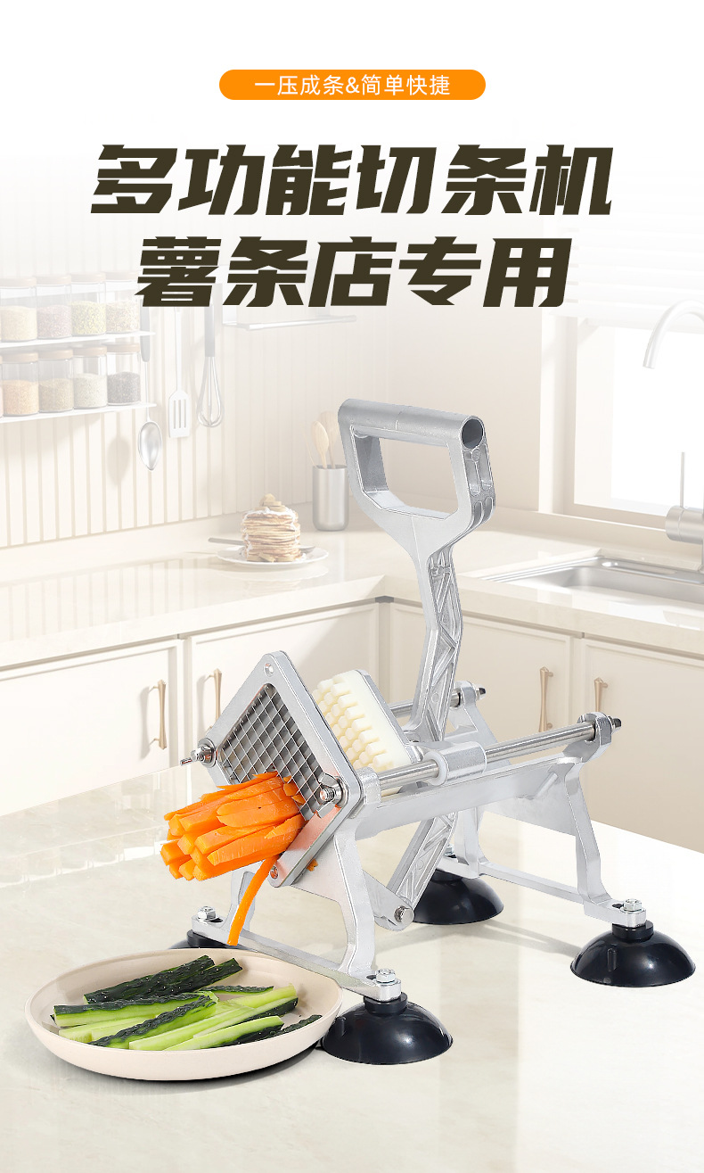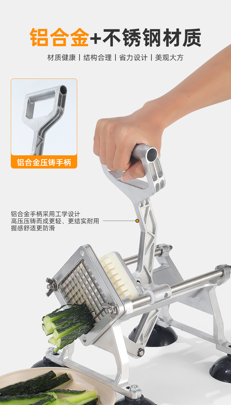 Fábrica de suministro directo de acero inoxidable cortador manual cortador de papas multifuncional comercial cortador de papas doméstica pequeña torre de papas fritas