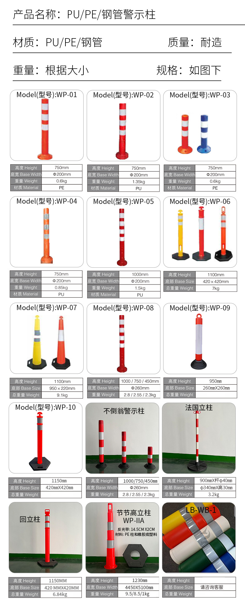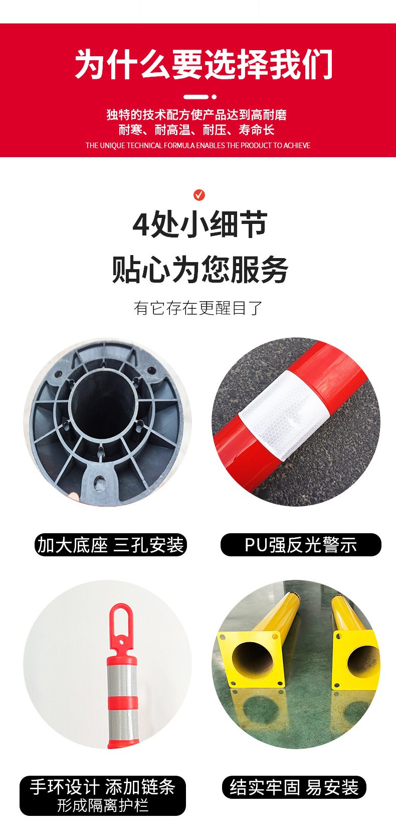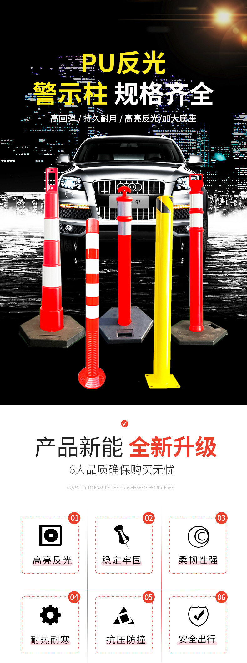 Varios tipos de pilares reflectantes de acero inoxidable, columnas de advertencia de barricadas, resistencia a la presión de la pu, columnas anticolisión de tráfico de alto rebote al por mayor