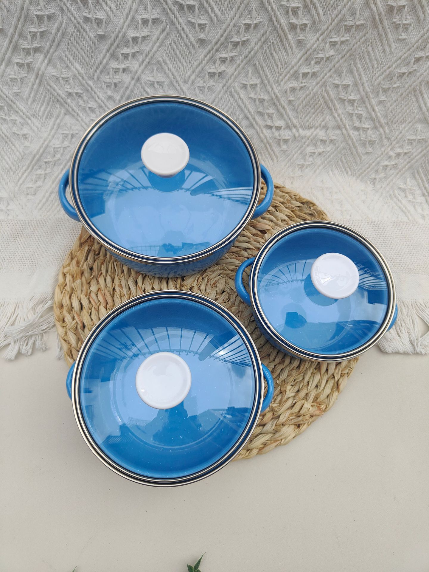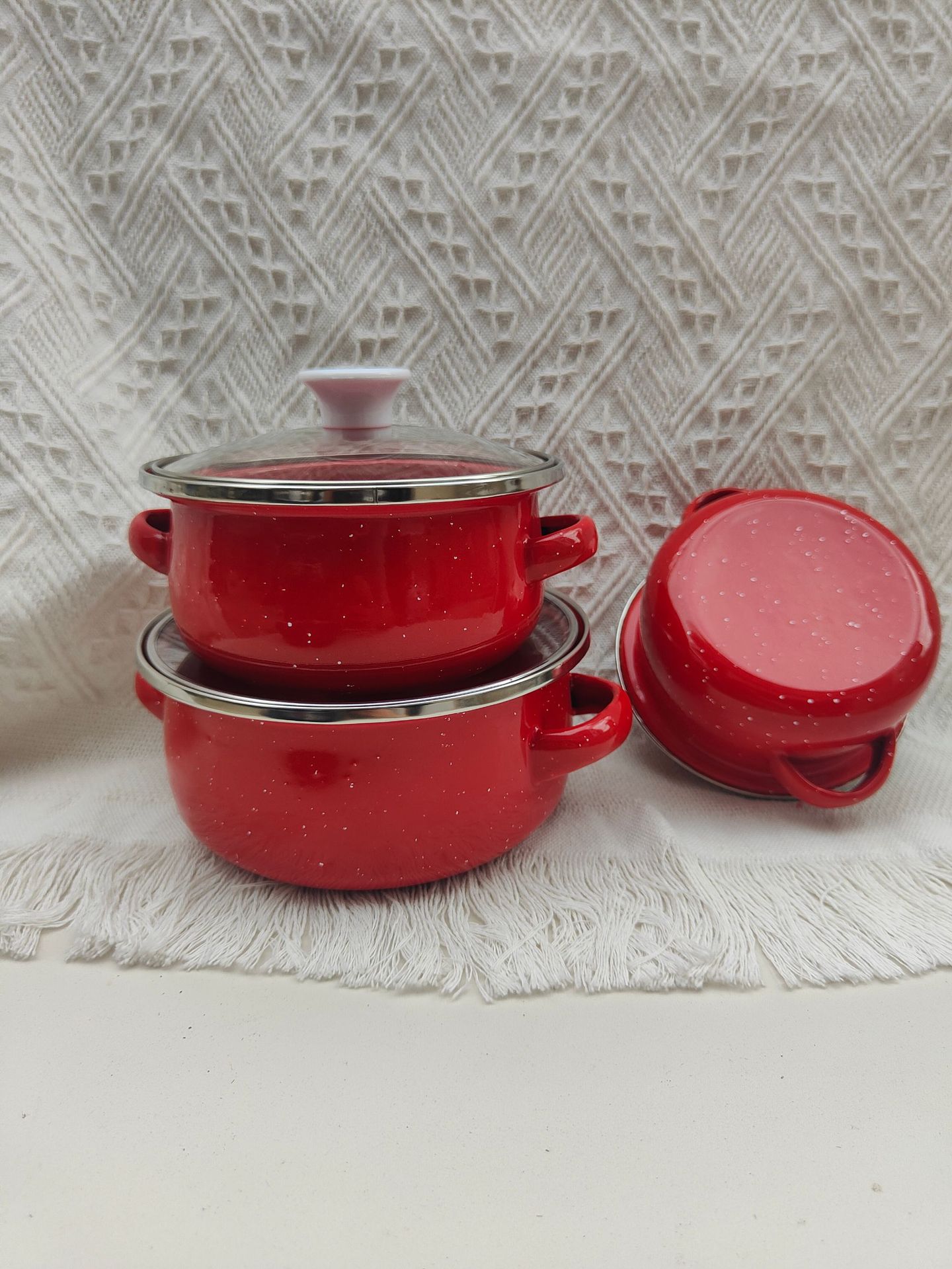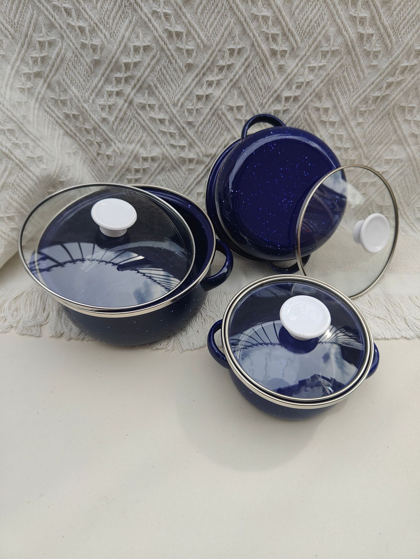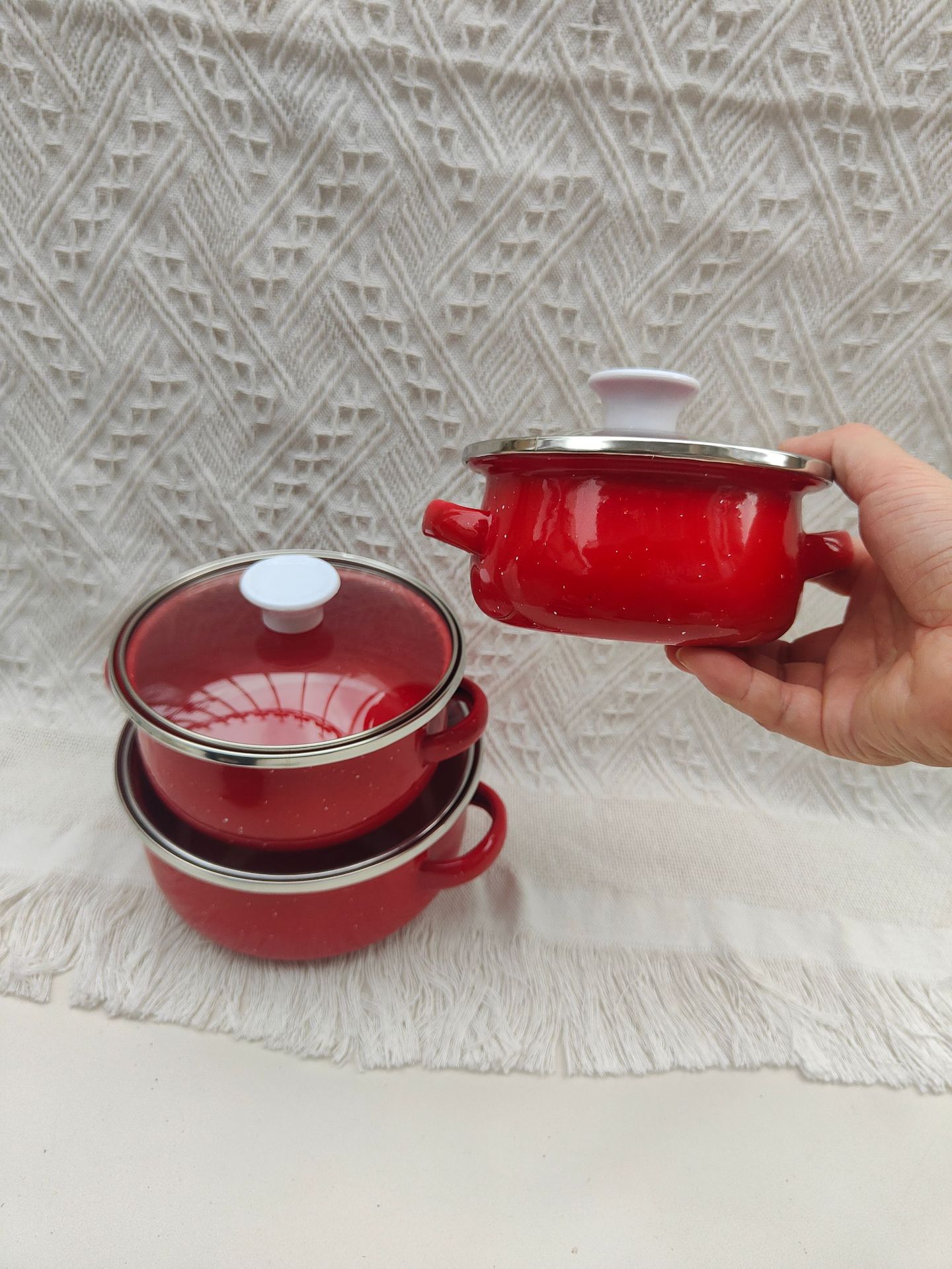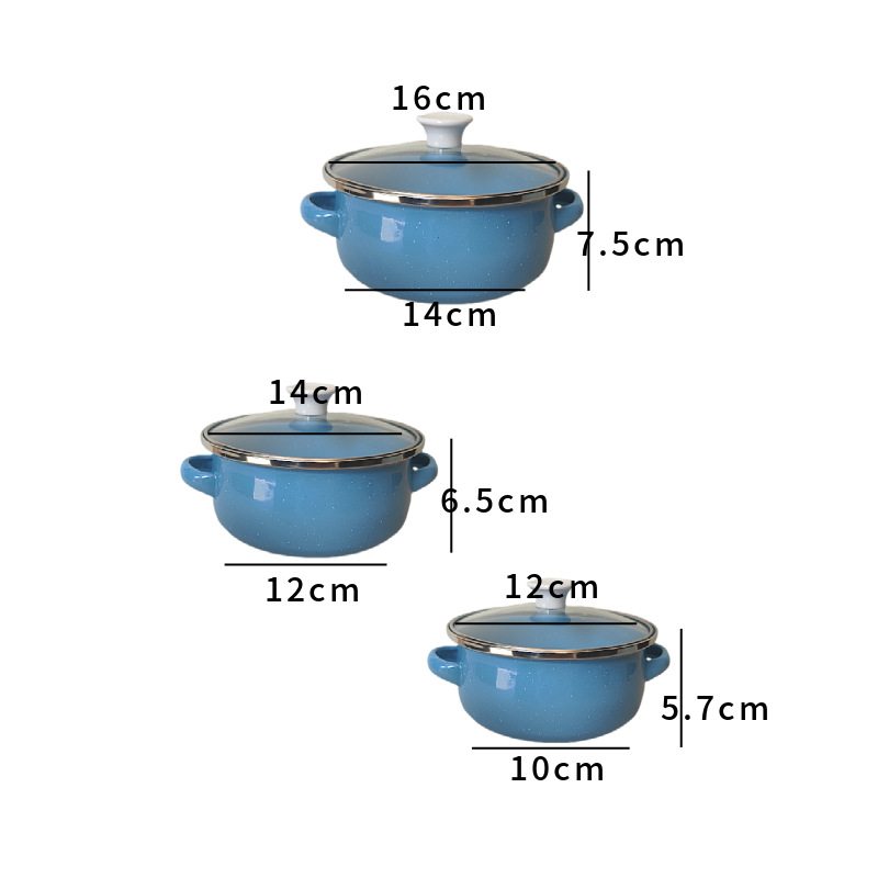 Juego de tres piezas de 12/14/16 cm esmalte pequeño olla de esmalte doméstico olla de cocina mini suplemento alimenticio para bebés con aceite
