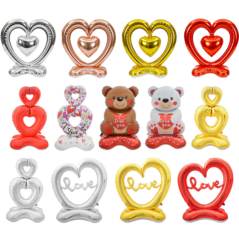 Día de San Valentín globo base 4D de pie amor globo oso Tema de dibujos animados diseño Gran Pollo corazón columna globo