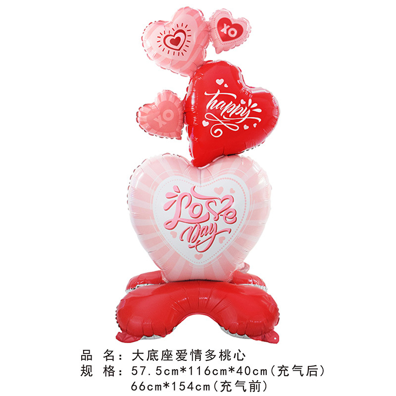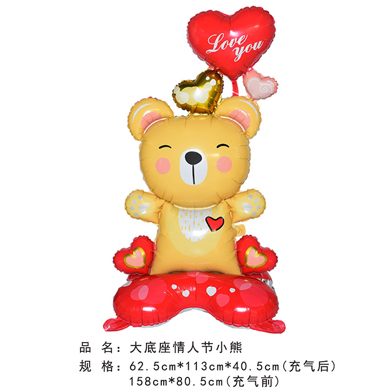 Globo 4D para San Valentín con base, diseño de corazón y oso animado, grande, para decoración temática en forma de columna