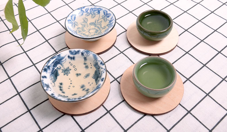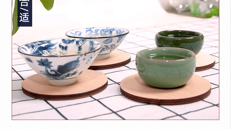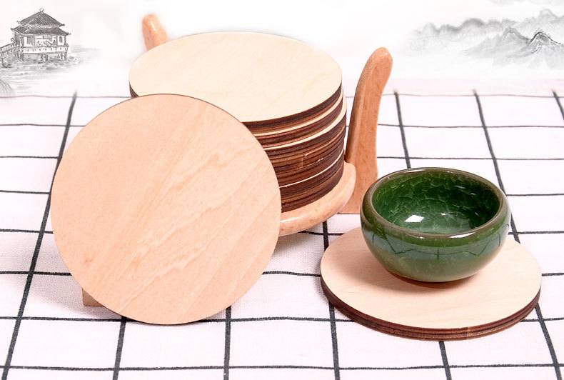 9*9*0,6 cm té montaña rusa de madera se puede agregar con el logotipo en pequeños lotes de aislamiento térmico anti-escaldado estera tazón mantel individual