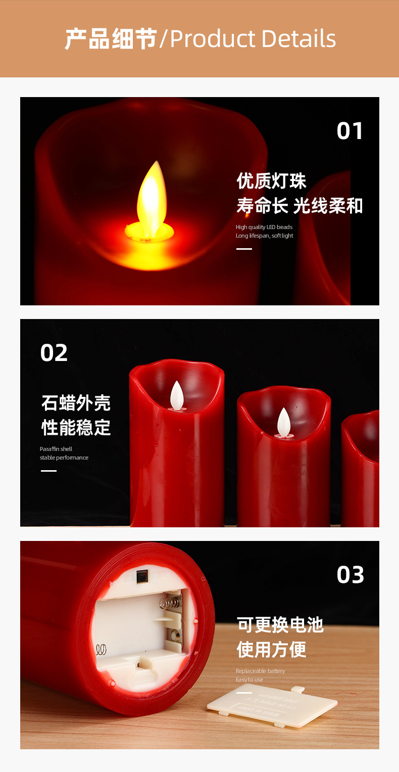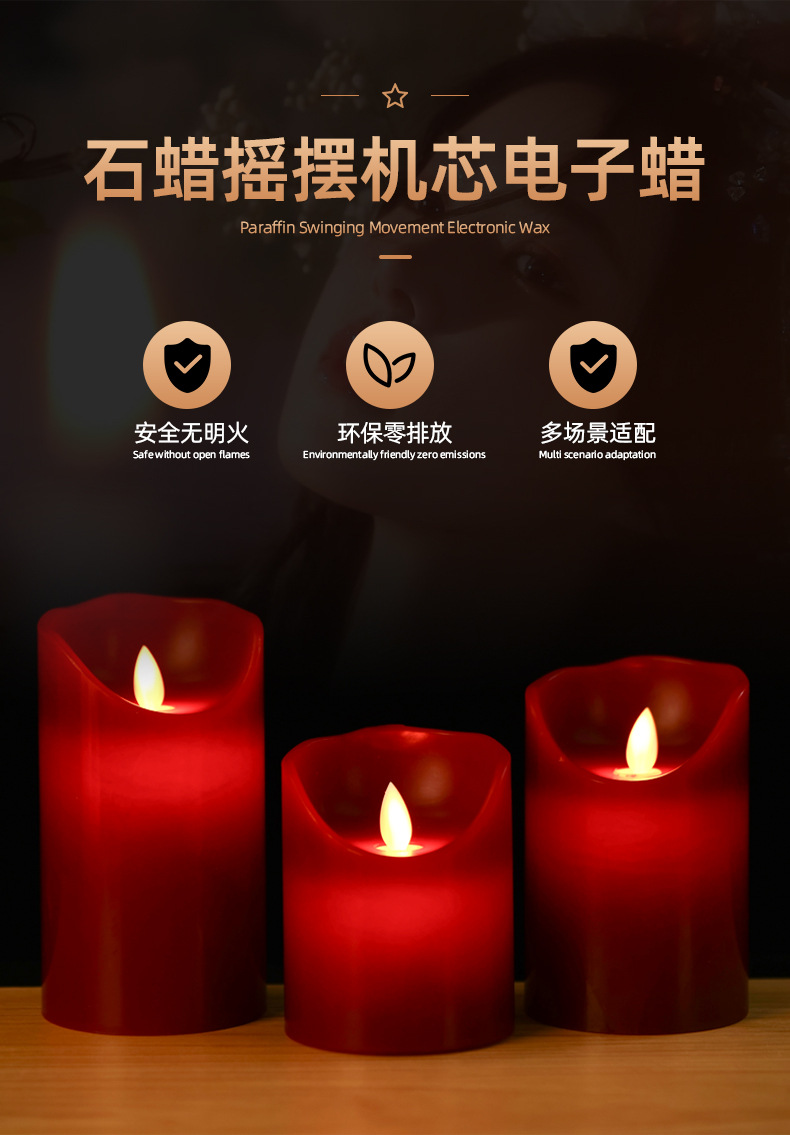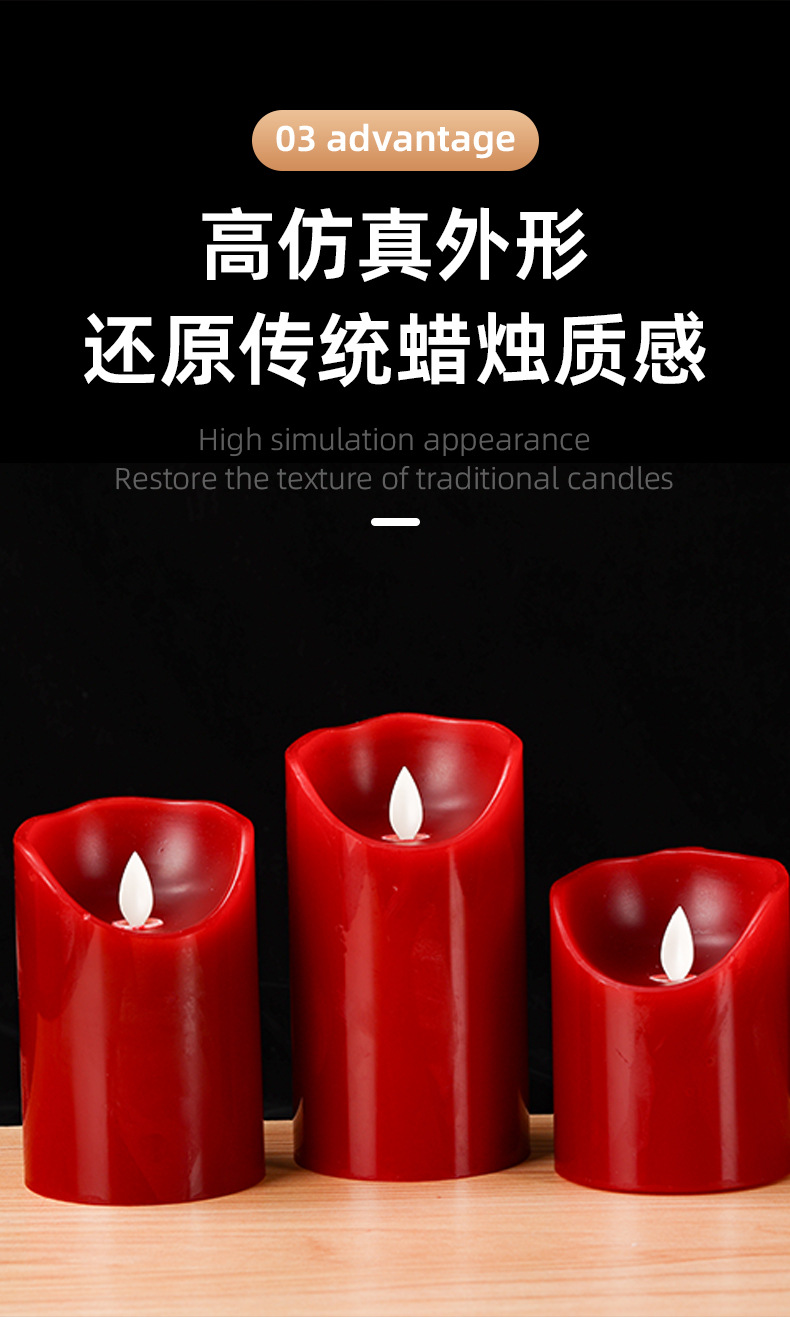Vela electrónica LED burdeos con mecha oscilante de parafina para decoración de bodas y cumpleaños