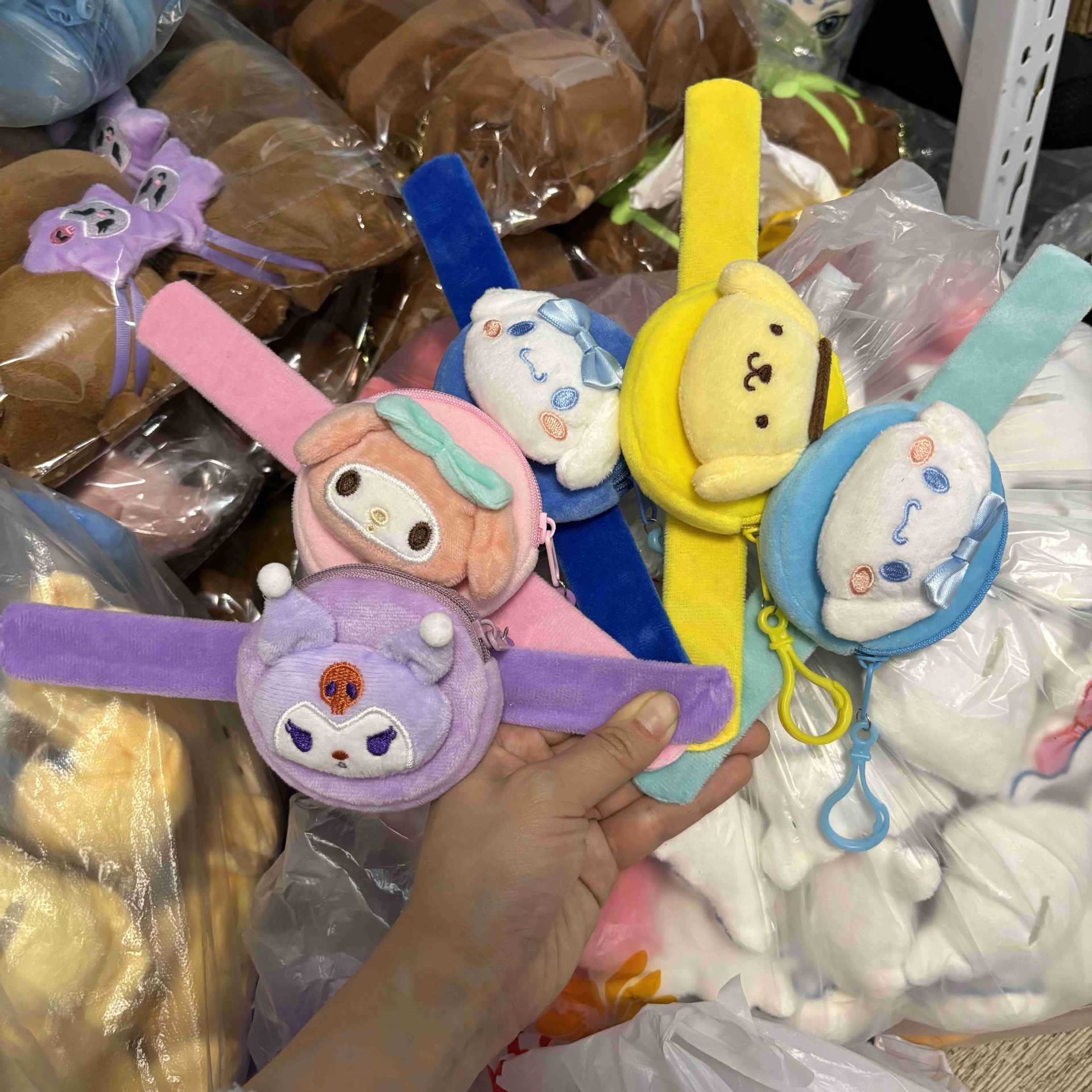 Monedero circular de felpa estilo Sanrio con pulsera creativa mini bolso colgante para auriculares venta transfronteriza