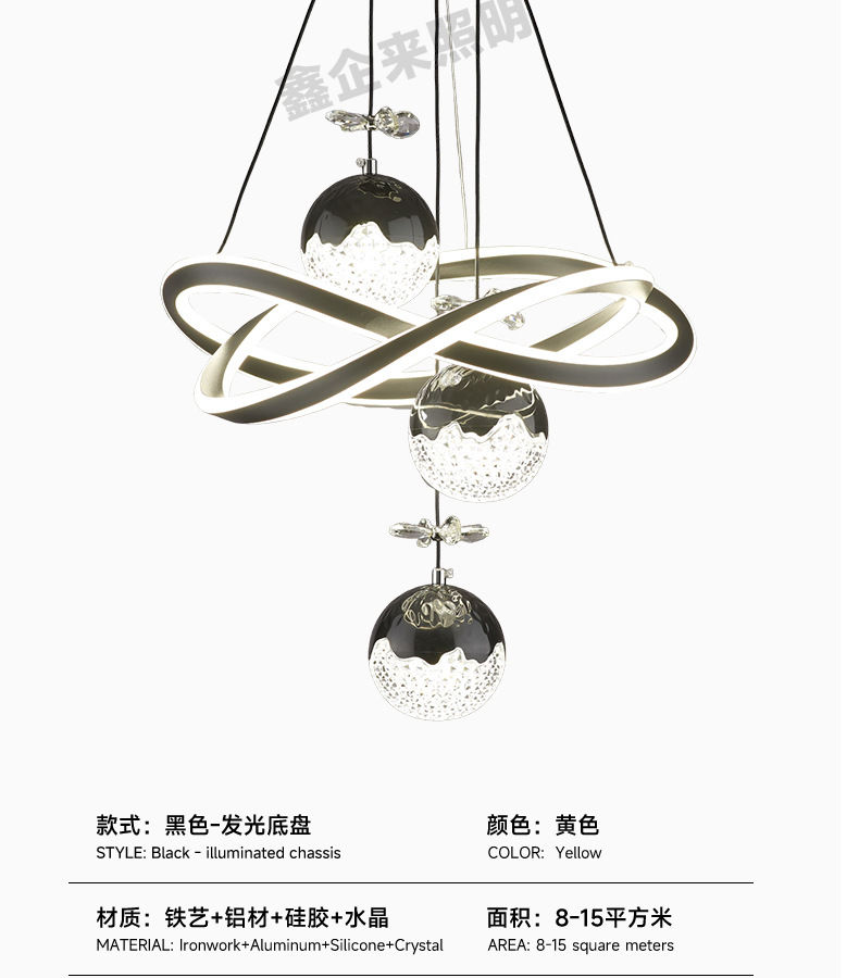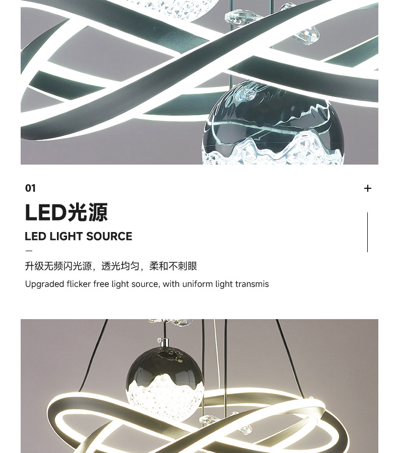 Nueva lámpara de cristal de lujo ligero lámpara led negra lámpara de comedor para el hogar de interior lámpara de dormitorio lámpara de estudio fábrica
