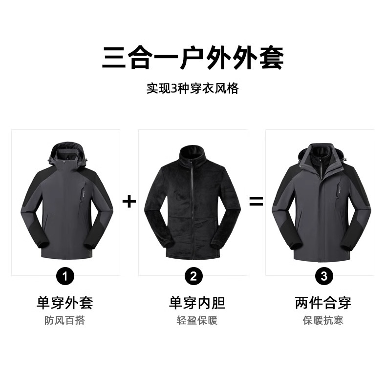 Primavera y otoño al aire libre hombre y mujer tres en uno desmontable otoño y invierno engrosado impermeable al aire libre montaña gorra de abrigo caliente