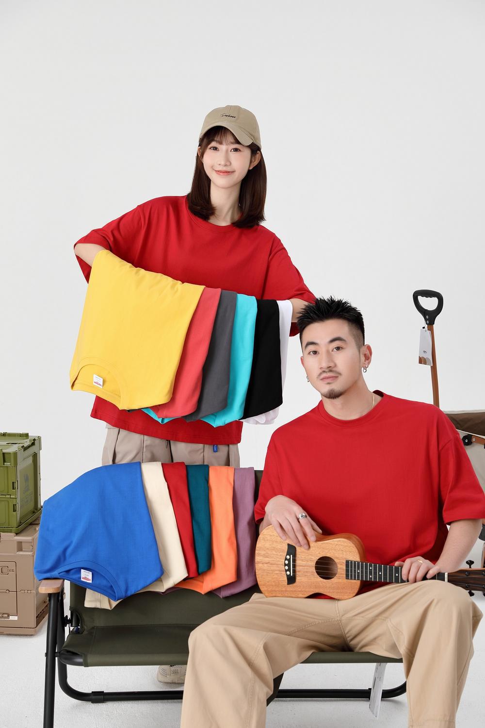 Macaron color arco iris color dopamina caramelo transpirable cuello redondo mangas cortas 260 gramos pesado camiseta de algodón casual personalizada