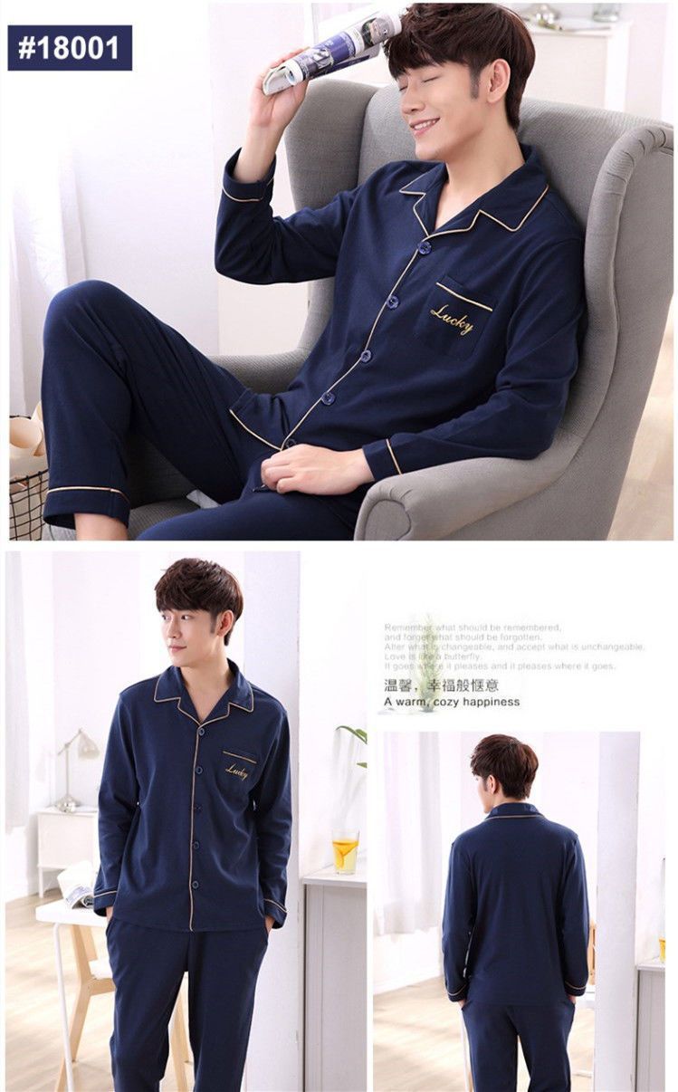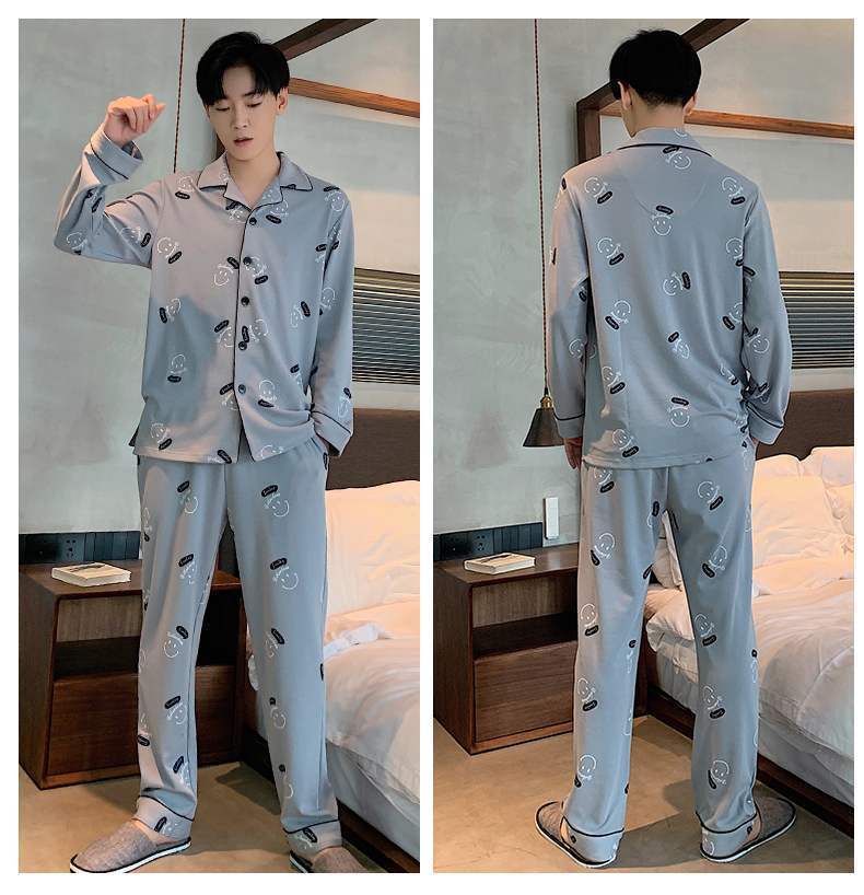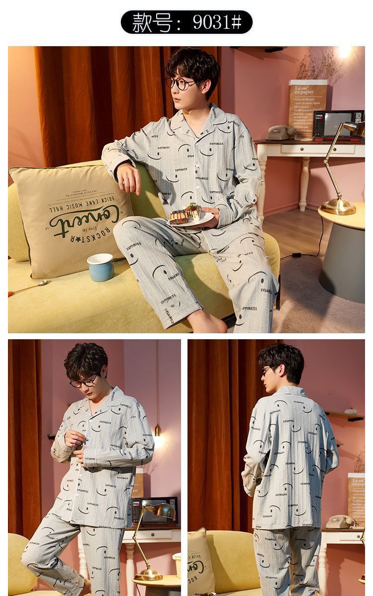 Algodón pesado para aumentar pijamas de manga larga para hombres cómodos jóvenes de mediana edad primavera otoño invierno ropa para el hogar