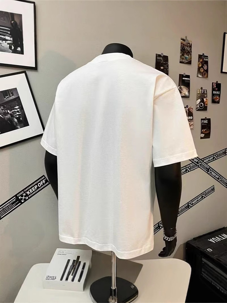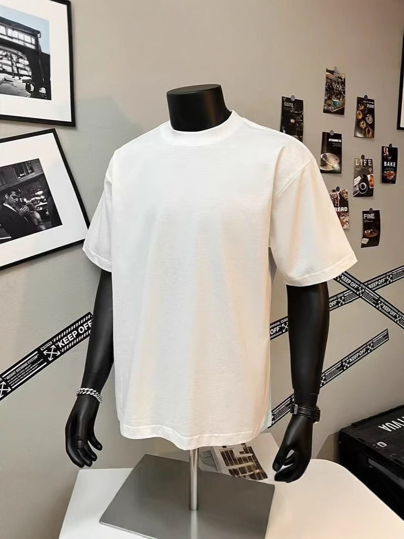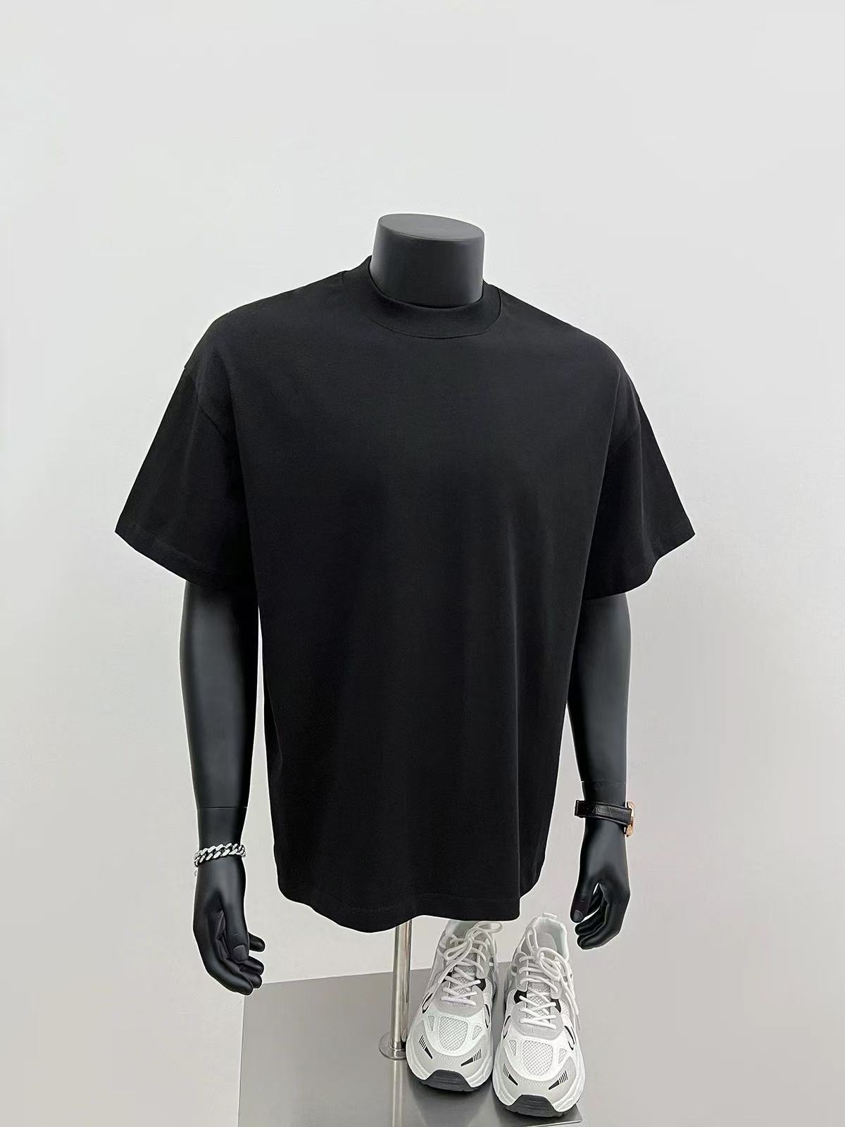 2025 pesado pequeño cuello europeo y americano hombro caído camiseta de manga corta hombre de color sólido casual pareja casual in-sleeve top