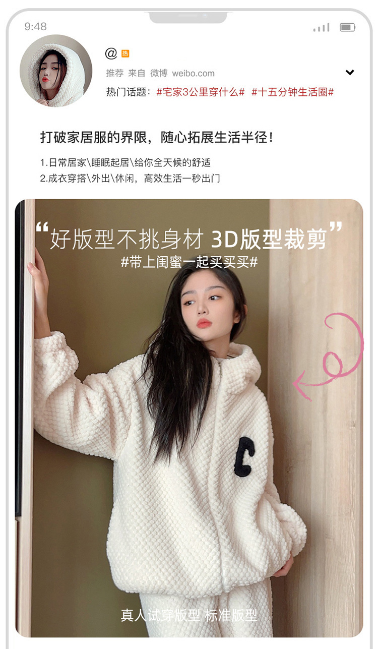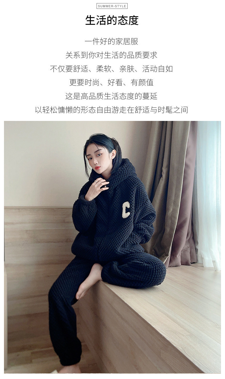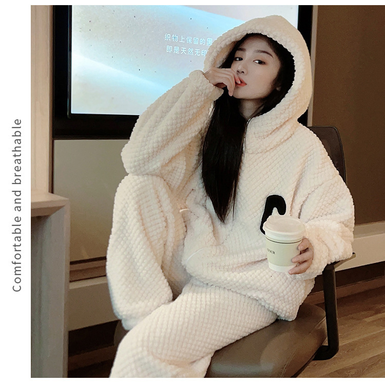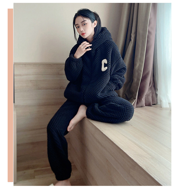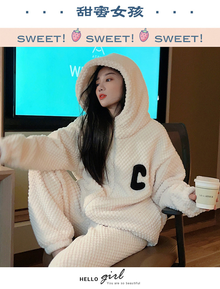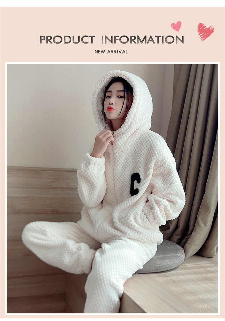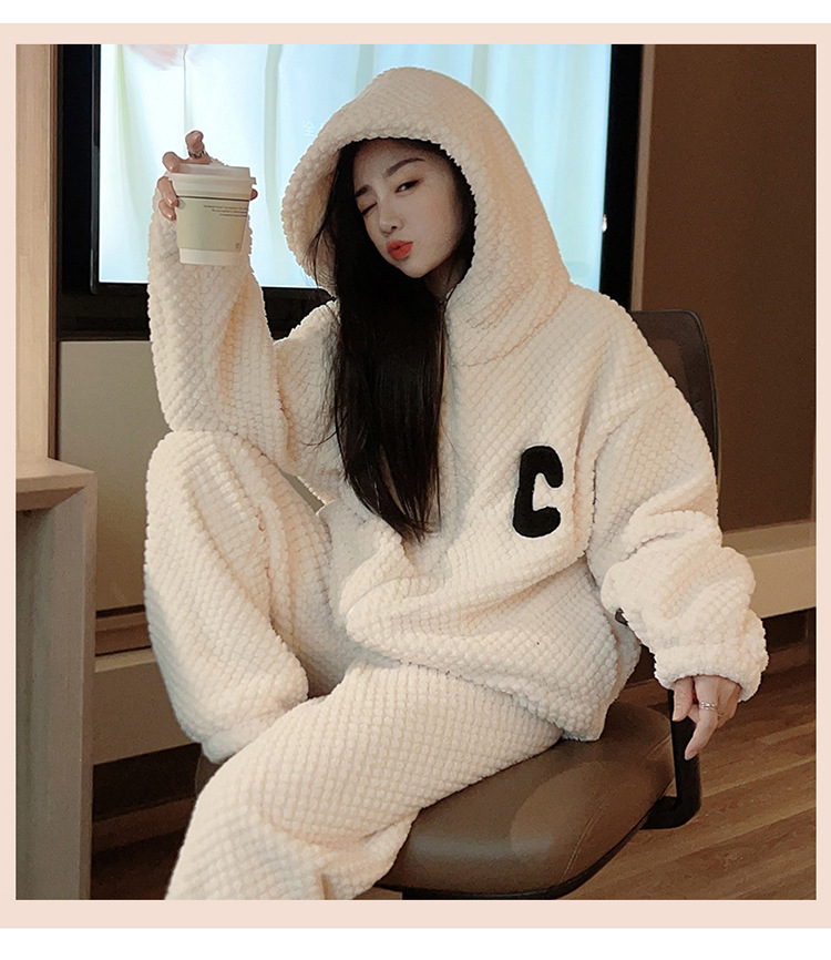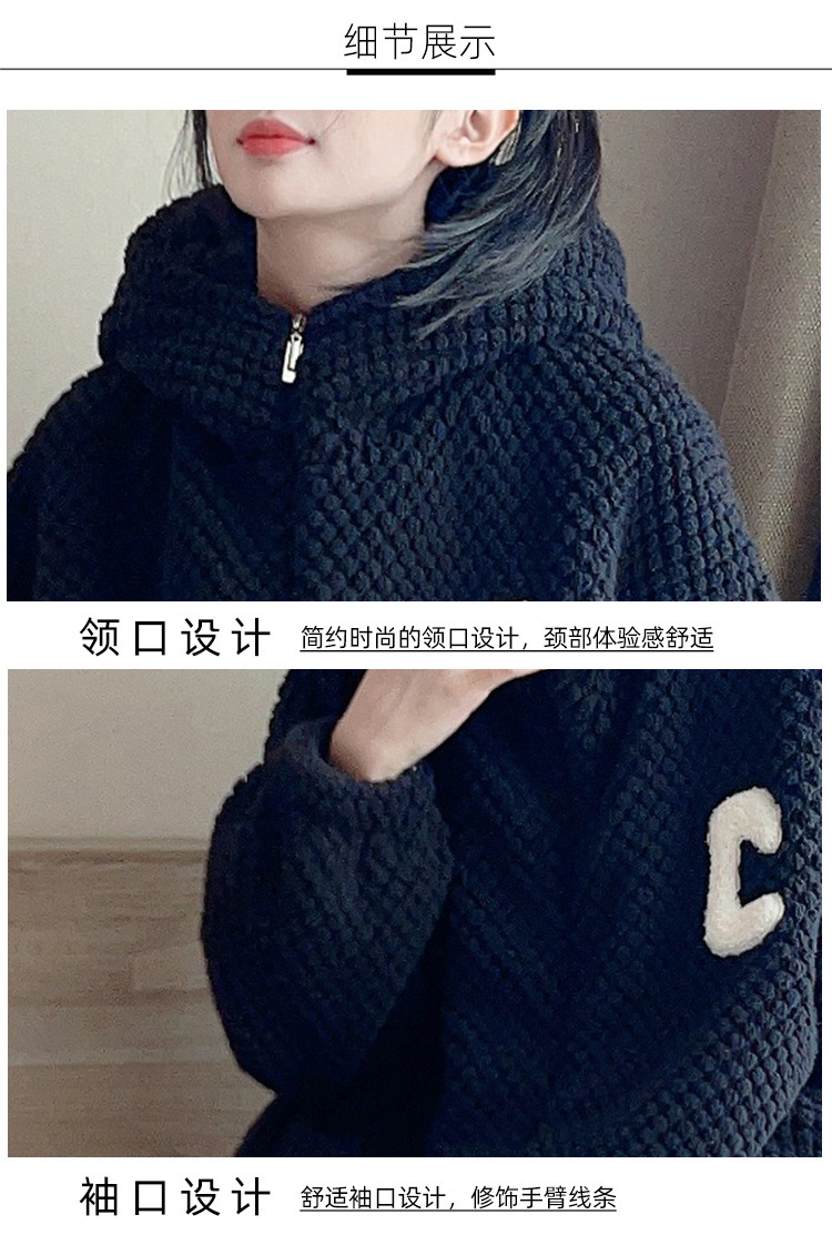 Pijamas de caída en línea para mujeres de otoño y invierno deportivos con capuzas de vello y cremallera de ocio gruesa para estudiantes se pueden usar con ropa de hogar