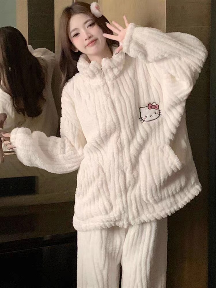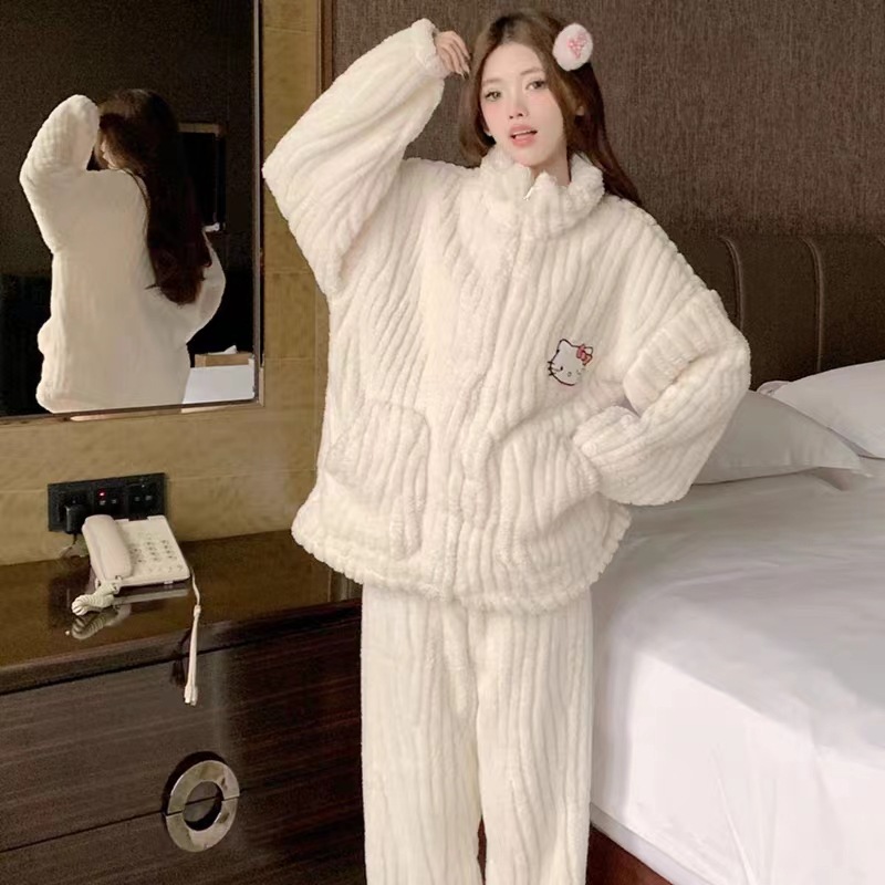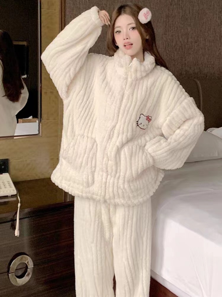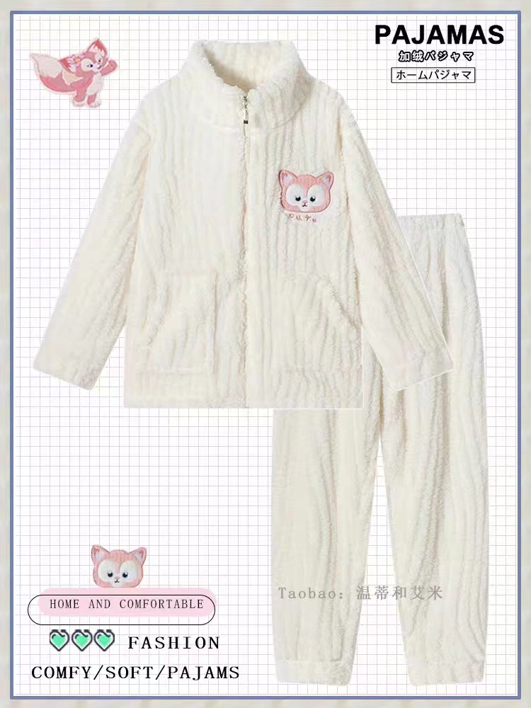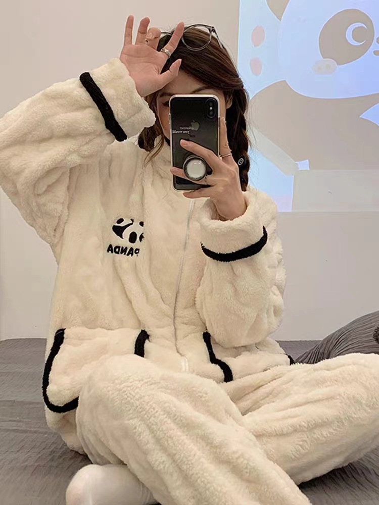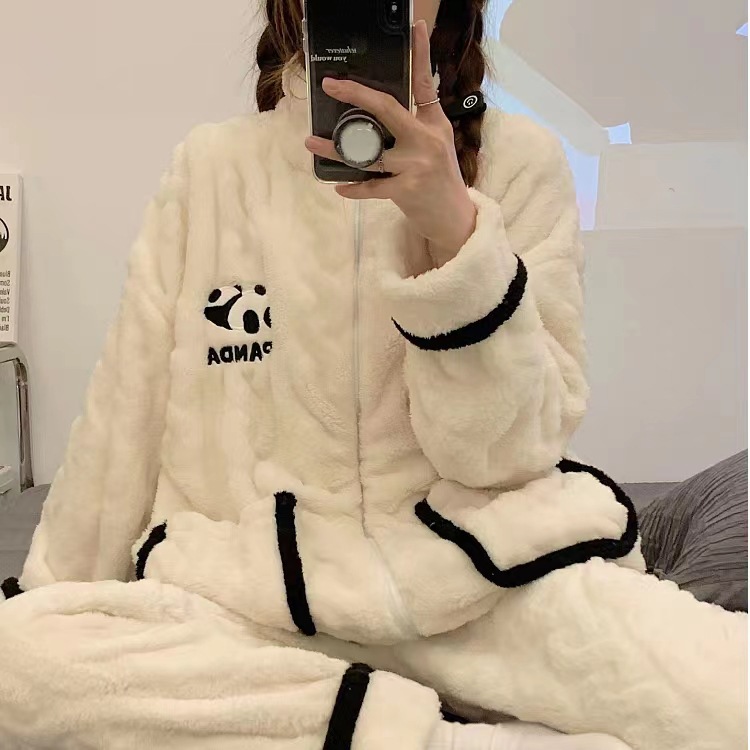 Pijamas de otoño e invierno para mujer más terciopelo grueso de gran tamaño coral vellón 2025 nuevo servicio a domicilio con cremallera casual dulce