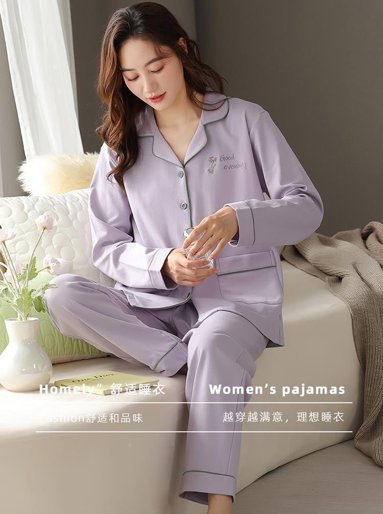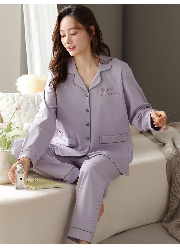 Pijama de mujer primavera y otoño manga larga más grande púrpura de alto grado sensación de otoño y invierno cardigan ropa para el hogar