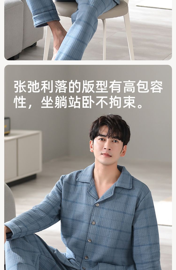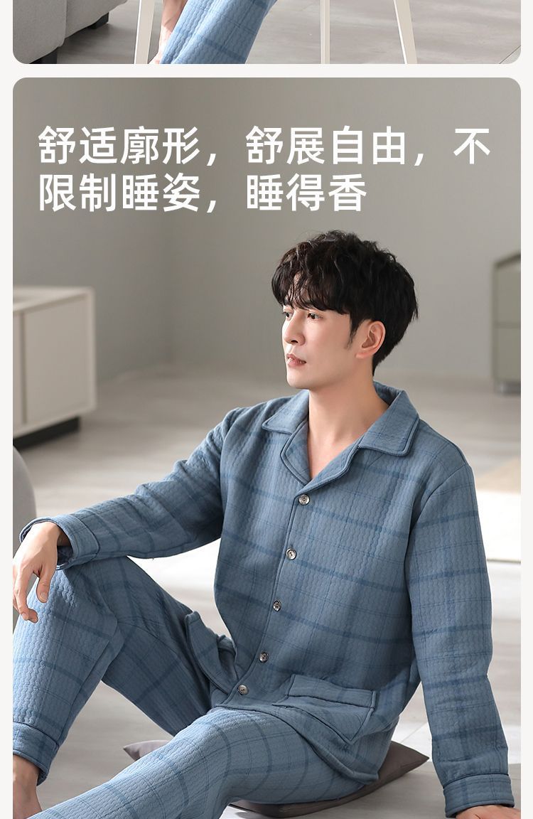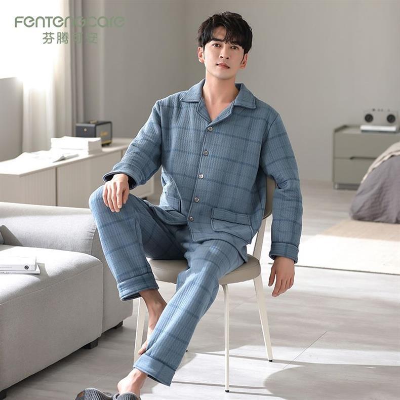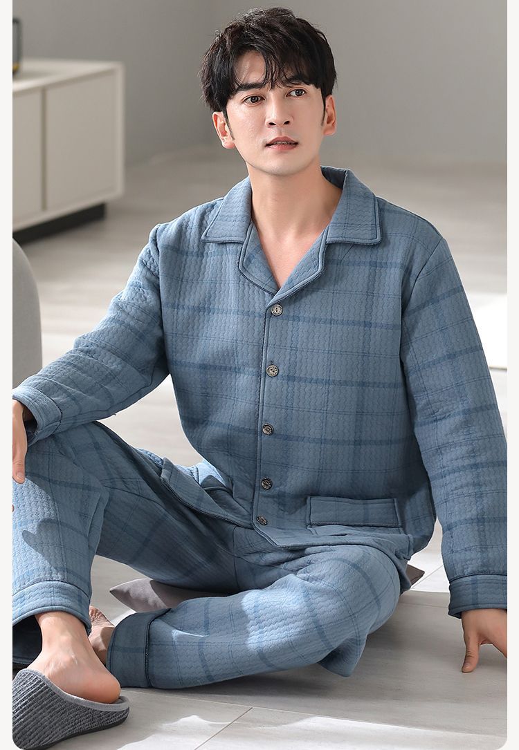 Pijamas de hombre de algodón otoño-invierno tipo intercalación gruesa ropa de abrigo se puede usar aire de algodón