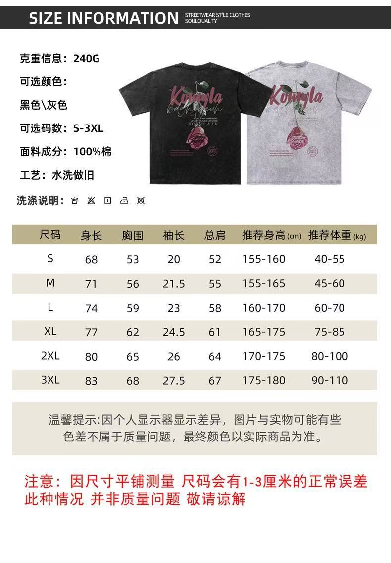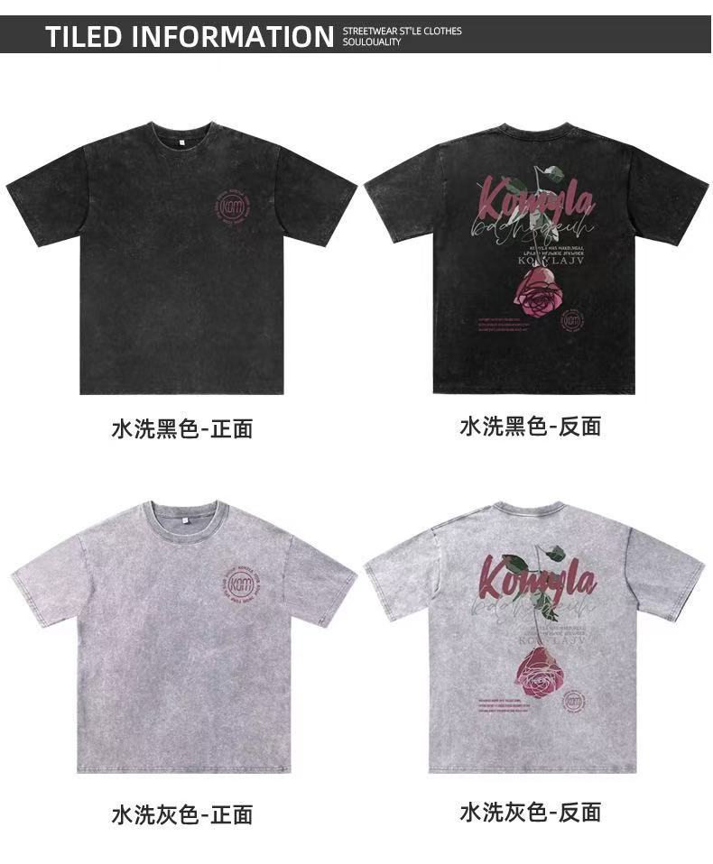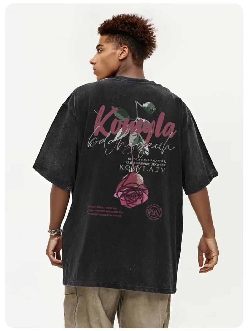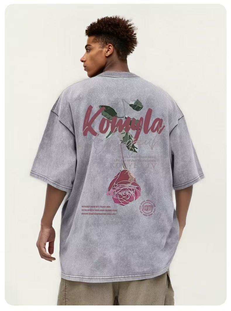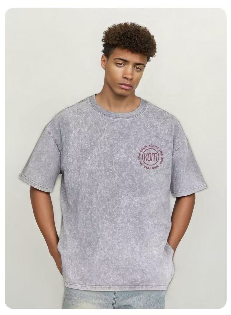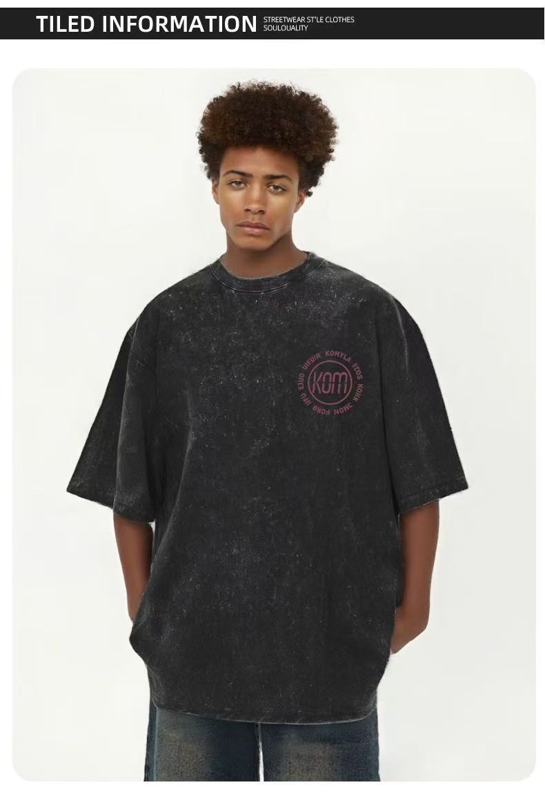 Comercio exterior transfronterizo pesado camiseta de manga corta hombre lavado retro cuello redondo suelto hip-hop estilo americano camisa de hombro en la moda