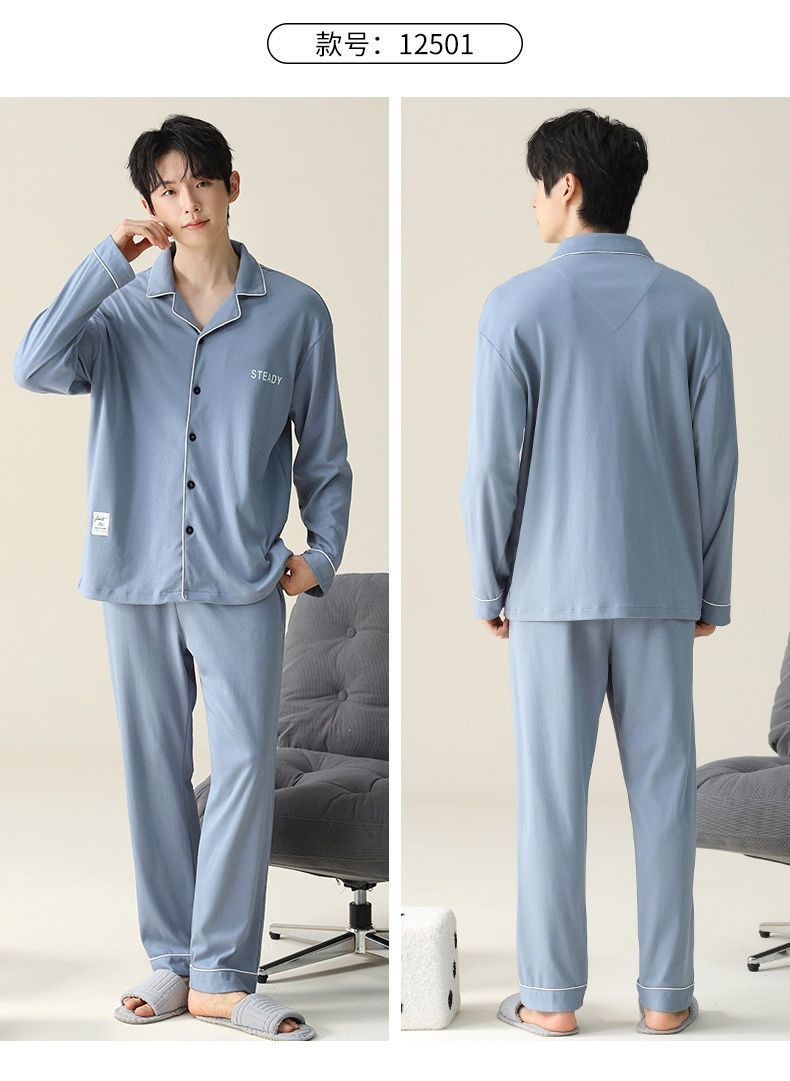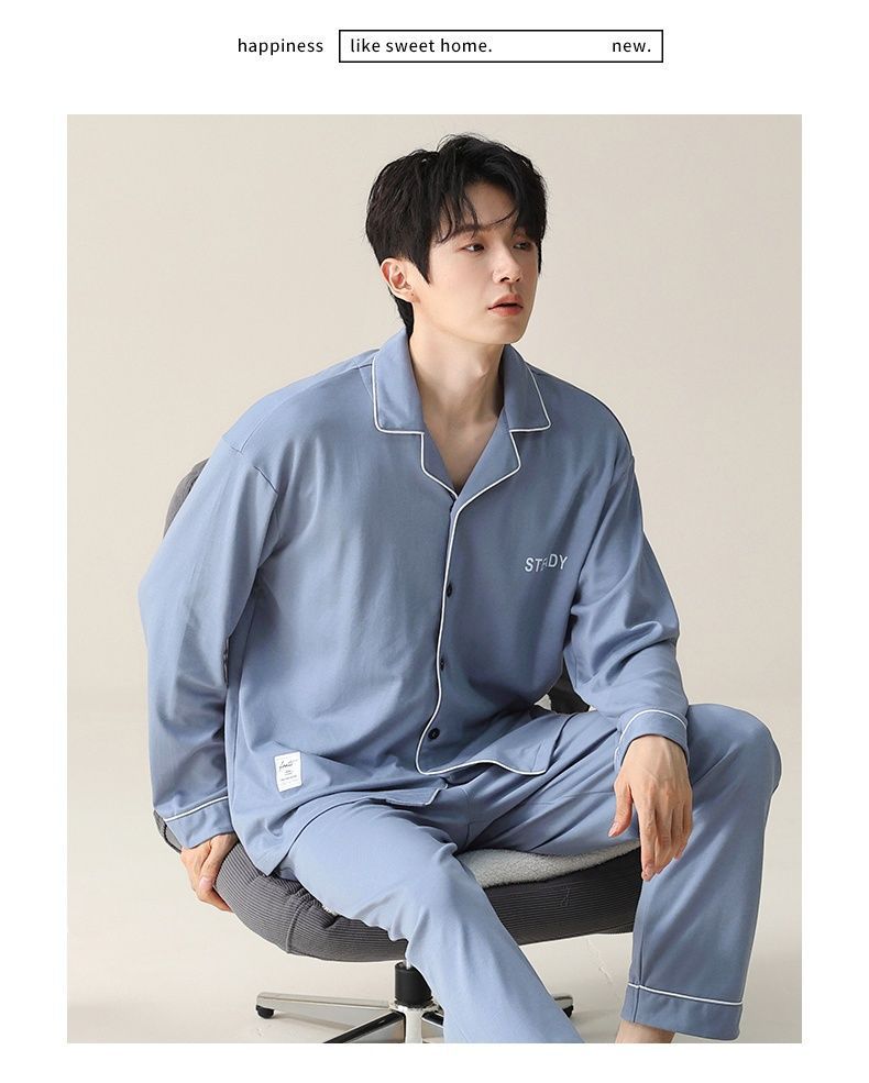Pijamas de algodón para hombres primavera y otoño de alta gama se pueden usar para hombres otoño y invierno conjunto de ropa de hogar