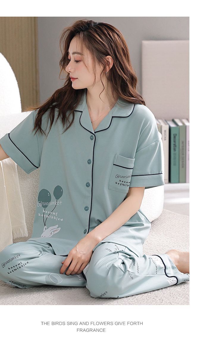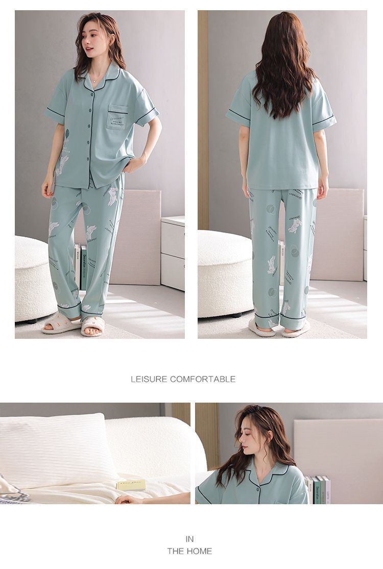 Pijamas de algodón para mujeres verano 2024 nuevos pantalones de mangas cortas delgados ropa para el hogar de tamaño grande