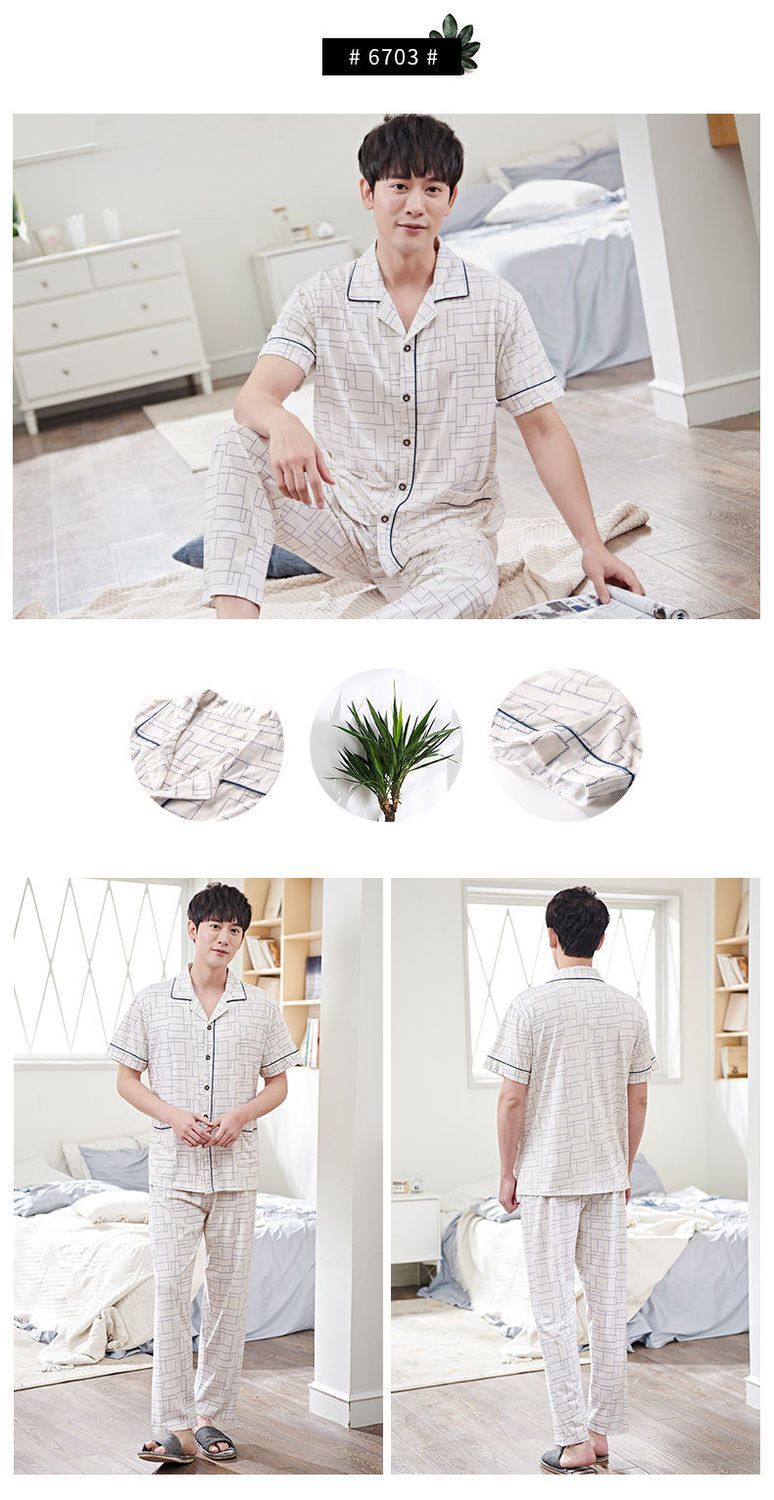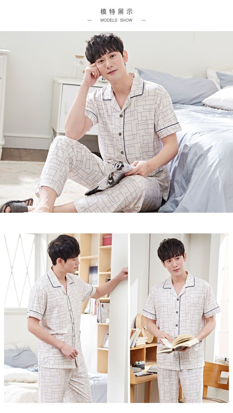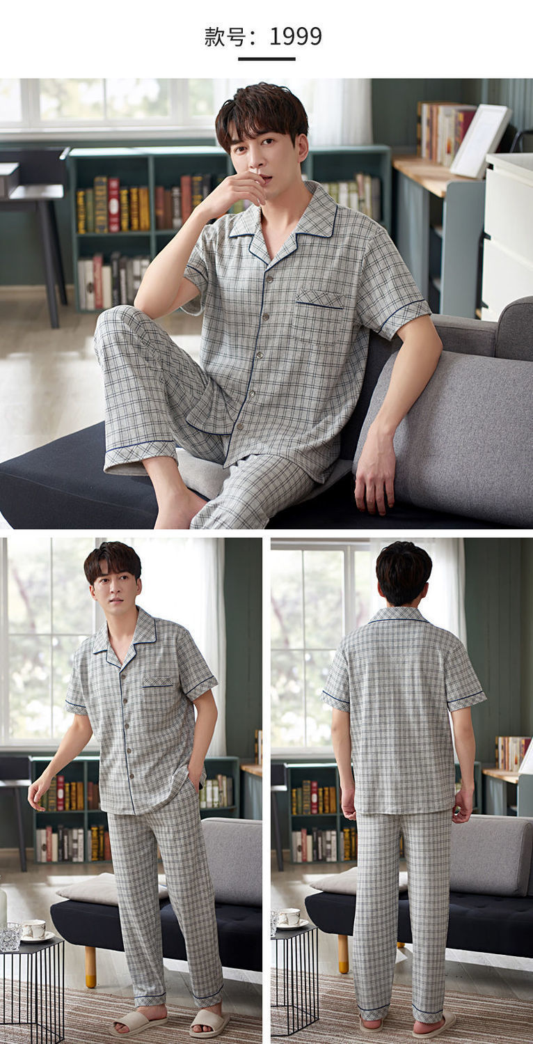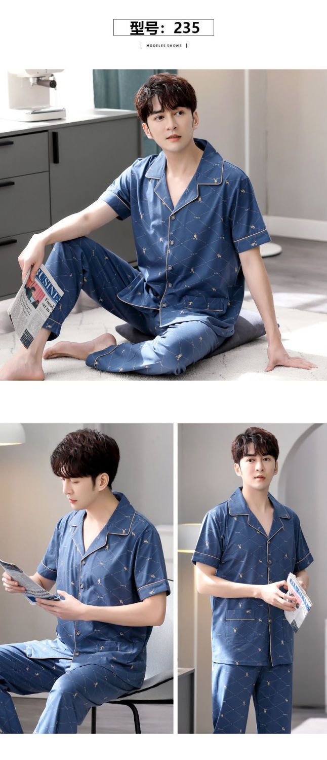 Pijamas para hombres de verano delgados algodón pantalones de mangas cortas para hombres ropa de hogar de verano más grande conjunto