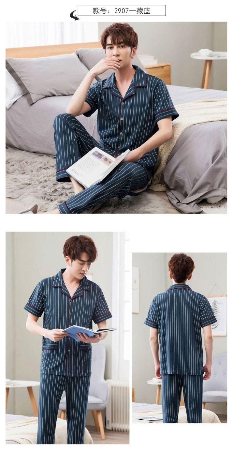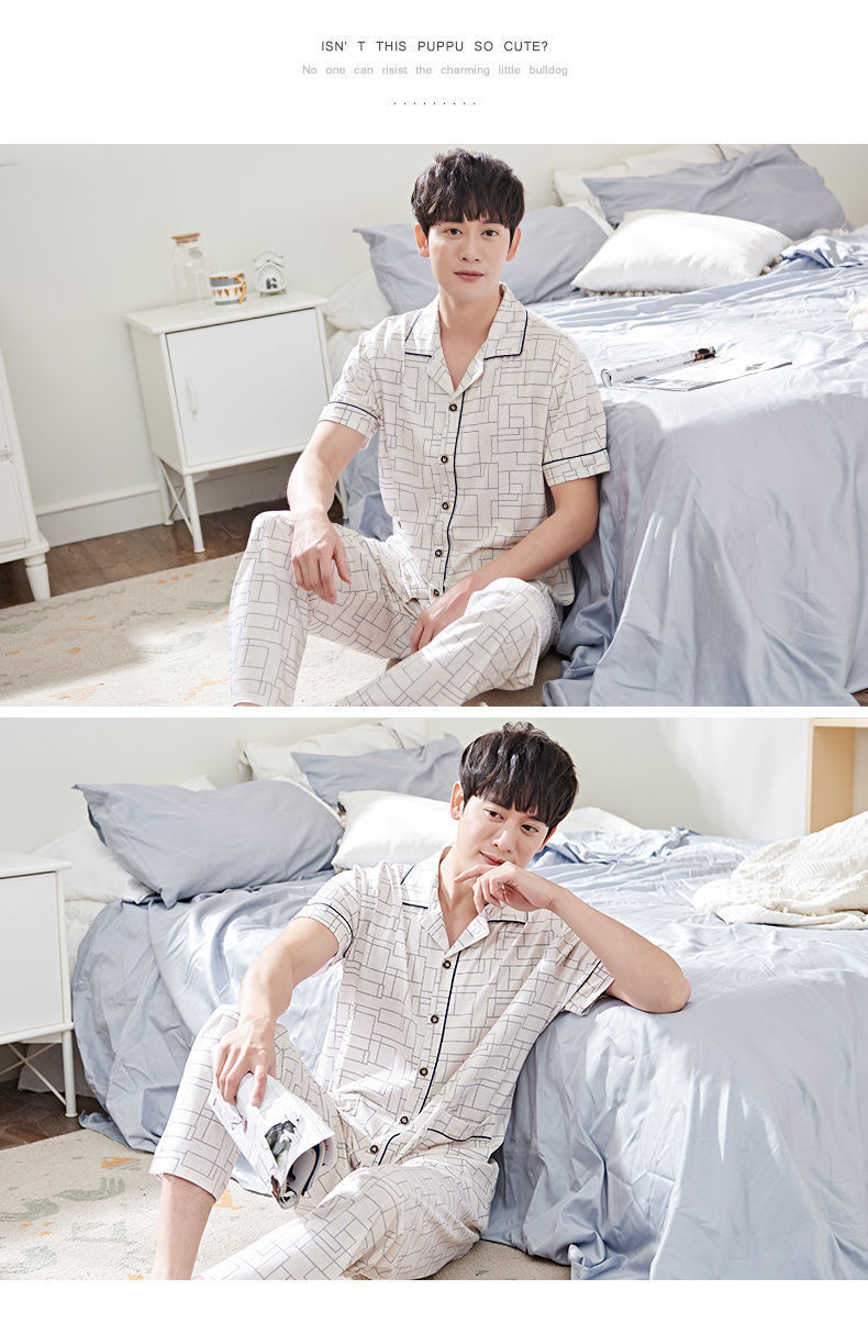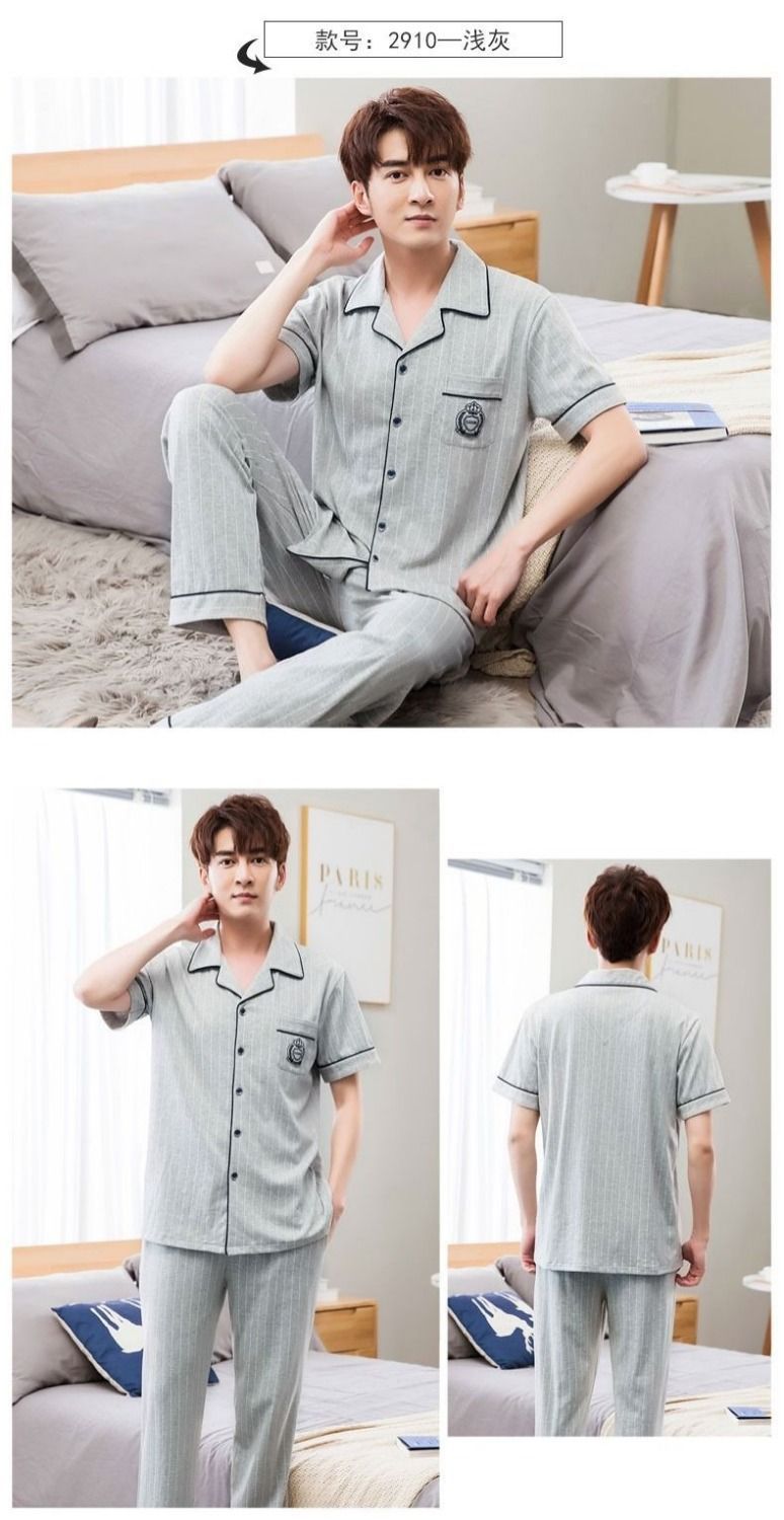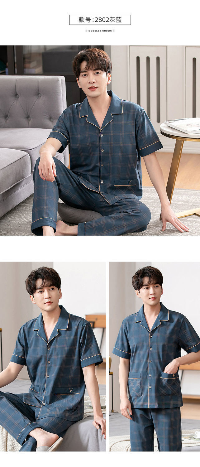 Pijamas para hombres de verano delgados algodón pantalones de mangas cortas para hombres ropa de hogar de verano más grande conjunto