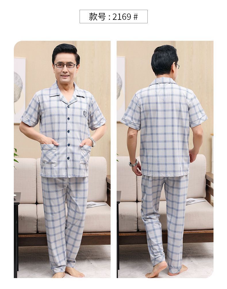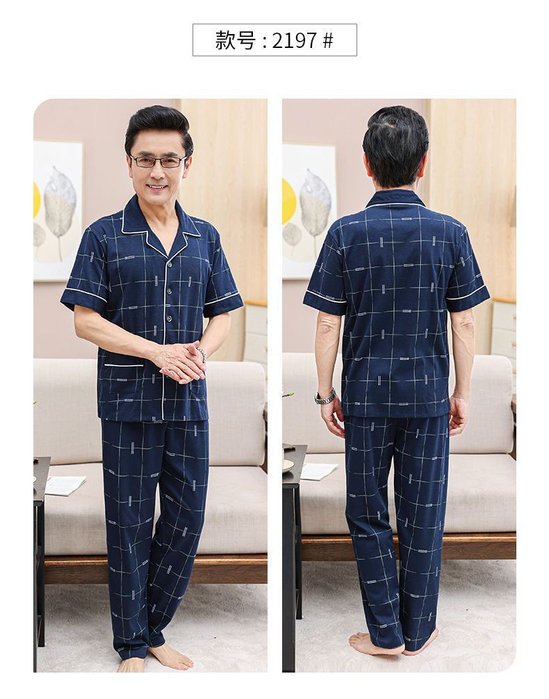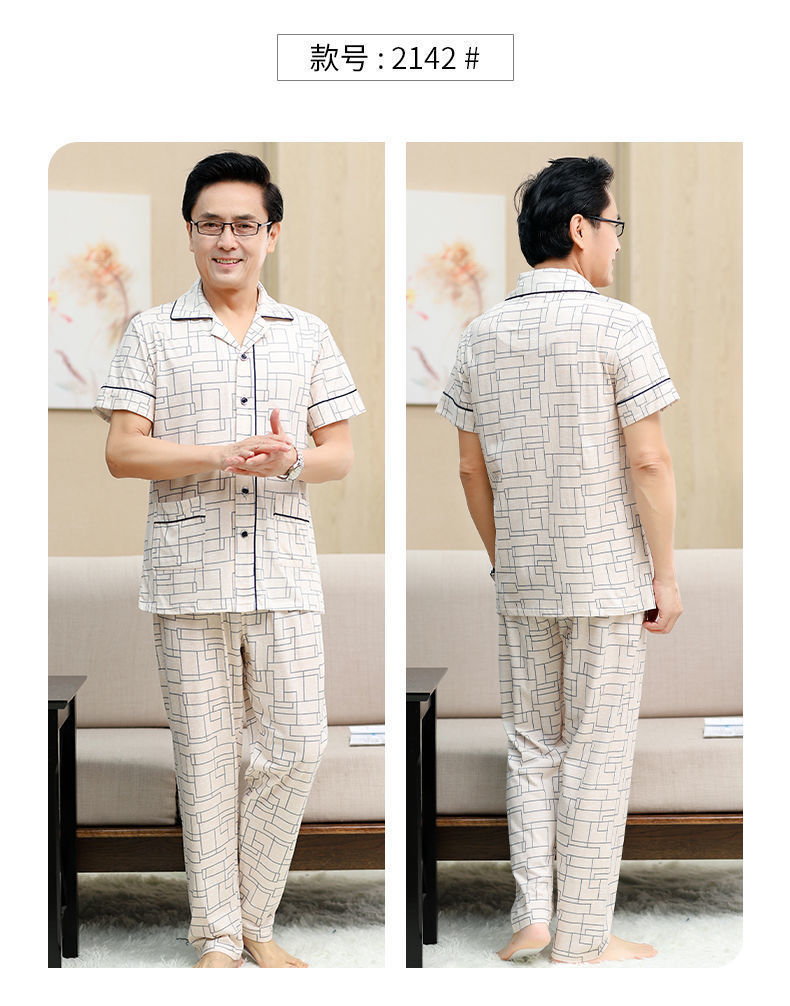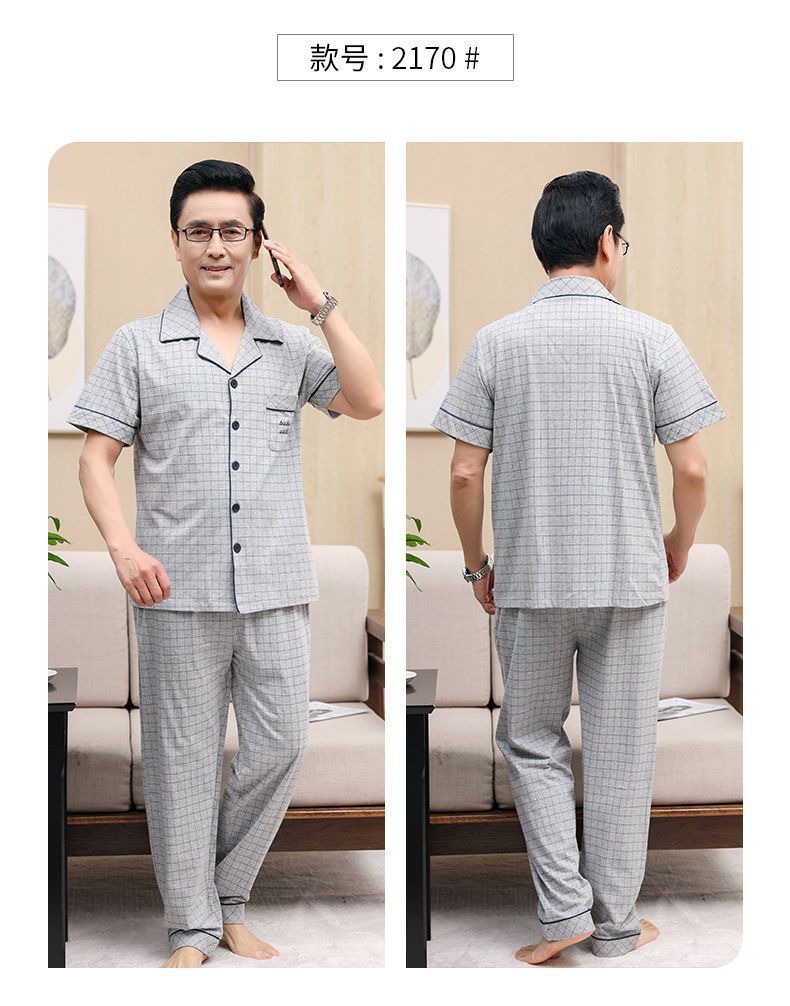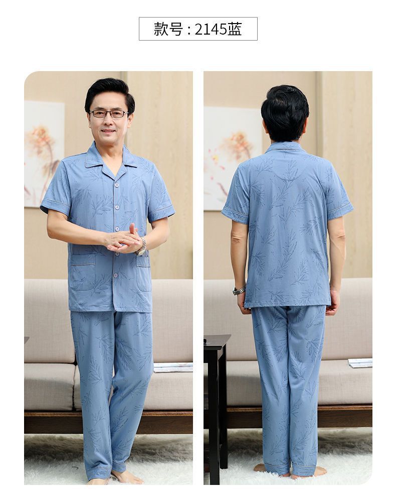 Pijamas de verano de algodón, pantalones largos de manga corta delgados y sueltos más grandes para padres de mediana edad, set de ropa de casa