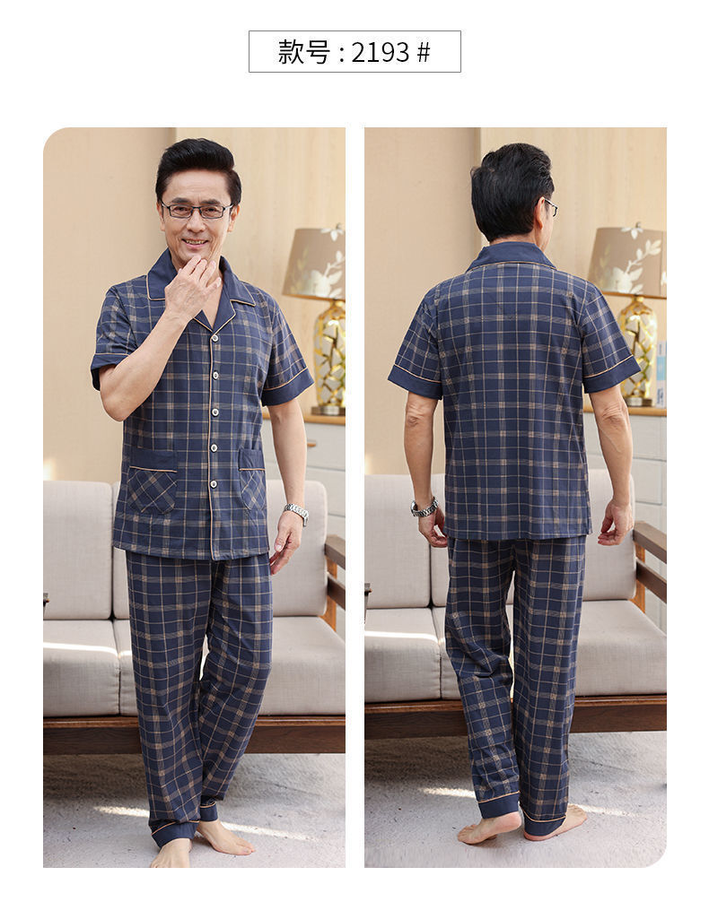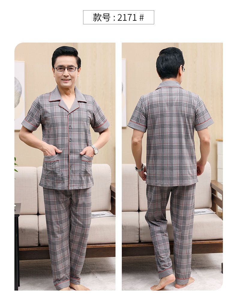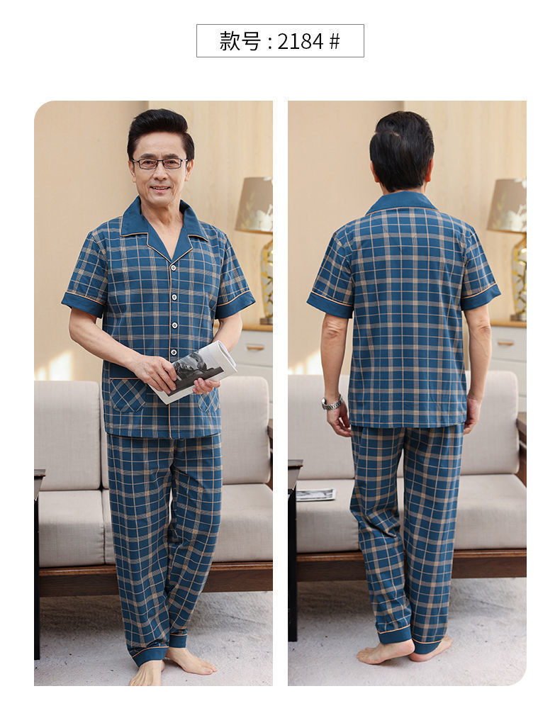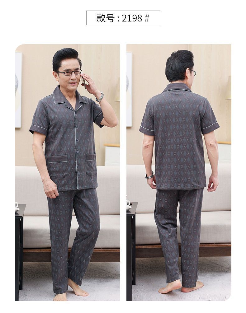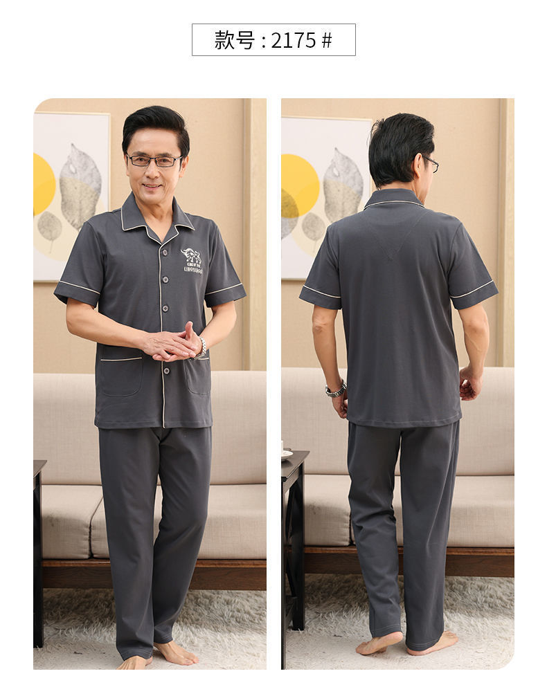 Pijamas de verano de algodón, pantalones largos de manga corta delgados y sueltos más grandes para padres de mediana edad, set de ropa de casa