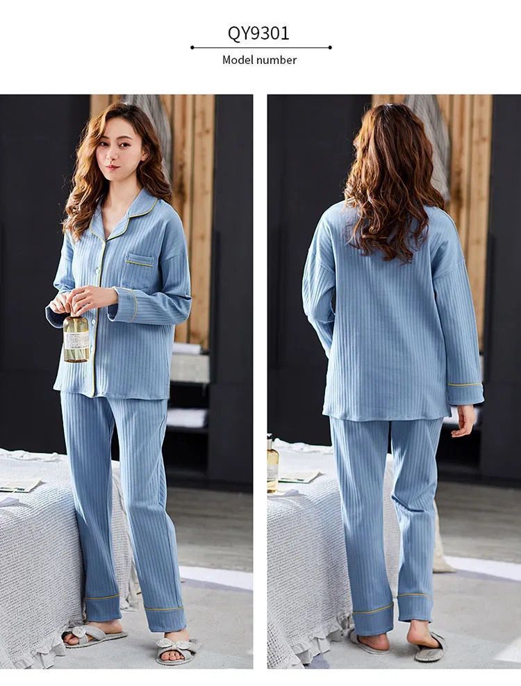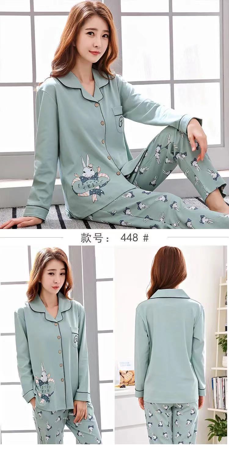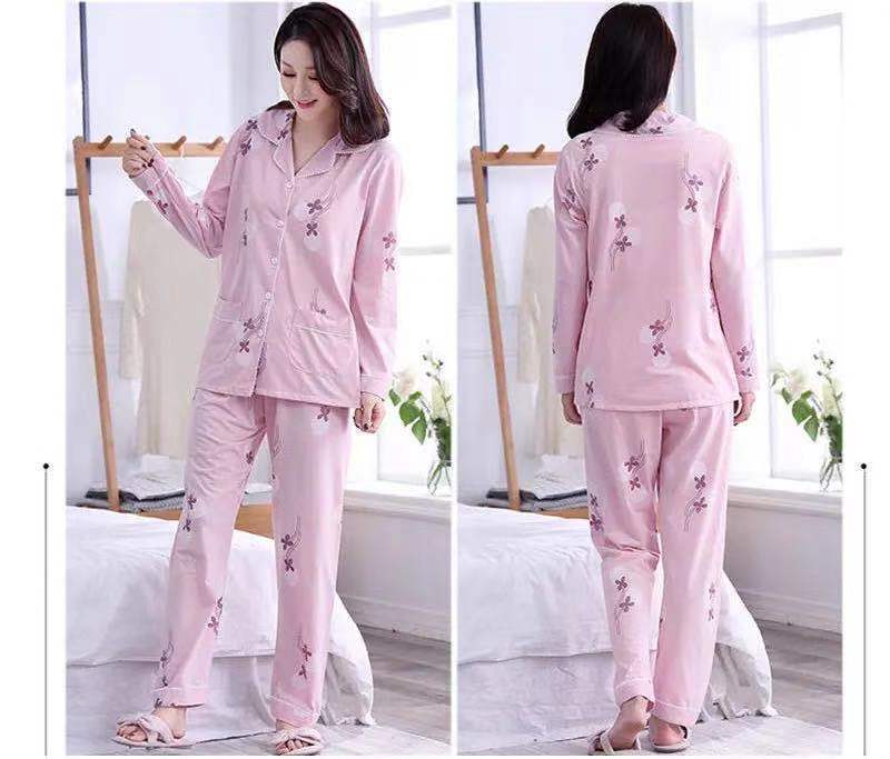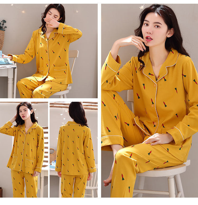 Pijamas de algodón para mujer Primavera y otoño de manga larga de invierno más pijamas de tamaño verano traje de mujer homewear se puede usar fuera
