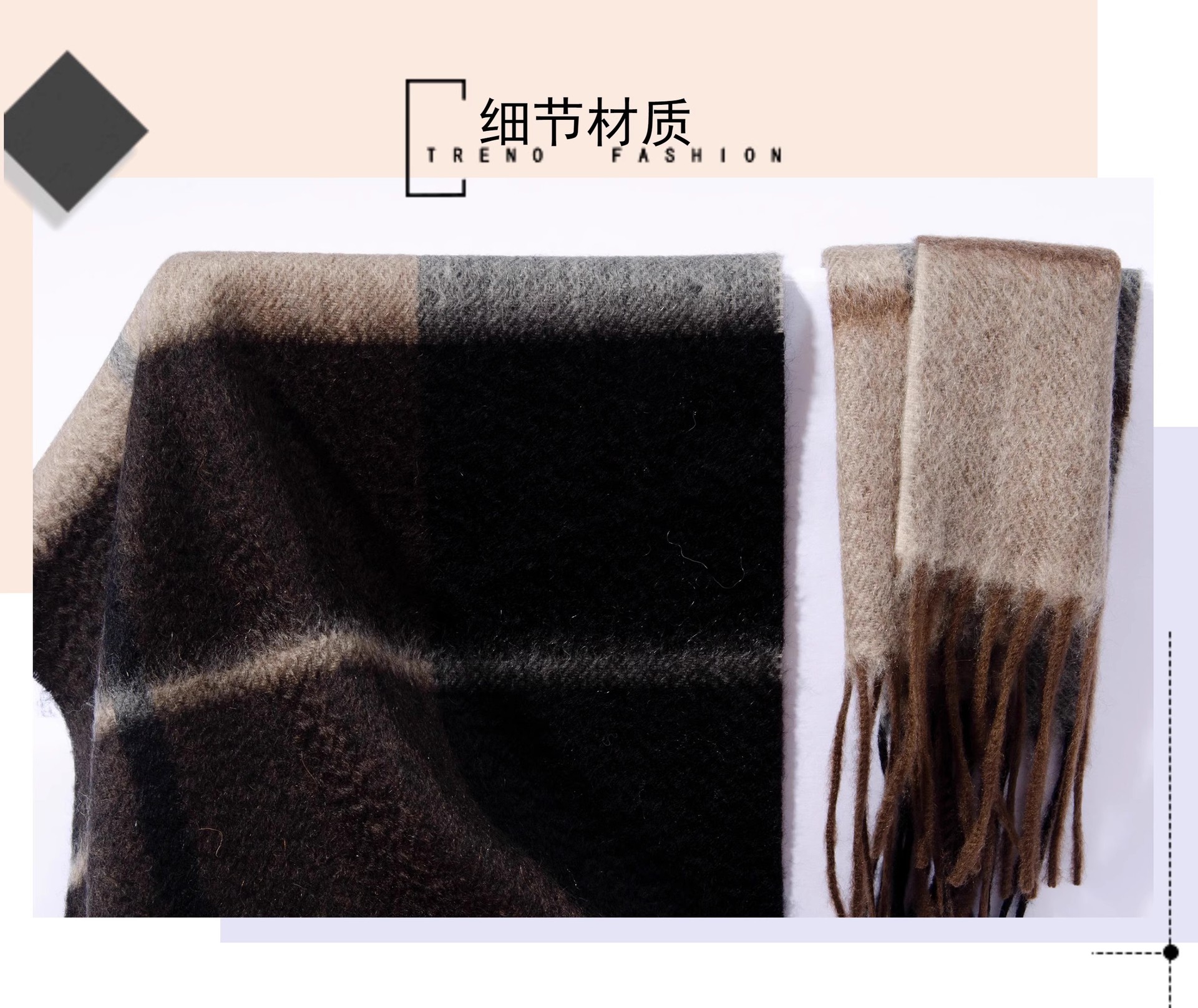 Bufanda de cachemira teñida con hilo de diseño de ondas de agua, estilo nuevo de otoño e invierno, cepillada, con borlas modernas, versátil.