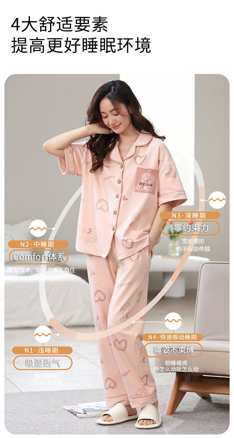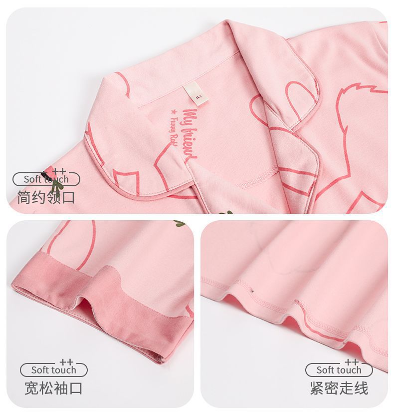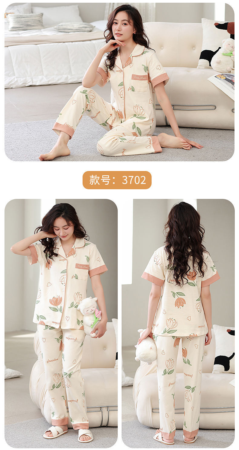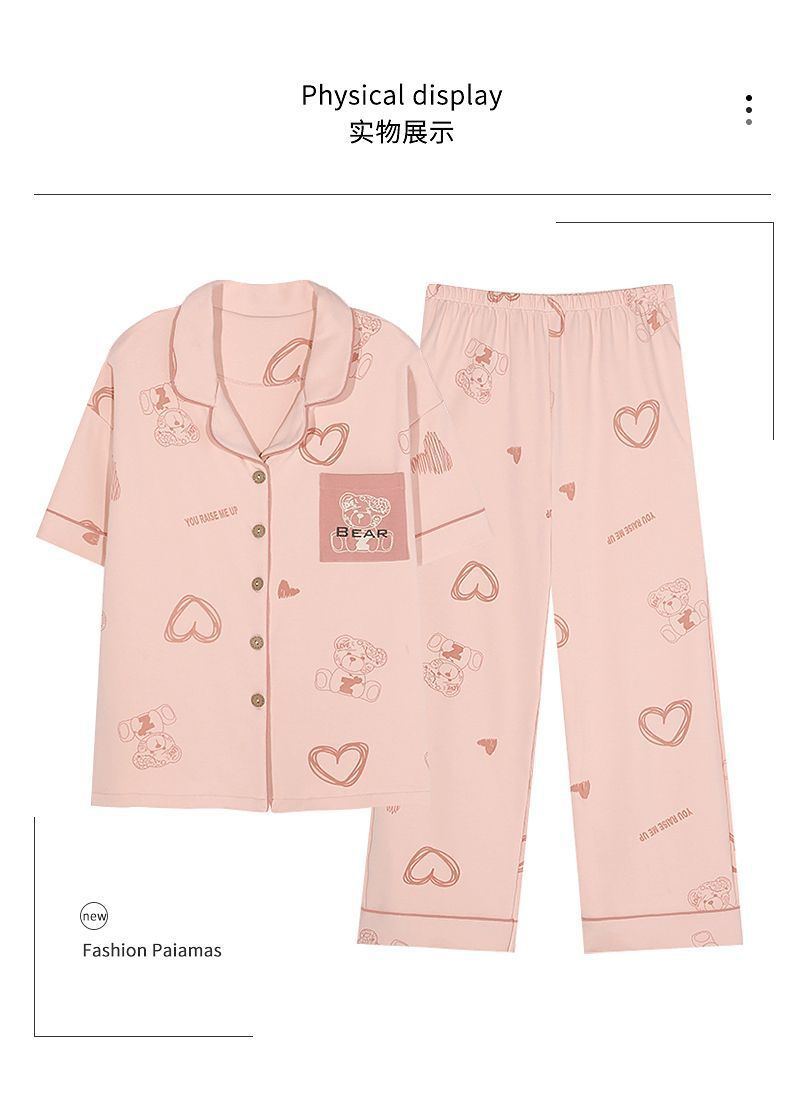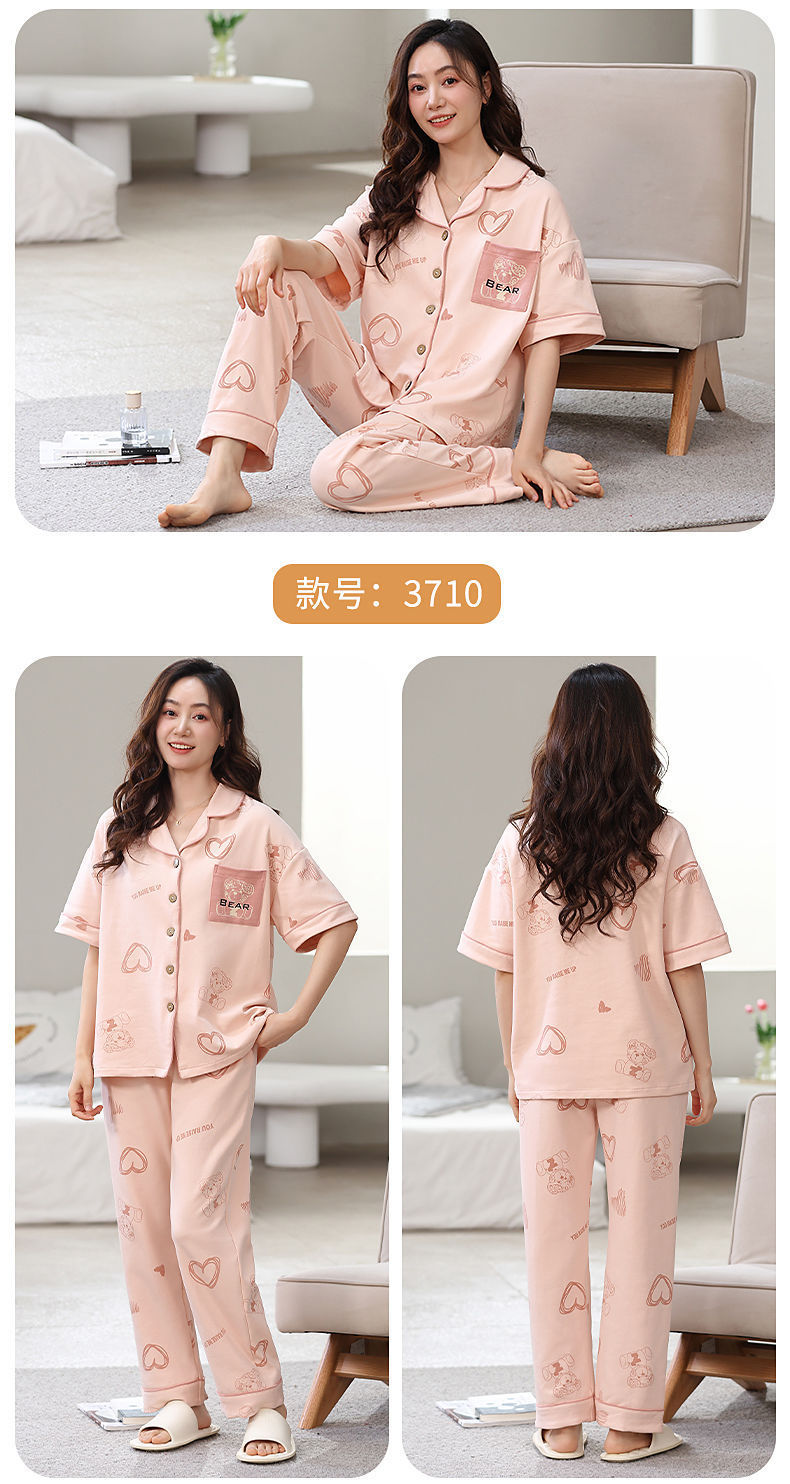 Pajamas de algodón de dos caras para mujeres de verano coreanas pantalones de manga corta, cardigan grande, ropa para el hogar juvenil