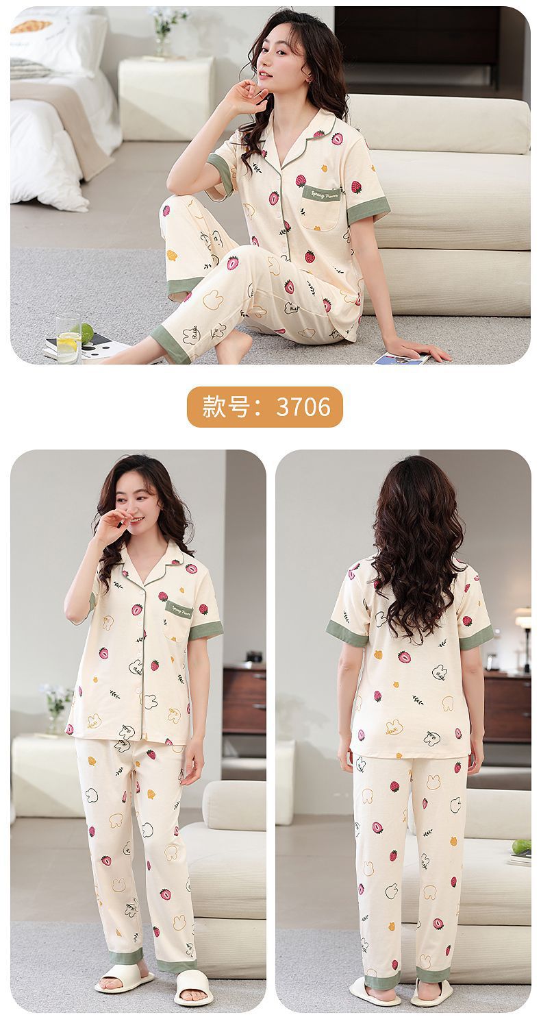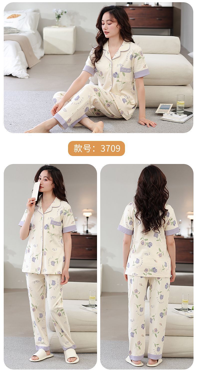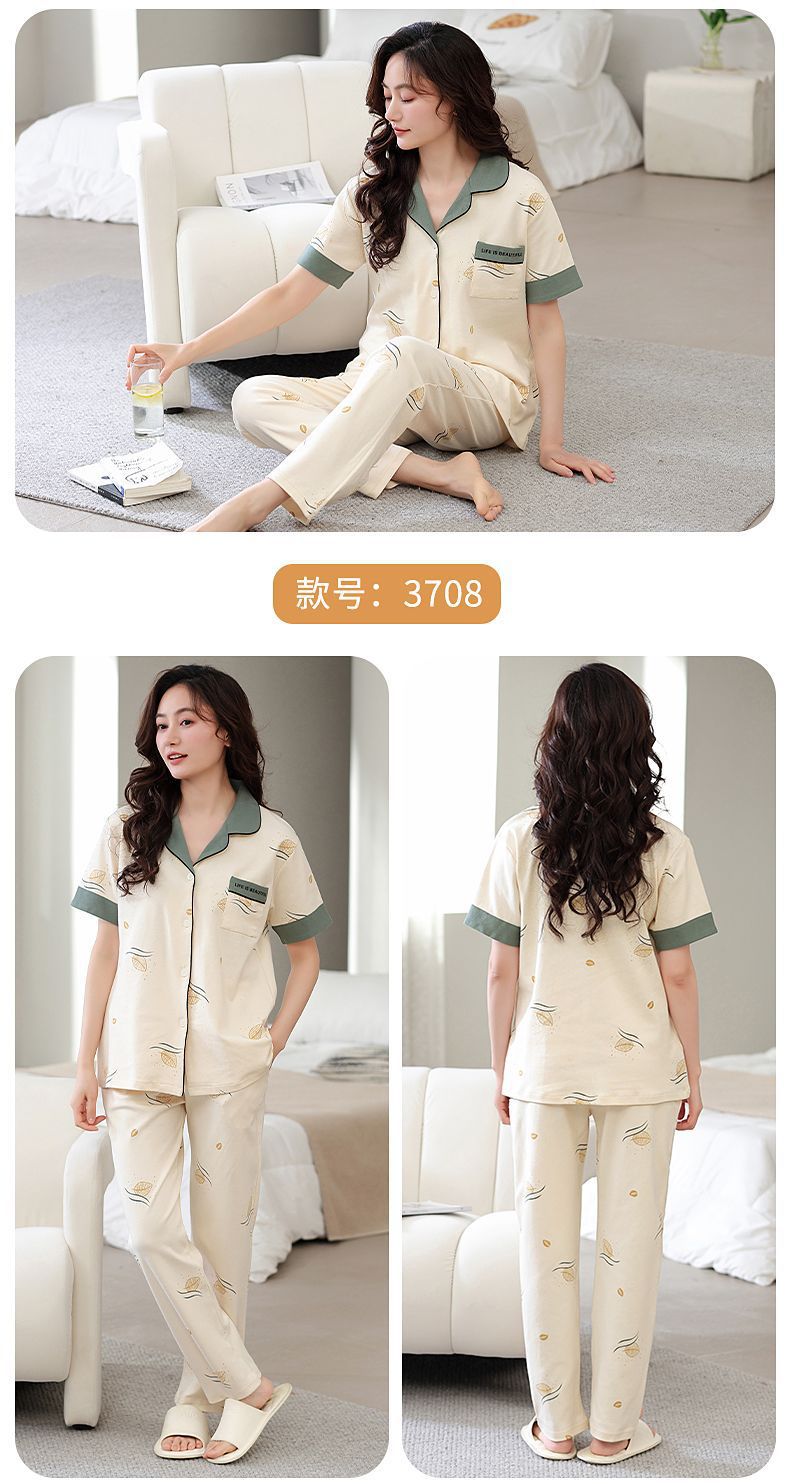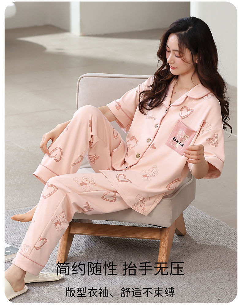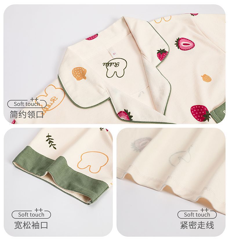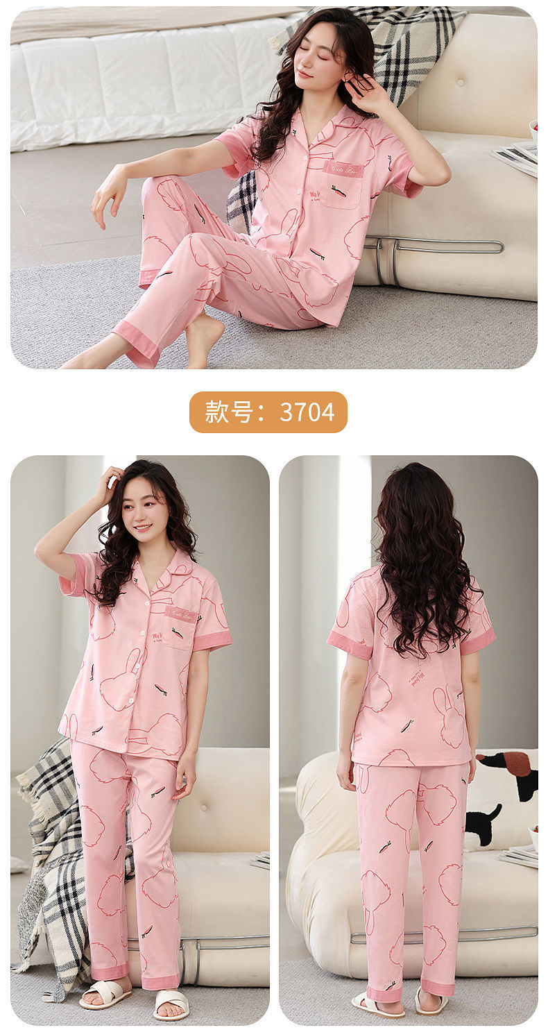 Pajamas de algodón de dos caras para mujeres de verano coreanas pantalones de manga corta, cardigan grande, ropa para el hogar juvenil
