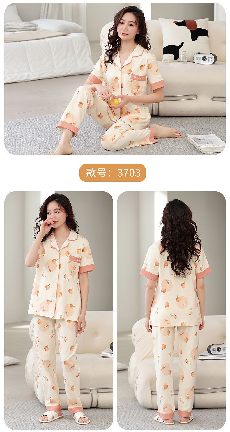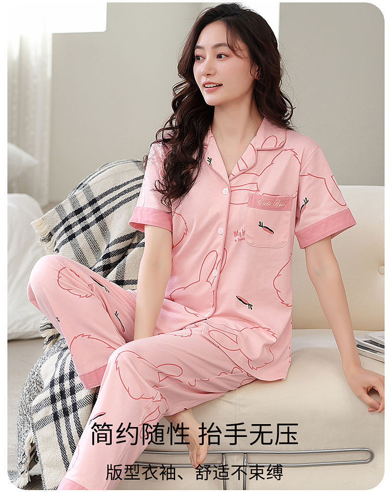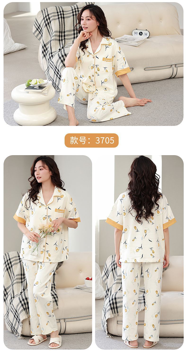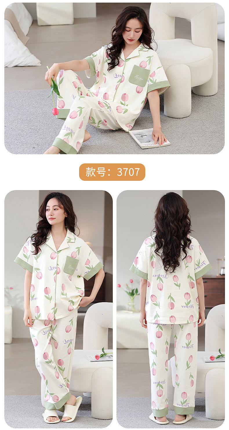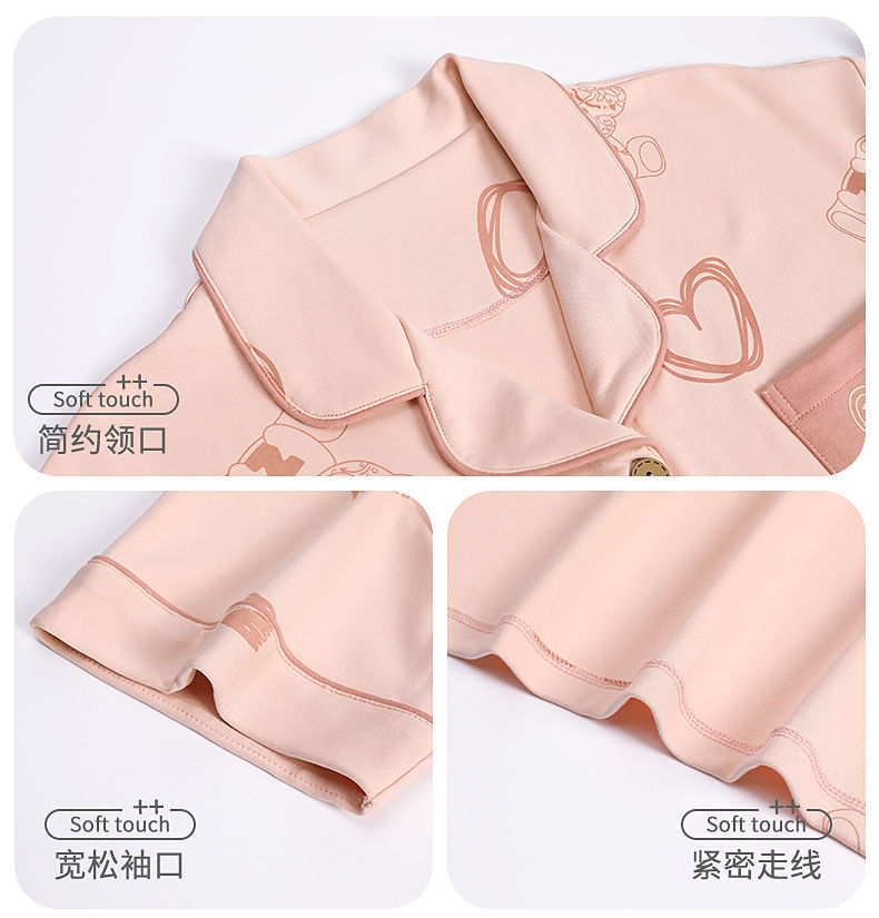 Pajamas de algodón de dos caras para mujeres de verano coreanas pantalones de manga corta, cardigan grande, ropa para el hogar juvenil