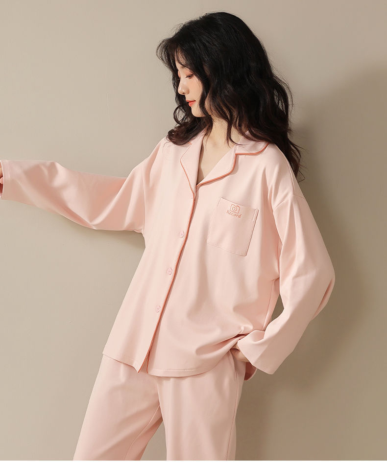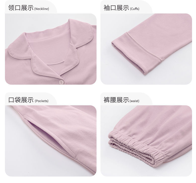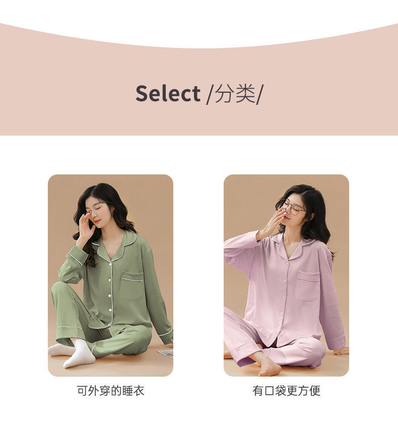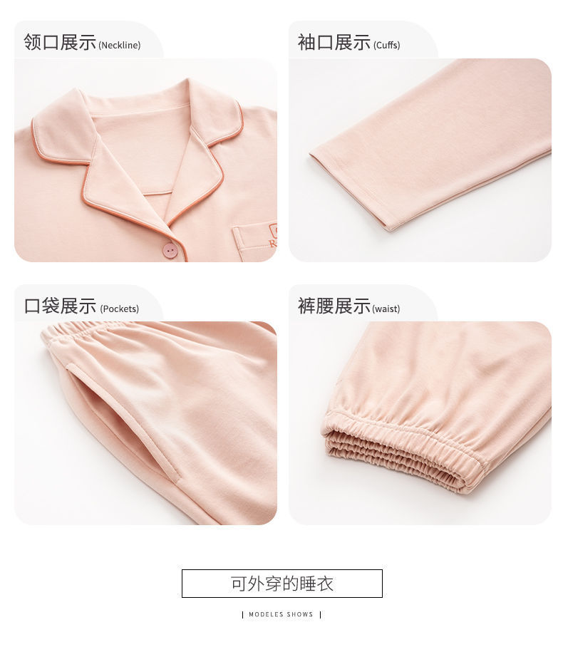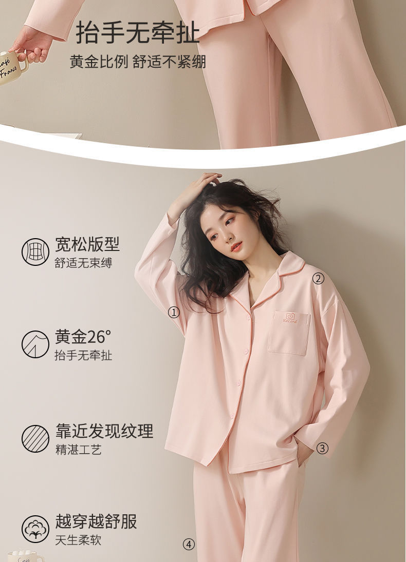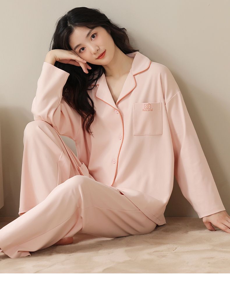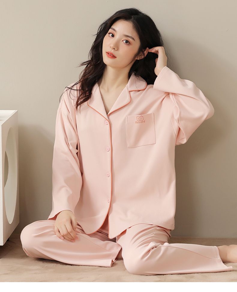 Pijama de algodón de primavera y otoño de color sólido de otoño pantalones de manga larga cardigan damas de tamaño grande se puede usar fuera conjunto de ropa de casa