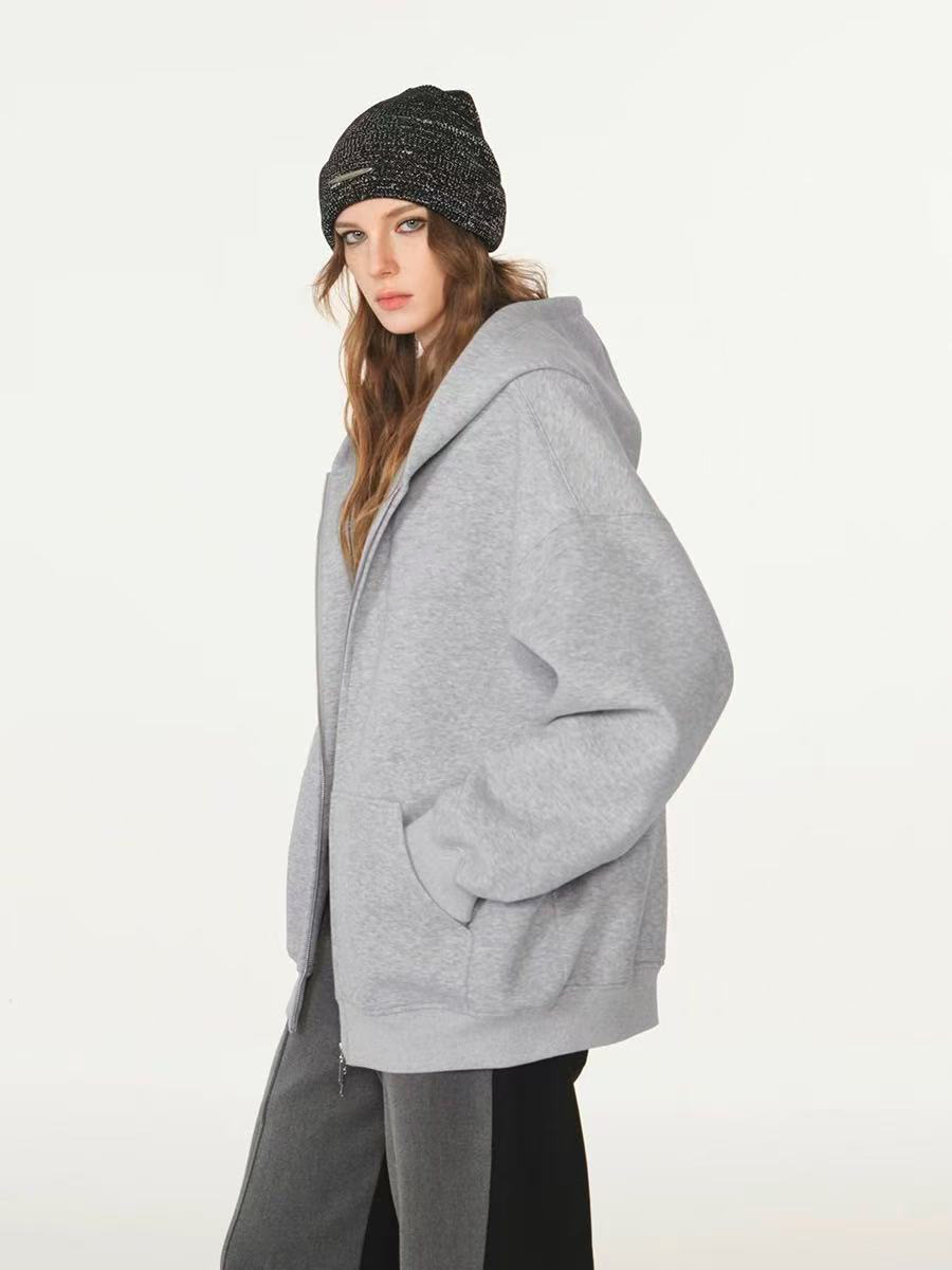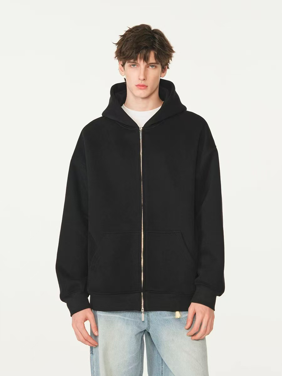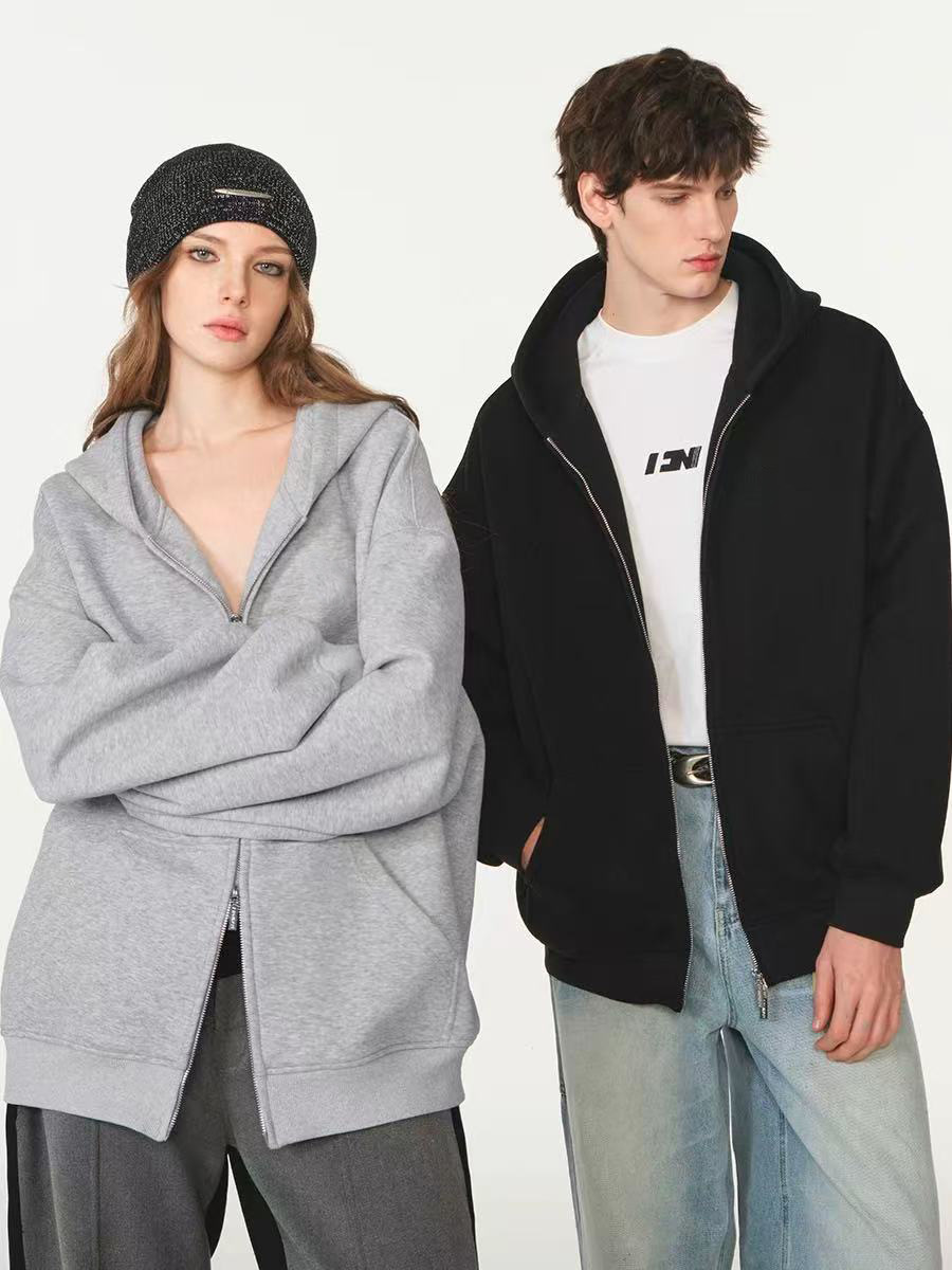 550g pesado chaqueta deportiva con capuzas hombre doble cremallera de color sólido chaqueta de tendencia suelta Europa otoño invierno nuevos productos