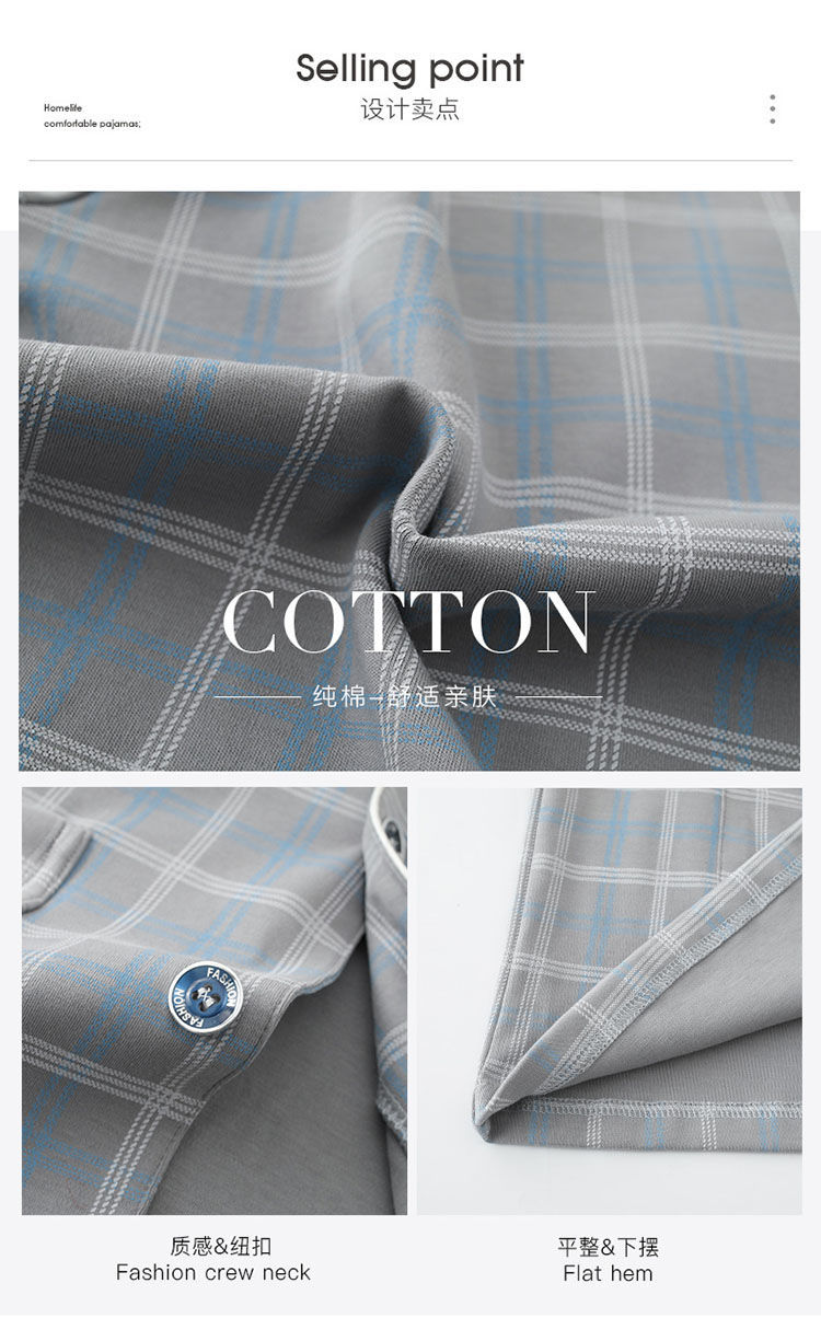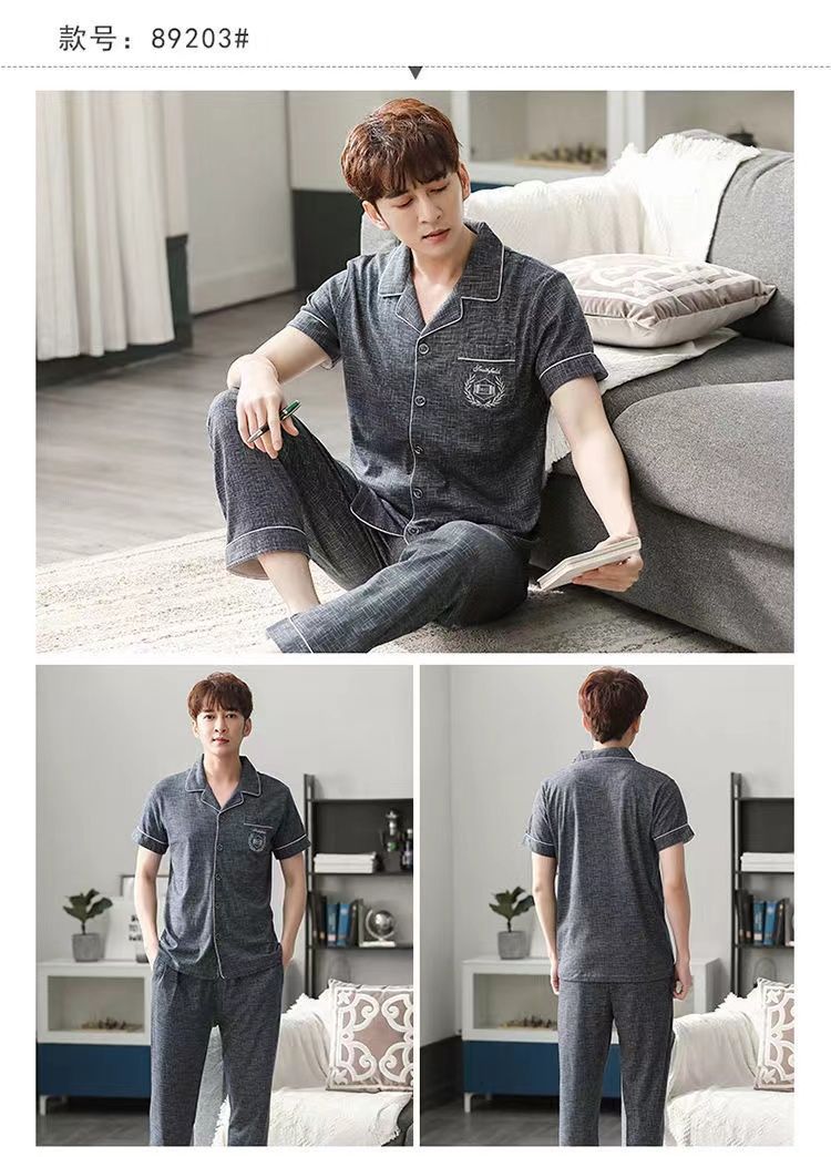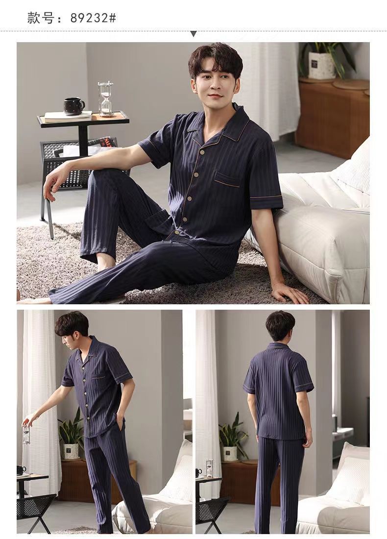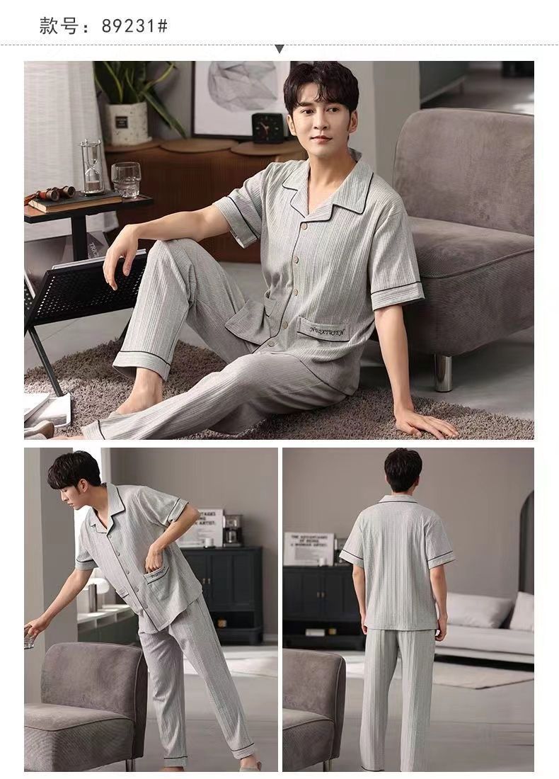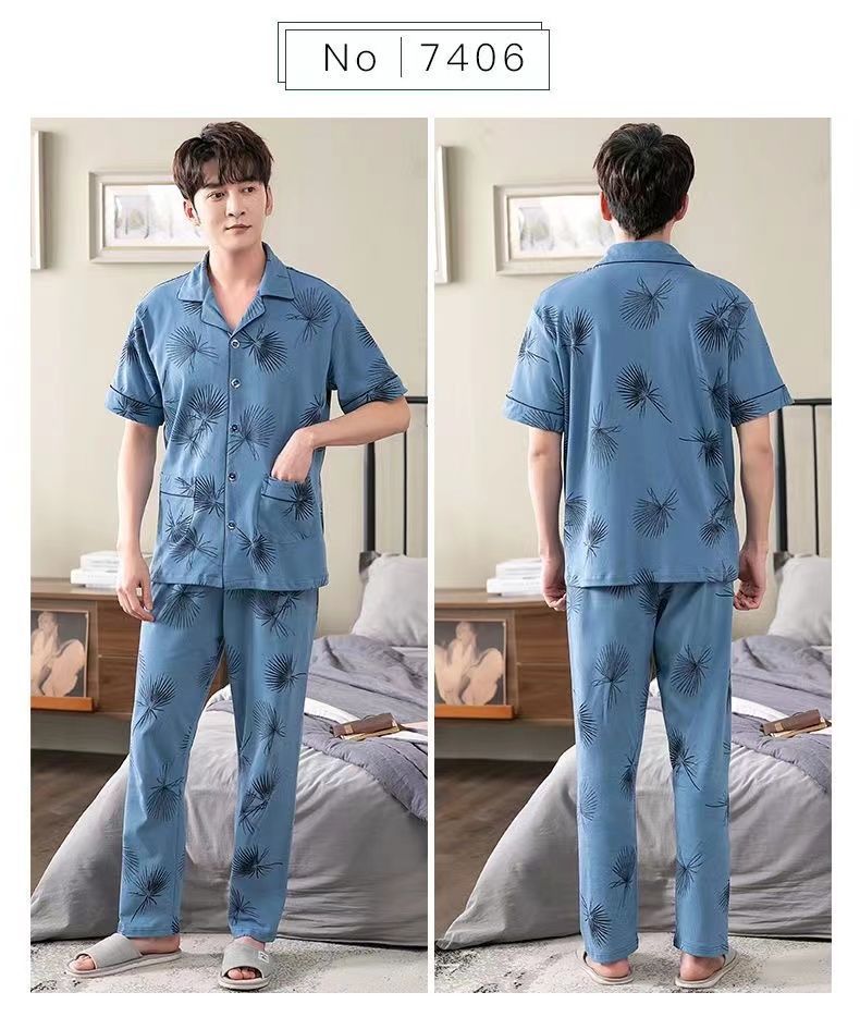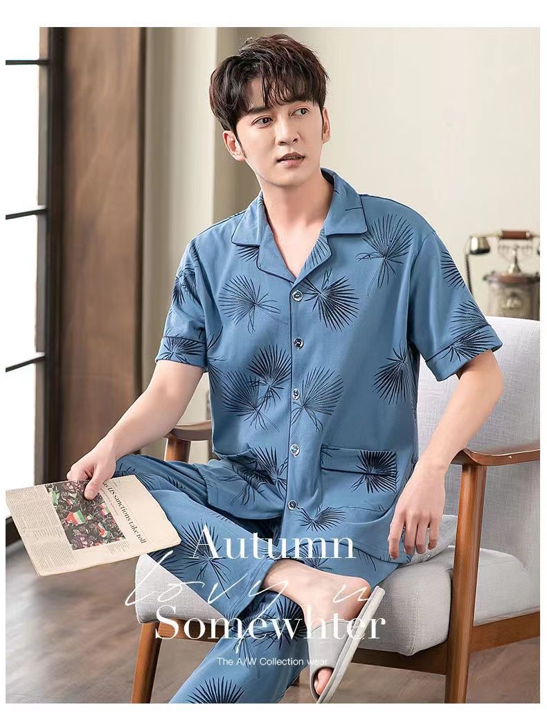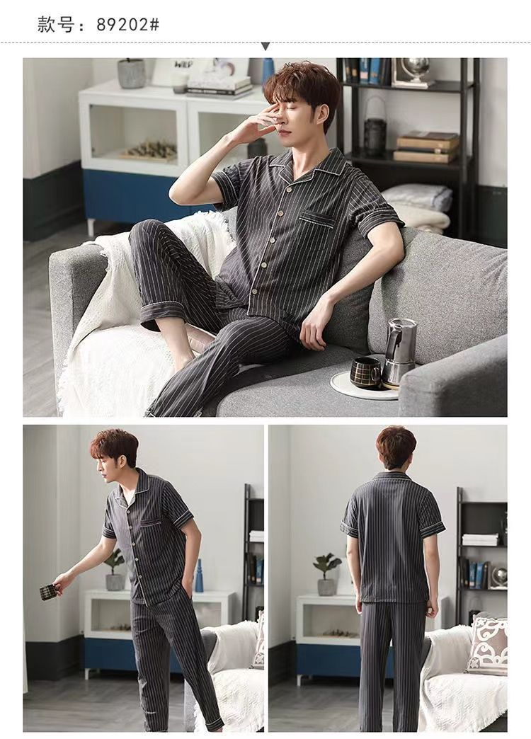 Pijamas de hombre Pantalones de manga corta de verano traje de dos piezas 100% algodón suelto más tamaño cardigan Plaid ropa para el hogar