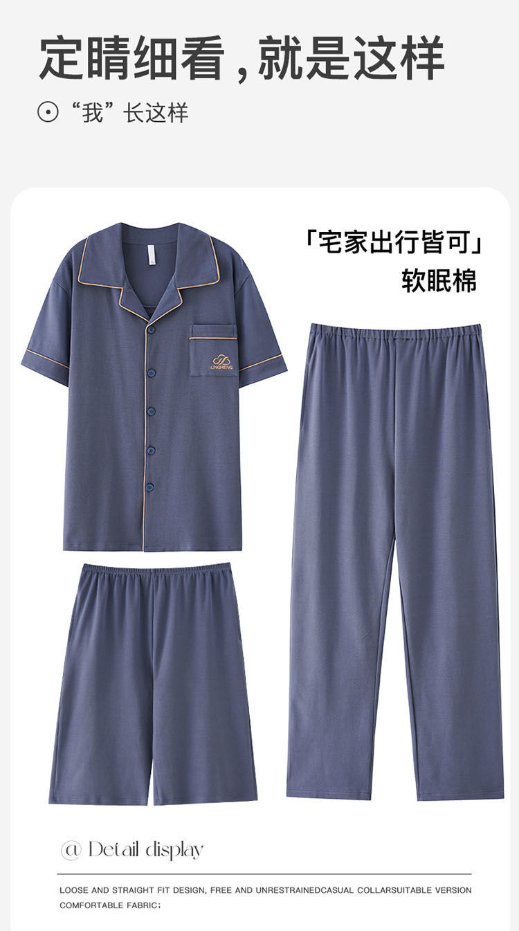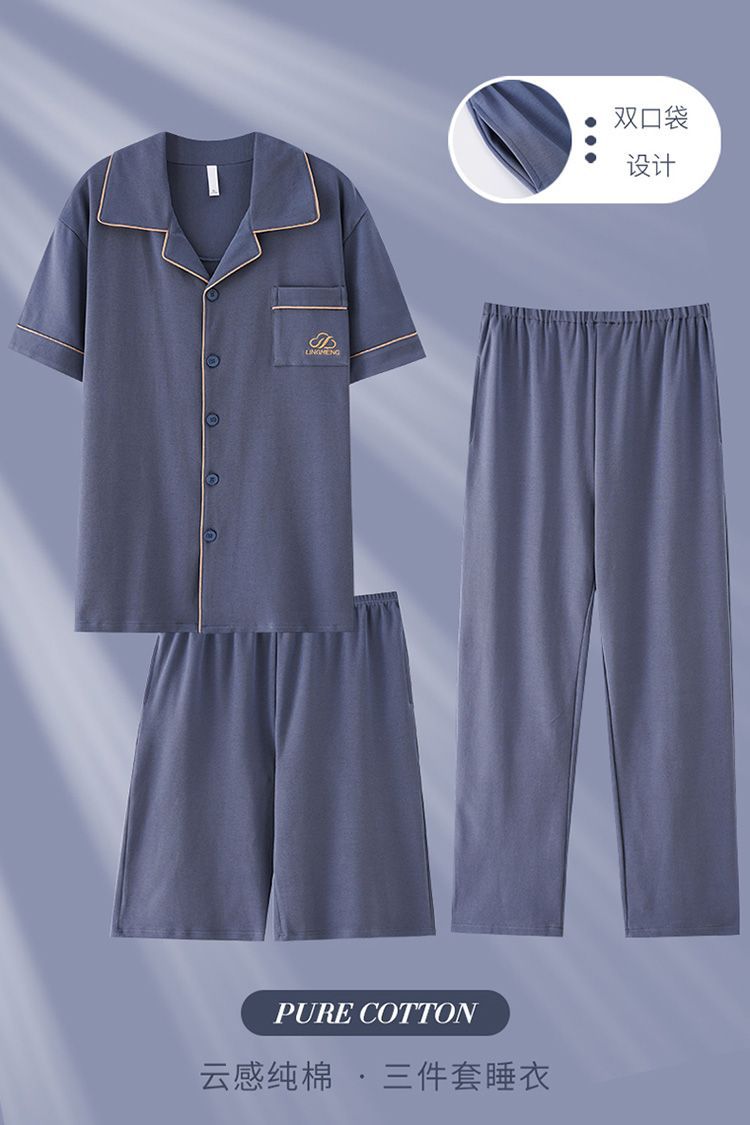 Pijamas de algodón para hombre de tres piezas pantalones cortos de rebeca de manga corta de verano pantalones ropa a domicilio de talla grande