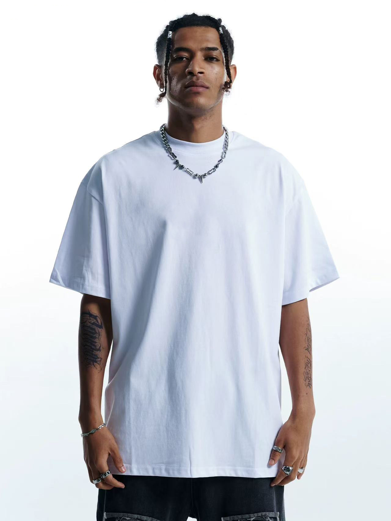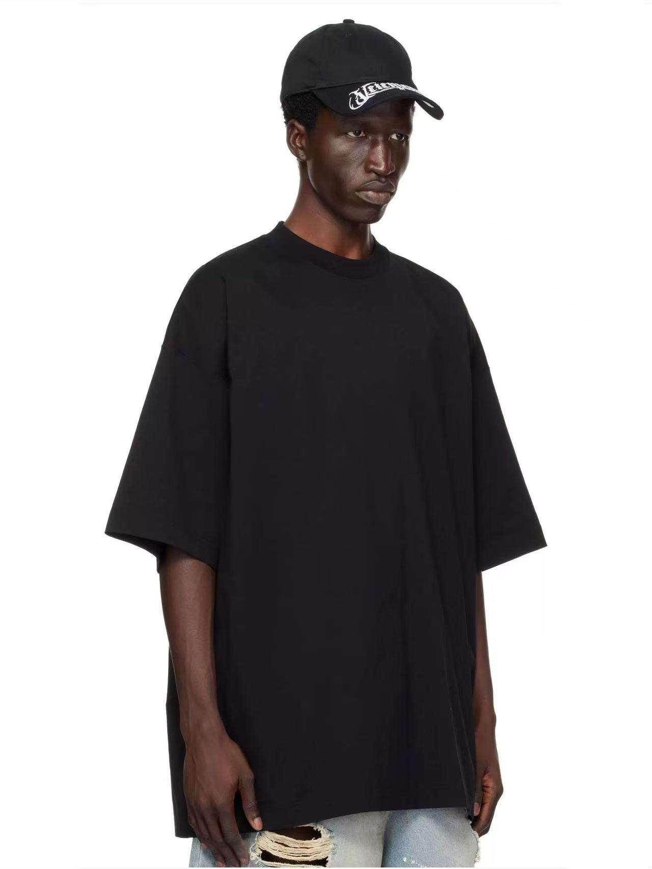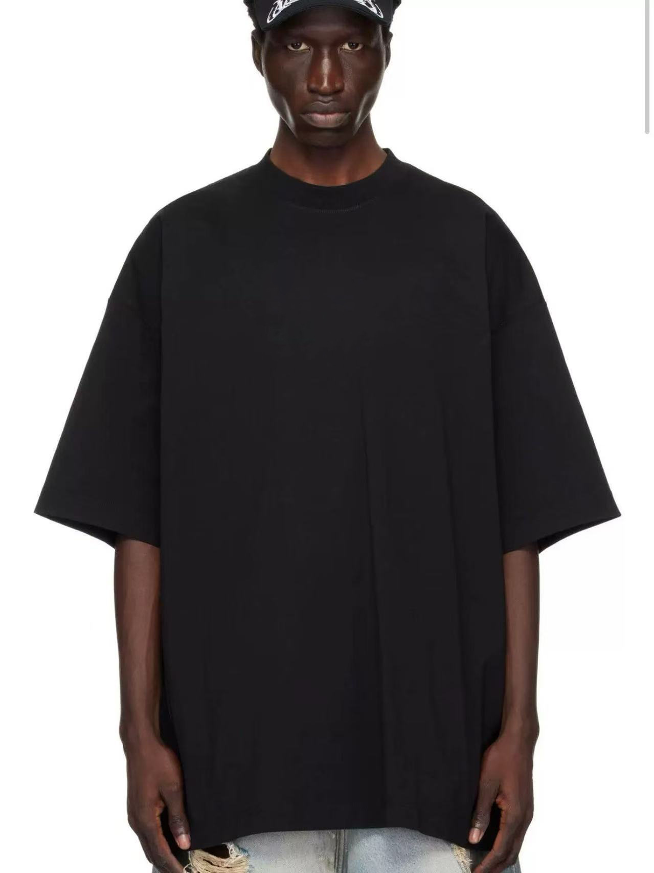 Bajia modelo de cuello pequeño de cuello alto europeo y americano camiseta de manga corta hombre hombro caído suelto pareja casual en la parte superior versátil
