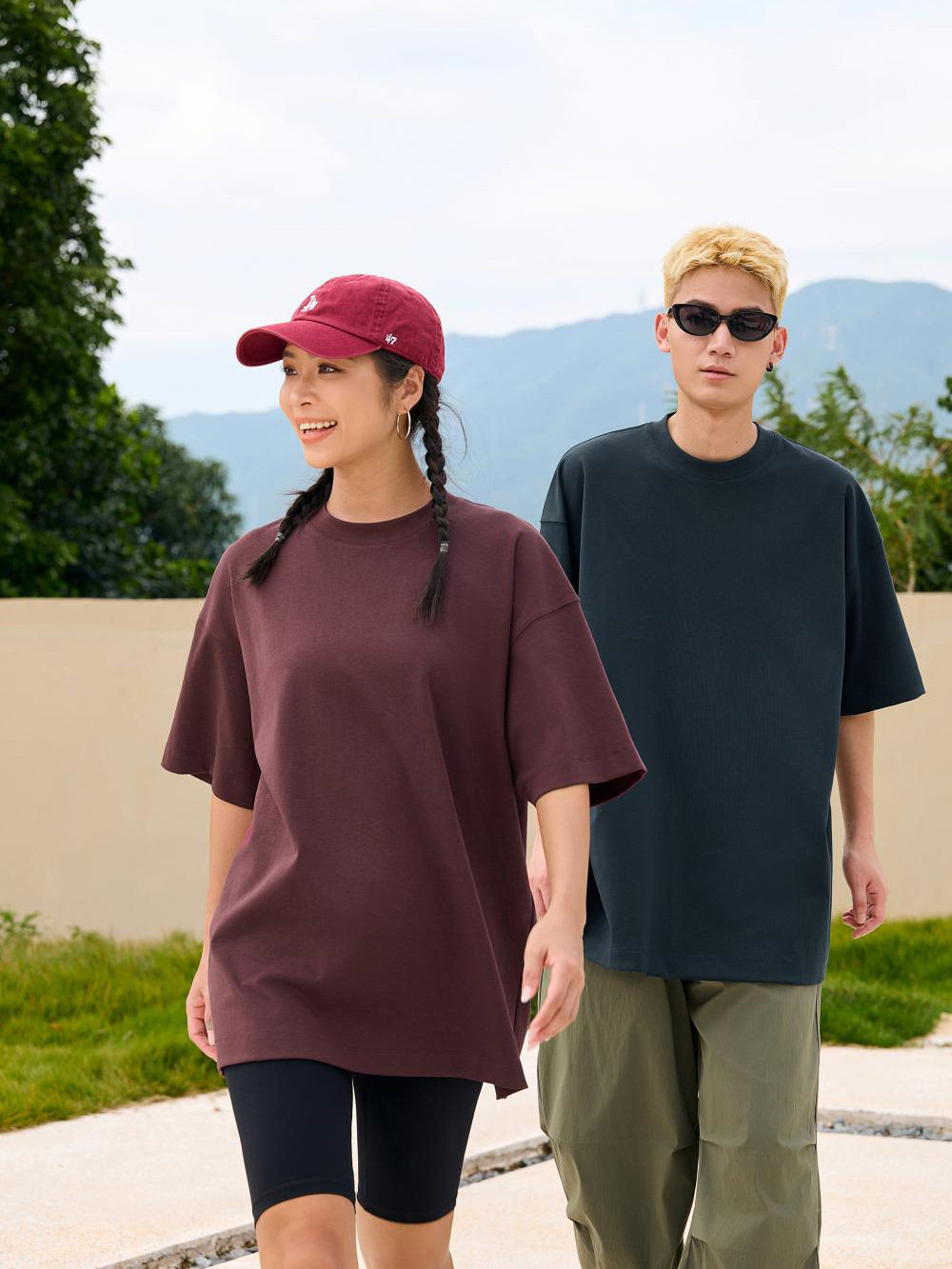 Marca de primavera y verano pesada 240G algodón de hielo de color sólido cuello redondo de manga corta para hombres coreanos simples diarios versátiles camiseta de media manga