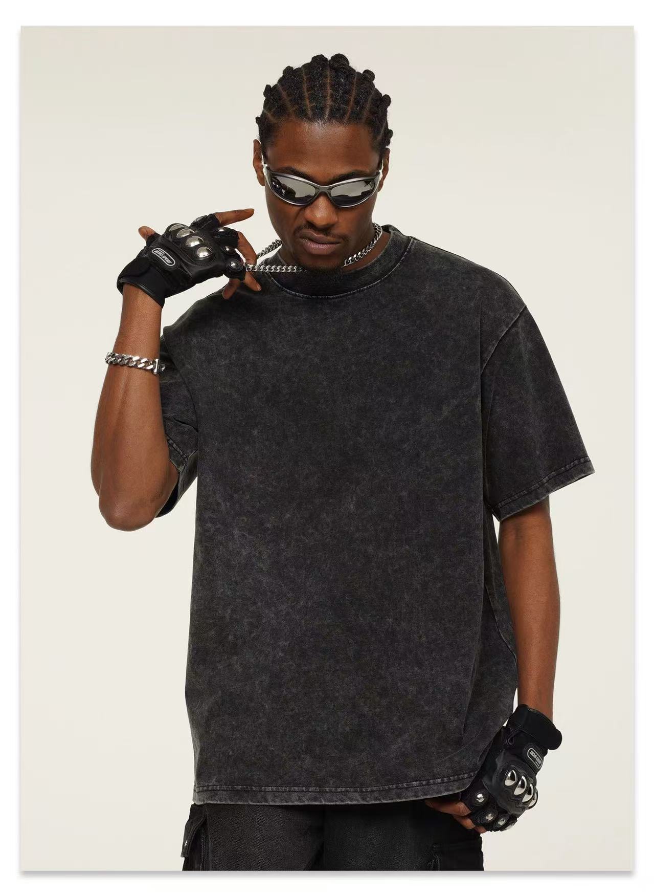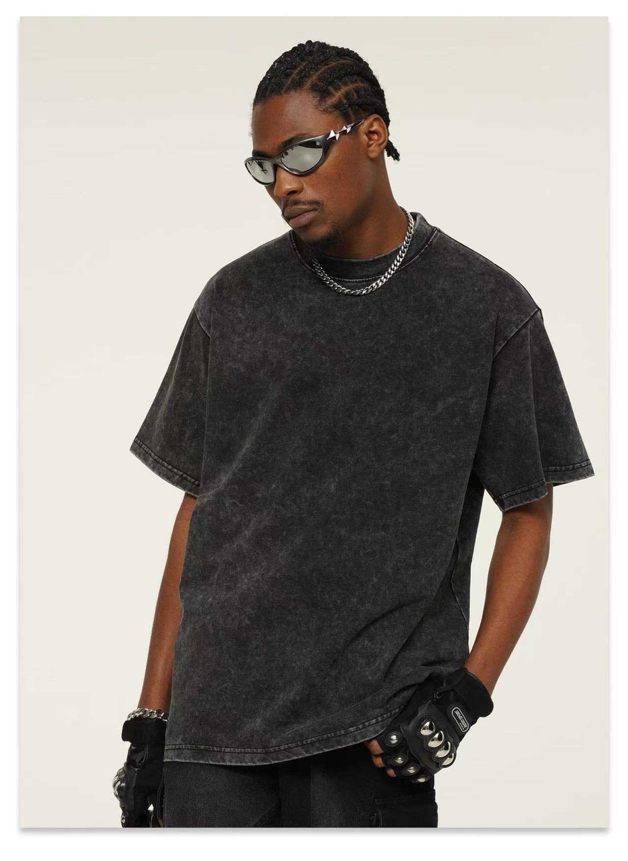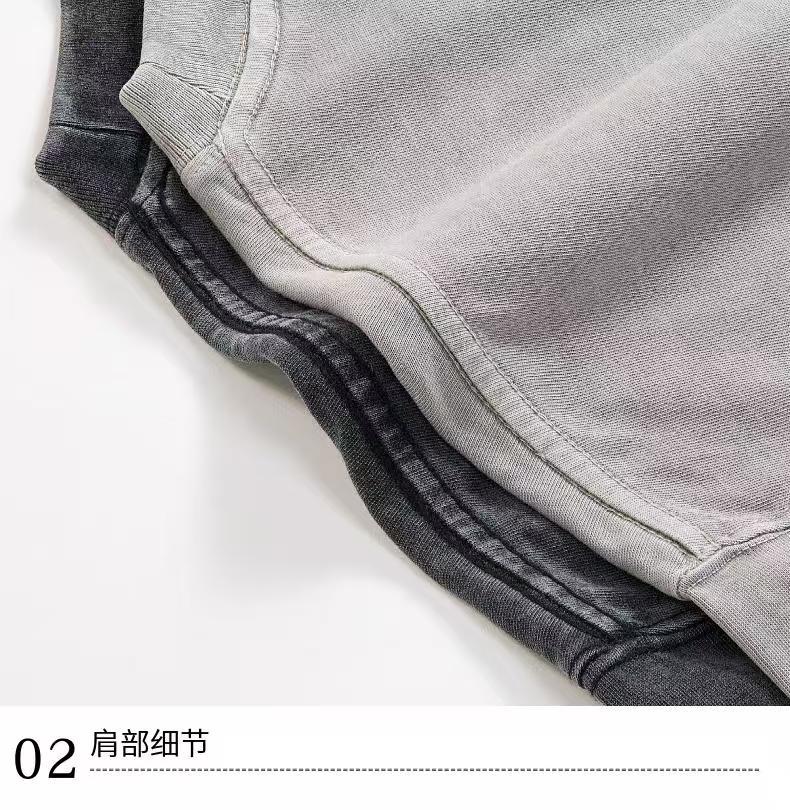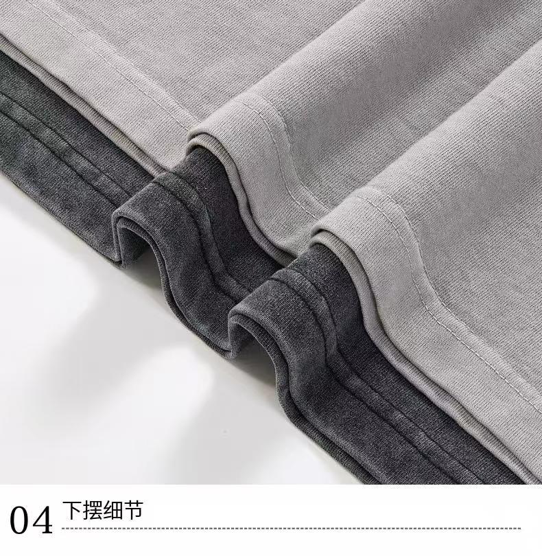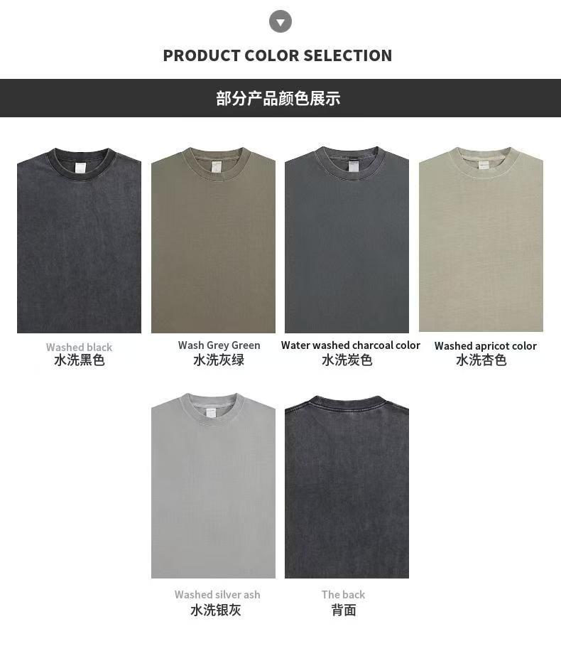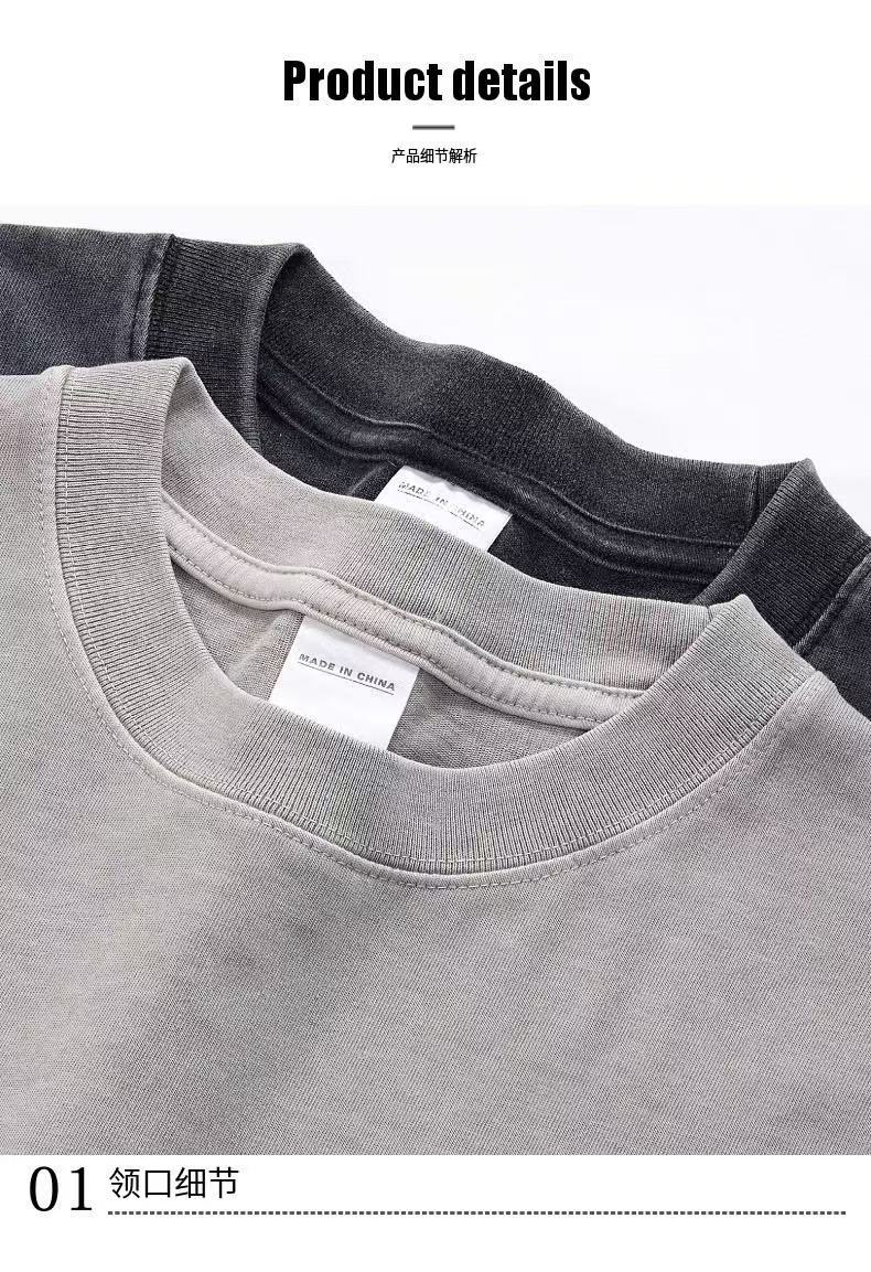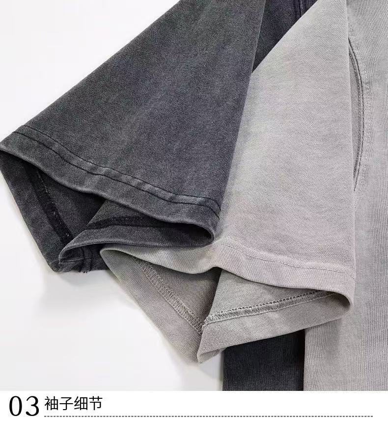 Europa y los Estados Unidos 300G pesado cuello redondo hombro caído camiseta de manga corta para hombres Europa y los Estados Unidos marca de moda de gran tamaño retro lavado con agua hacer camiseta vieja