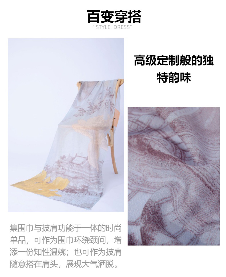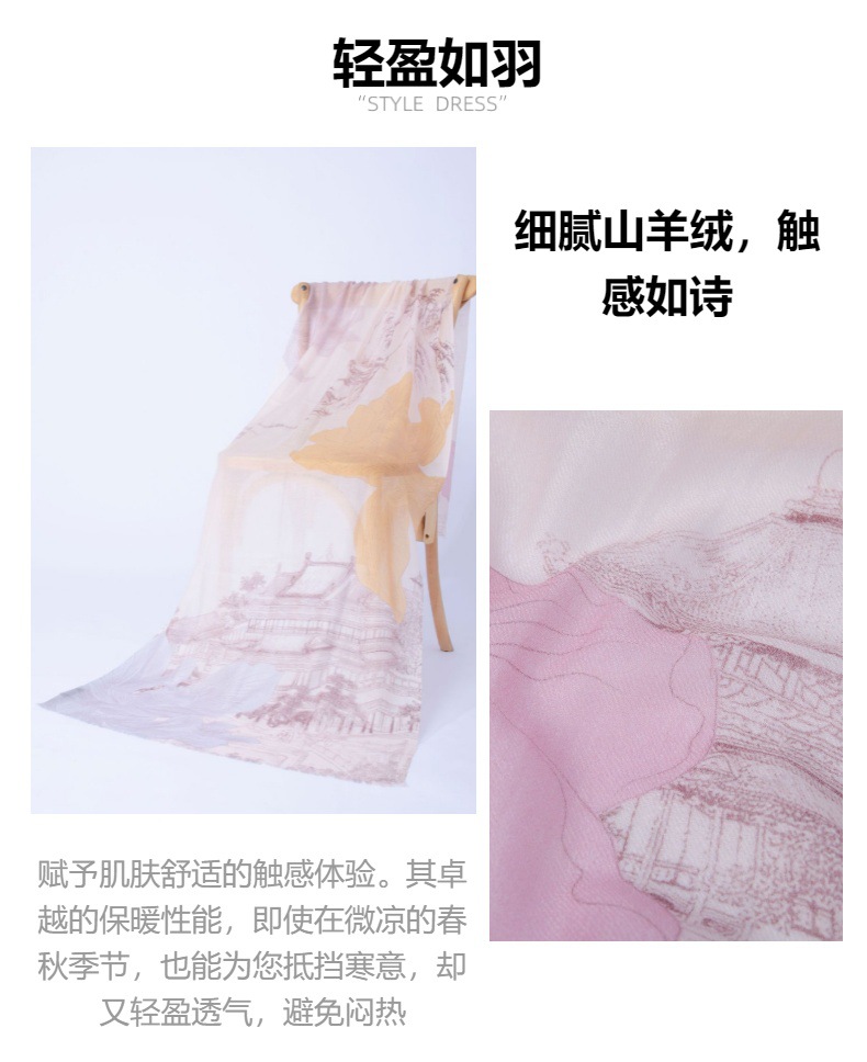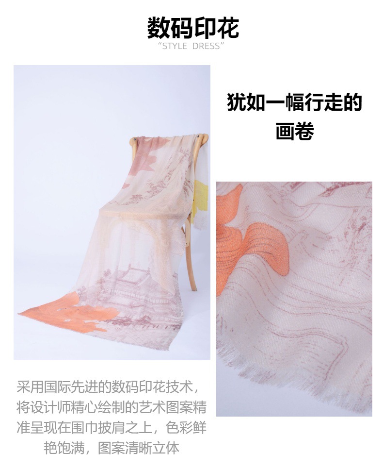 Fábrica de Mongolia Interior cabello recto cachemira pura otoño invierno cuatro estaciones de impresión de bufandas de damas estilo nacional retro
