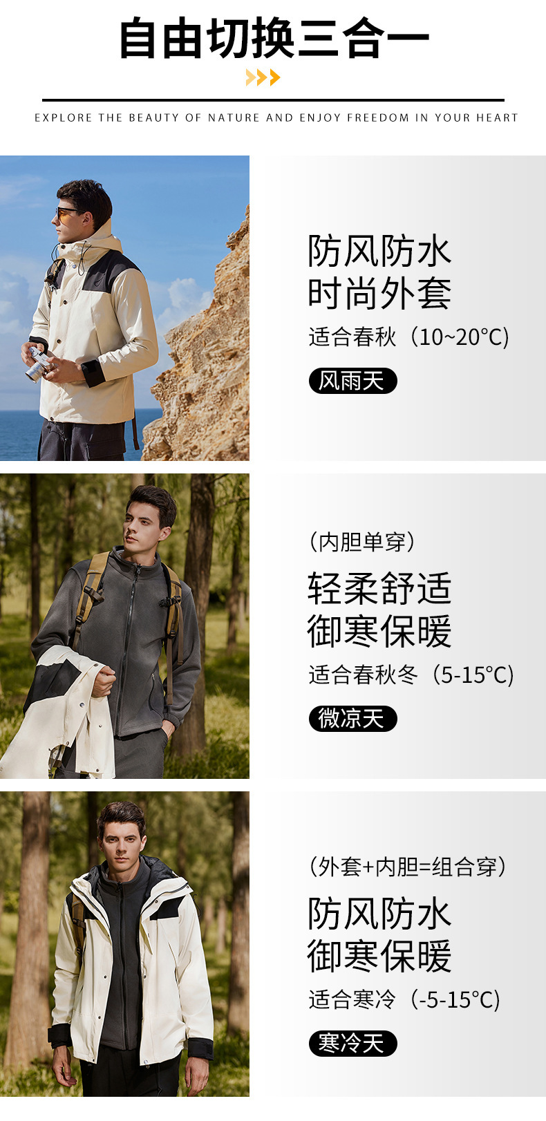 Otoño y invierno pesado al aire libre vestir de asalto a prueba de viento impermeable 3 en 1 desmontable ropa de trabajo logotipo bordado impreso