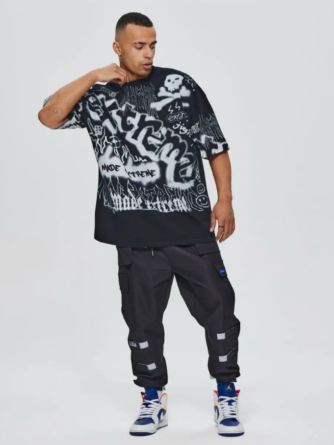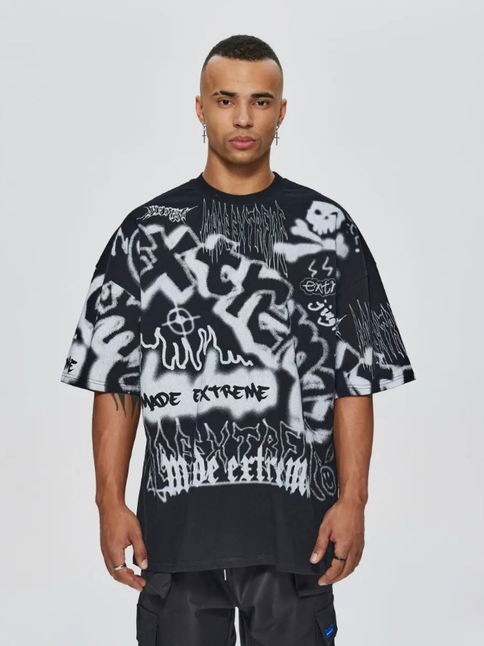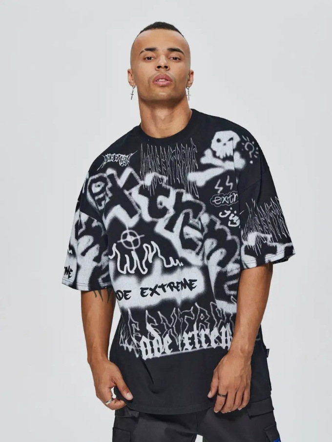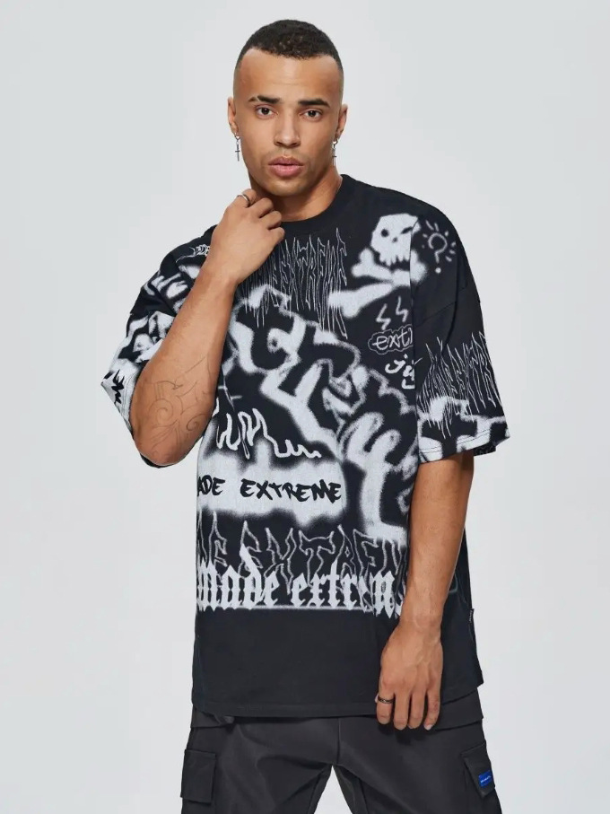2025 transfronterizo impresión completa camiseta de mangas cortas varón suelta camiseta de pareja europea y americana