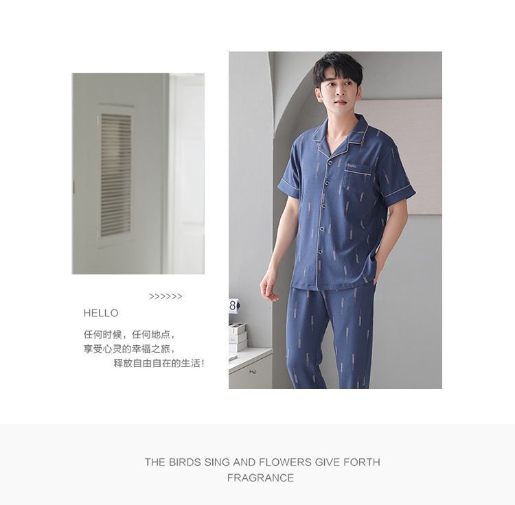 Algodón 2024 nuevo pijama de hombre de verano pantalones de manga corta primavera y otoño delgados se pueden usar ropa de hogar