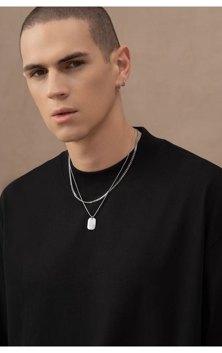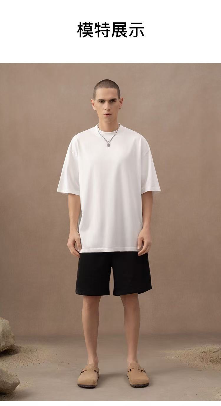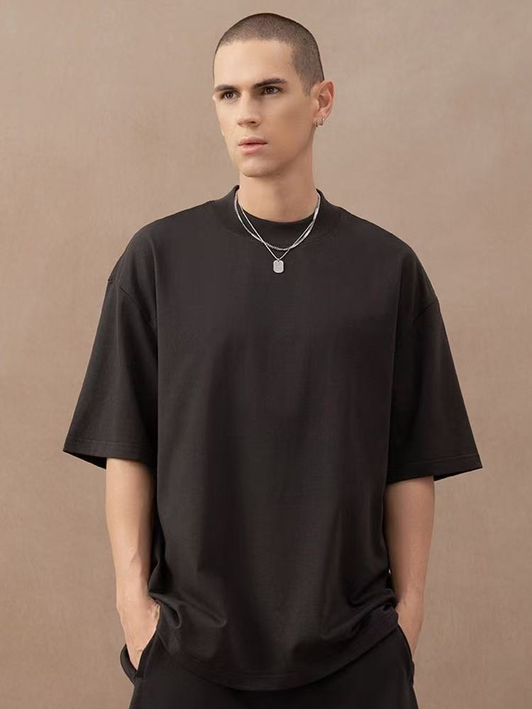 310g pesado cuello pequeño camiseta de cuello alto de manga corta europea y americana hombre de hombro caído casual pareja casual en la parte superior versátil