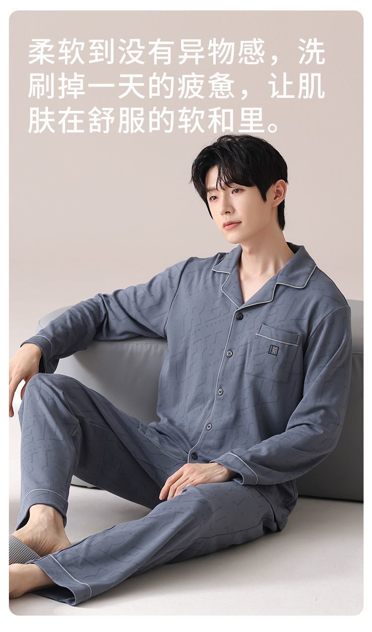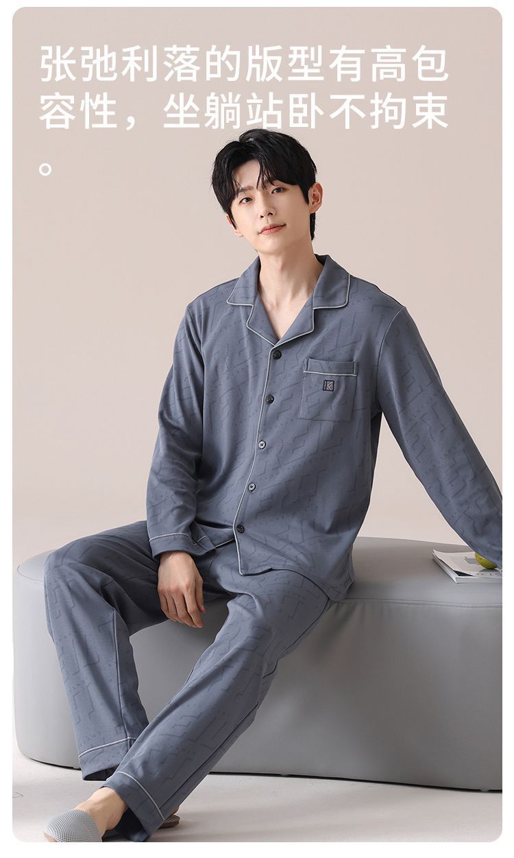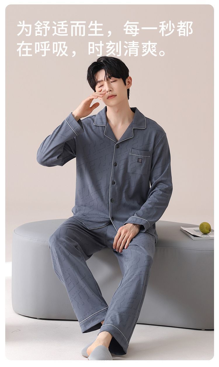 Pijamas de algodón para hombres primavera y otoño 2025 nuevo conjunto de ropa de hogar de manga larga suelta juvenil