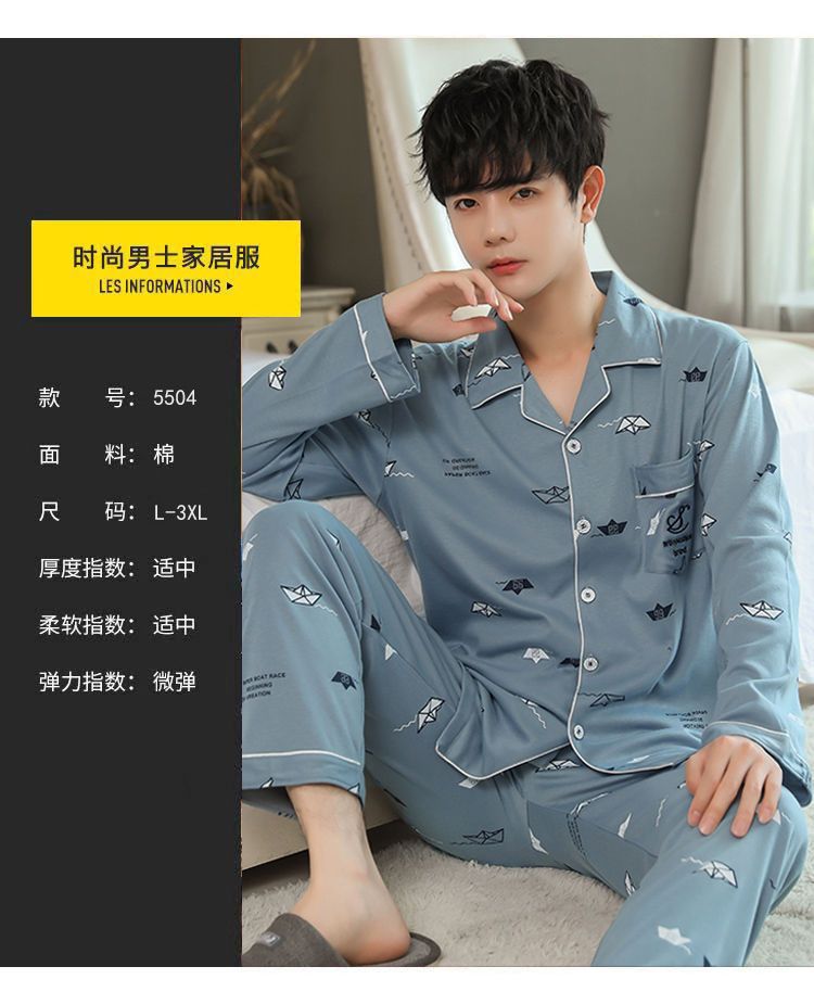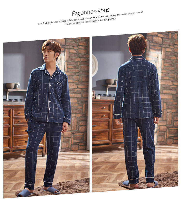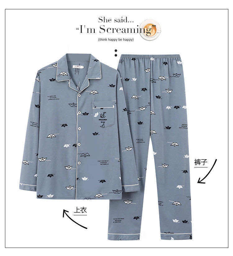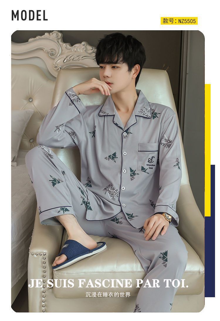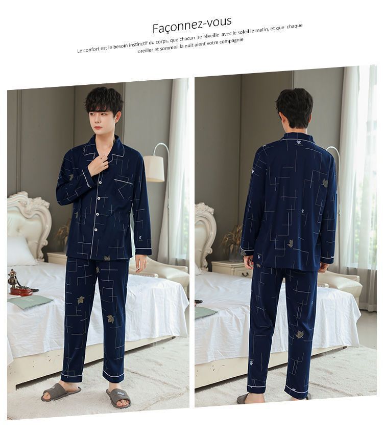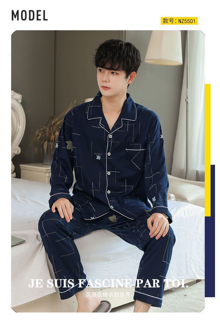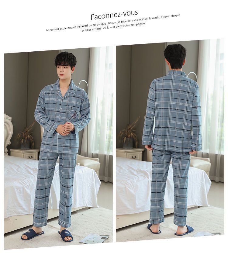 Pajamas de algodón para hombres primavera y otoño pantalones largos de mangas largas set de verano simple ropa de casa juvenil de mediana edad