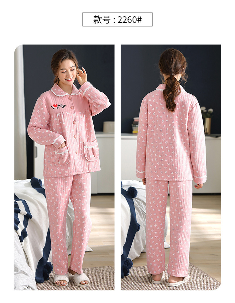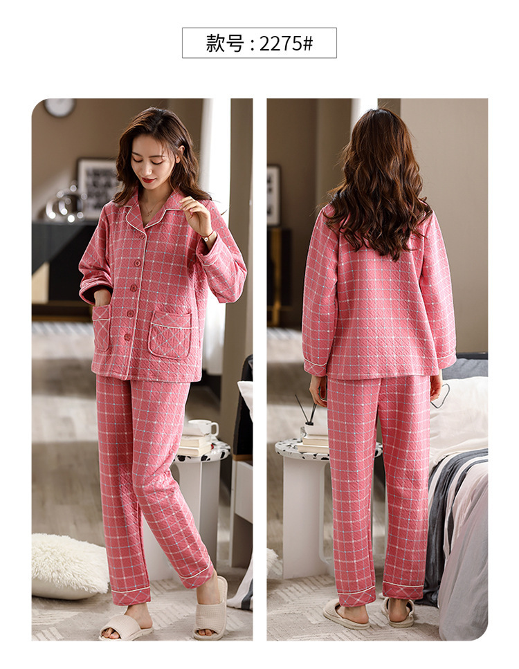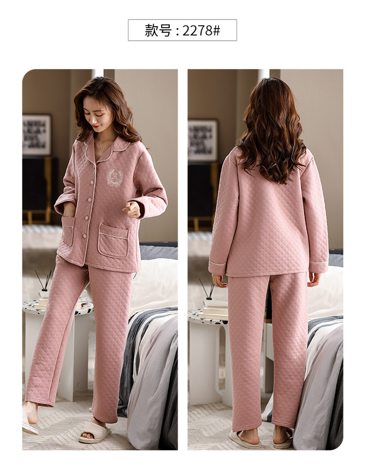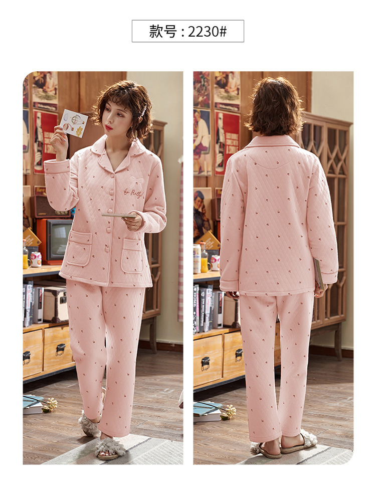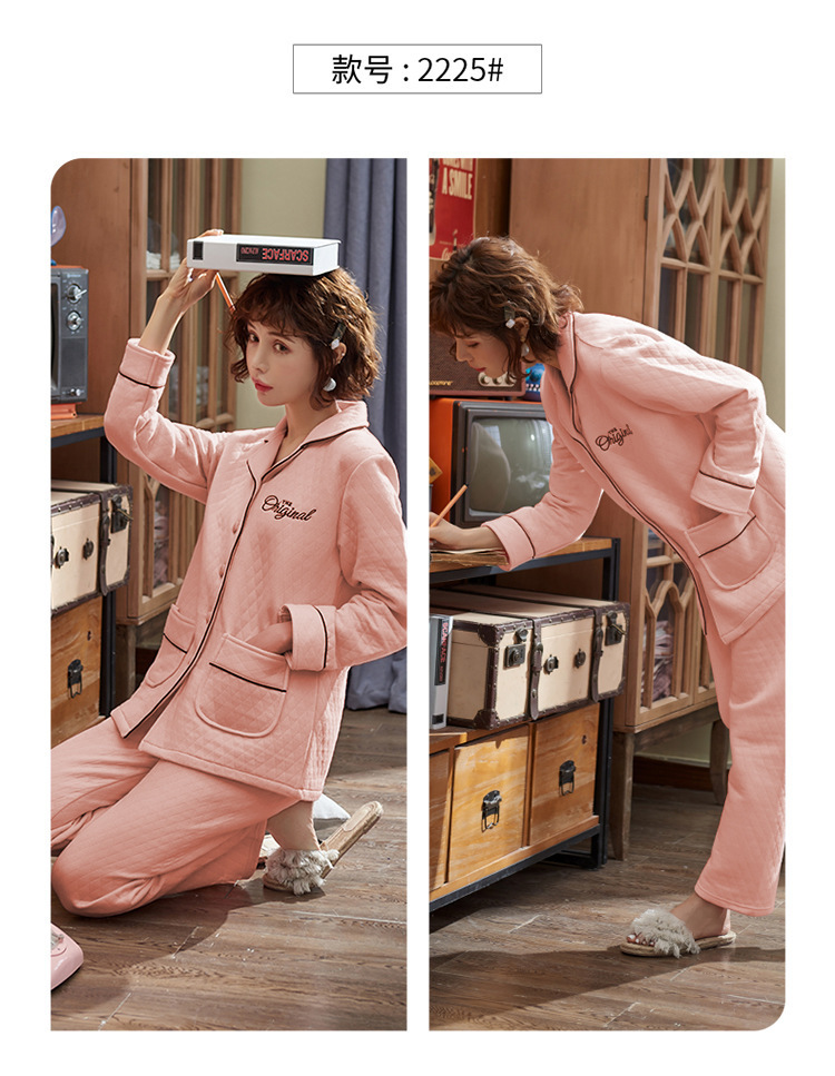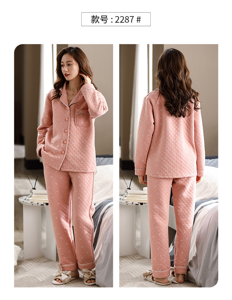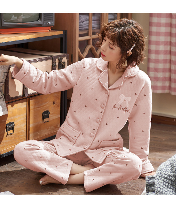 100% algodón acolchado pijamas de las mujeres Otoño e Invierno de tres capas de aire fino 2023 nuevo homewear engrosada de las mujeres