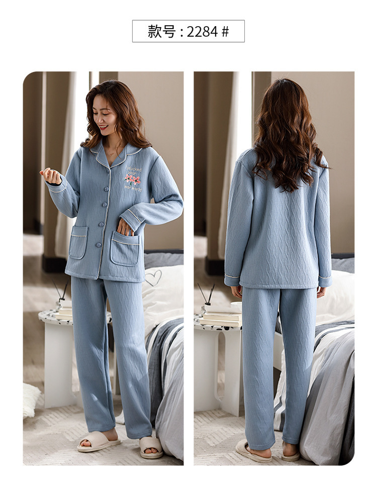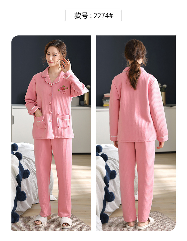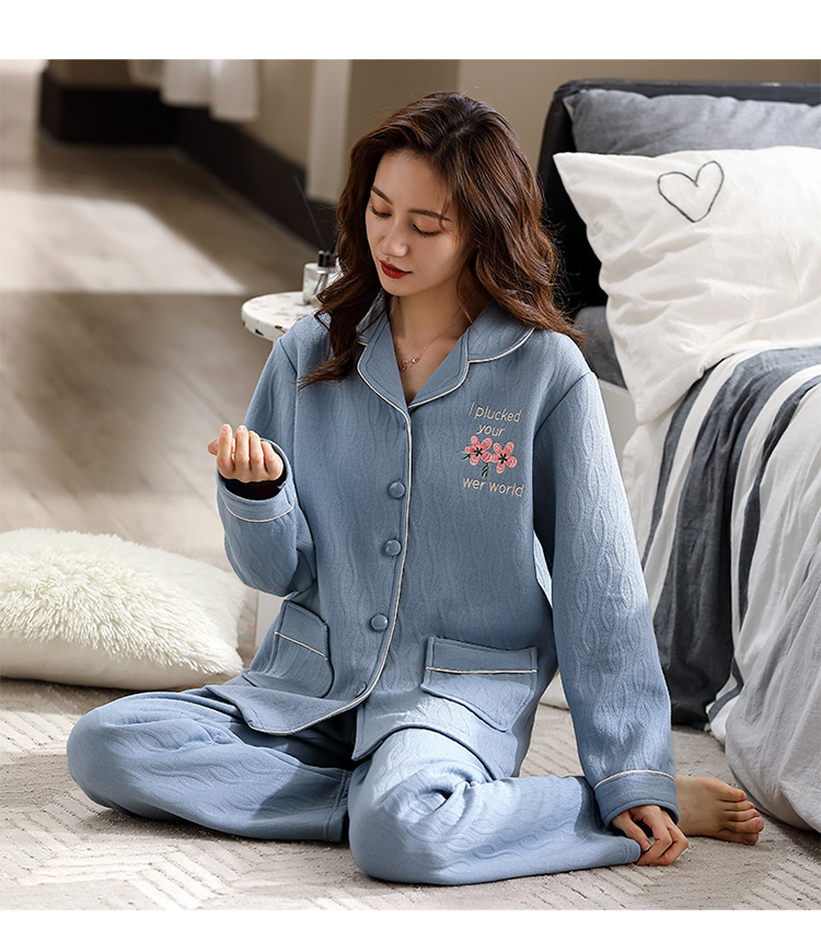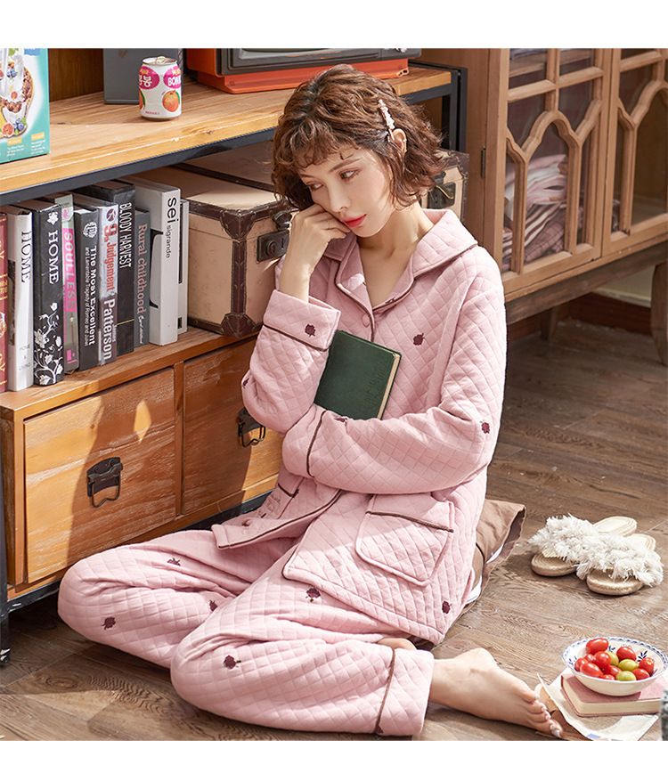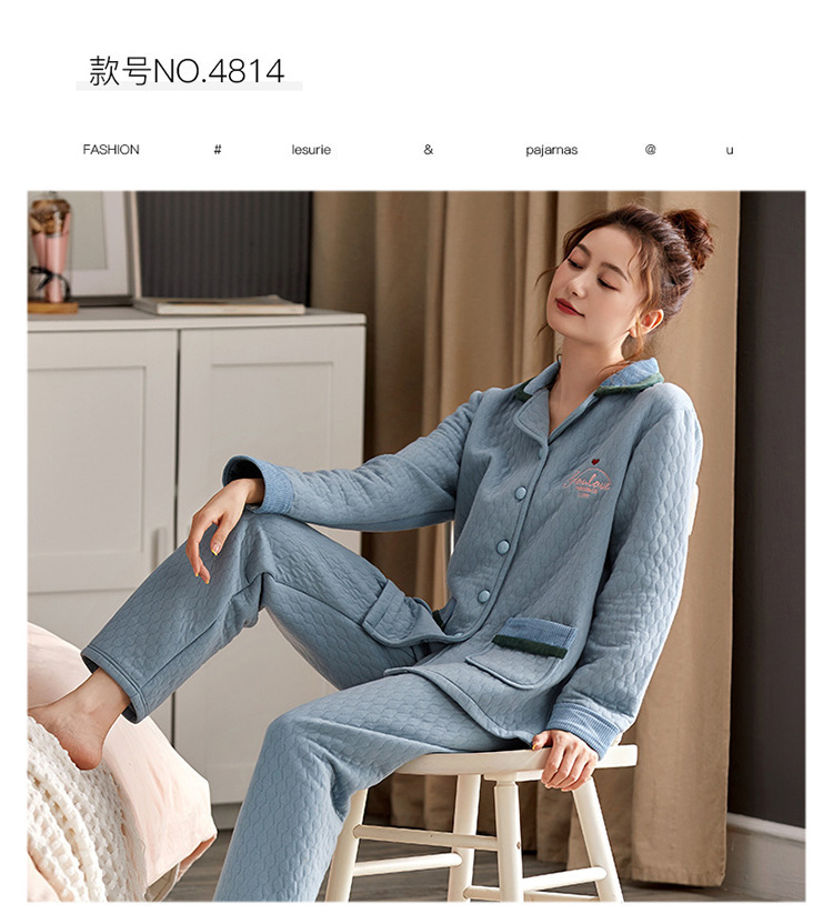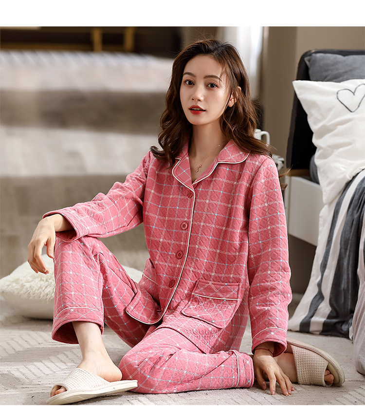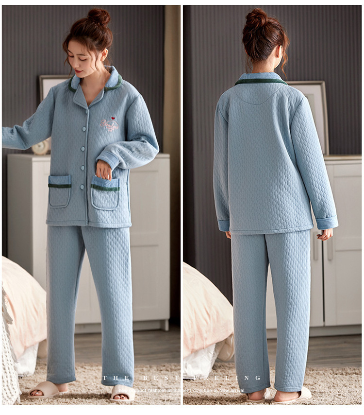 100% algodón acolchado pijamas de las mujeres Otoño e Invierno de tres capas de aire fino 2023 nuevo homewear engrosada de las mujeres